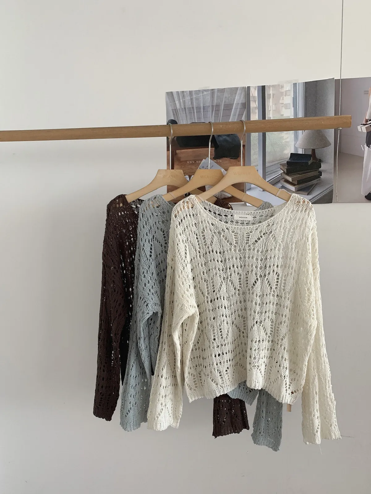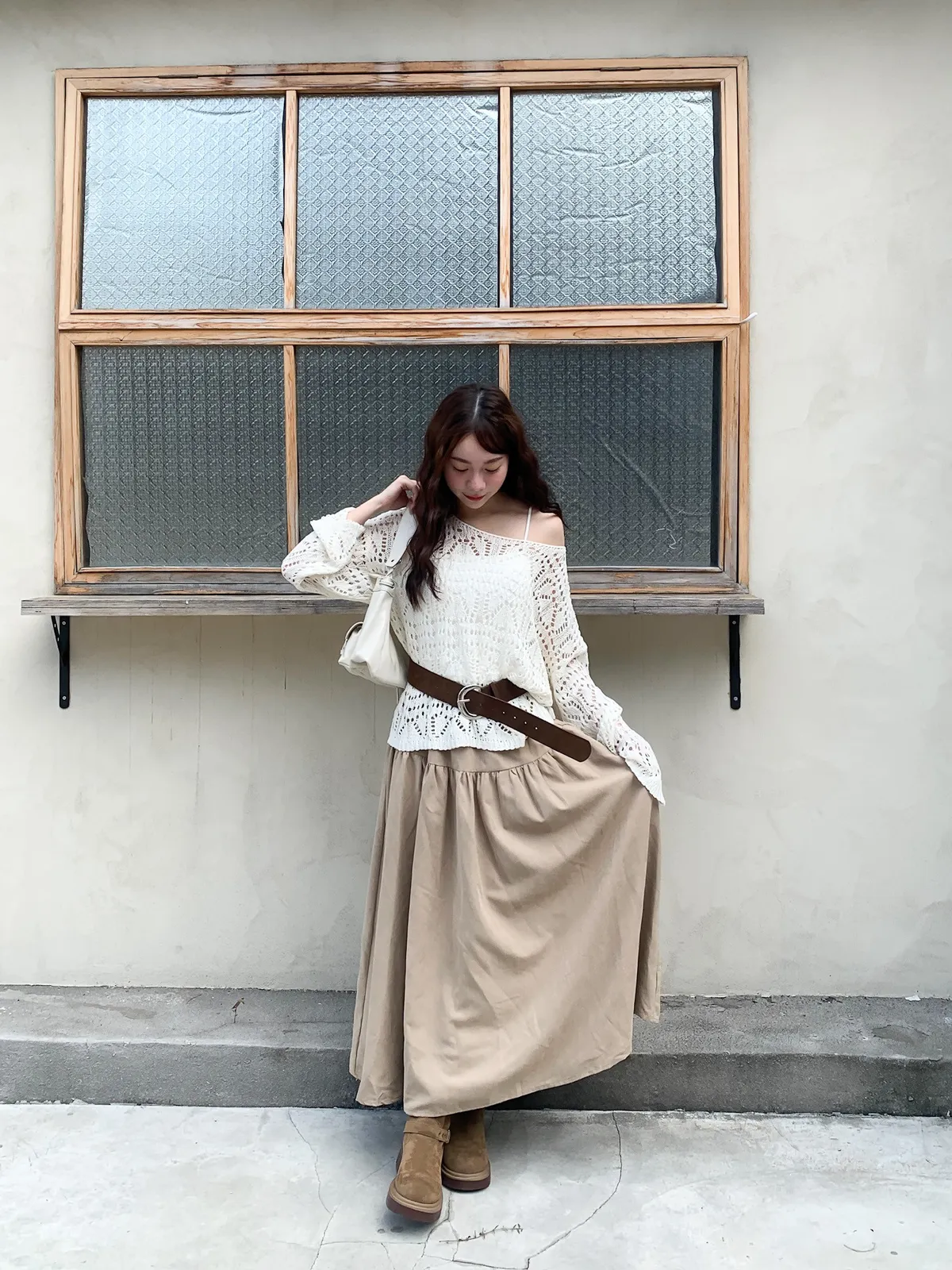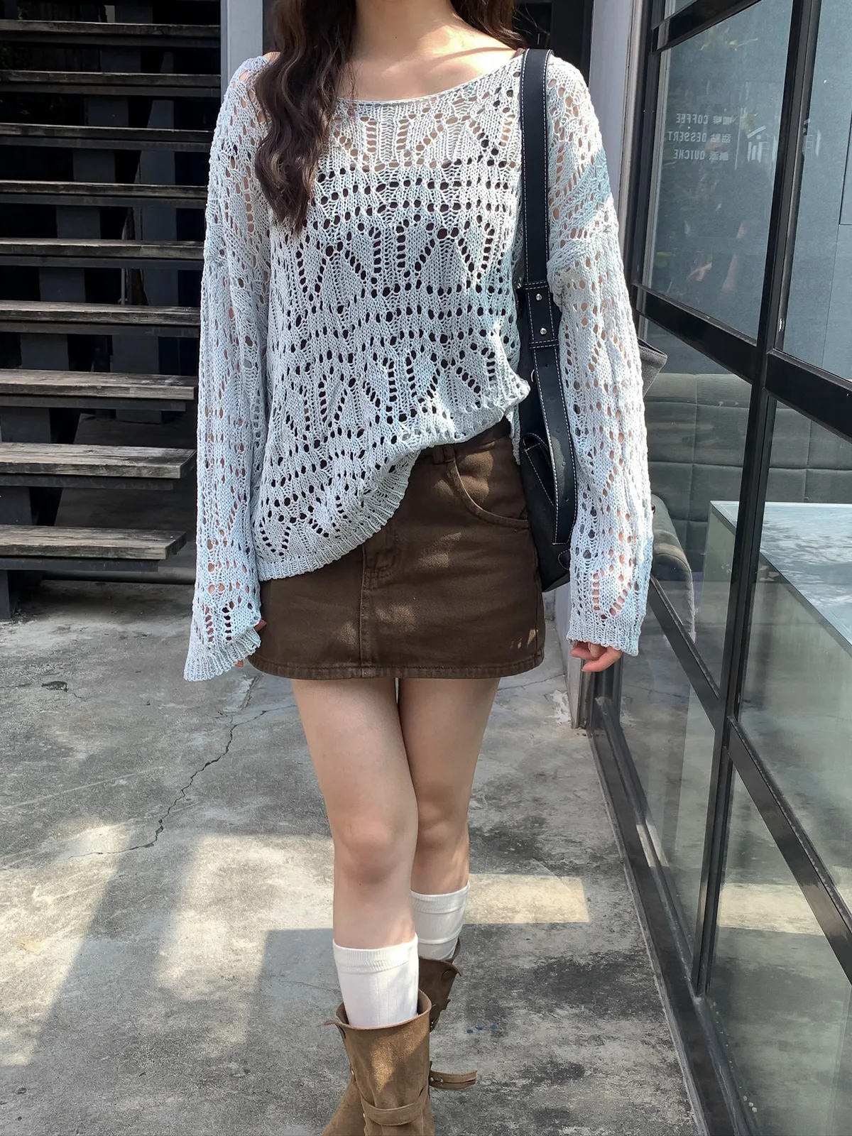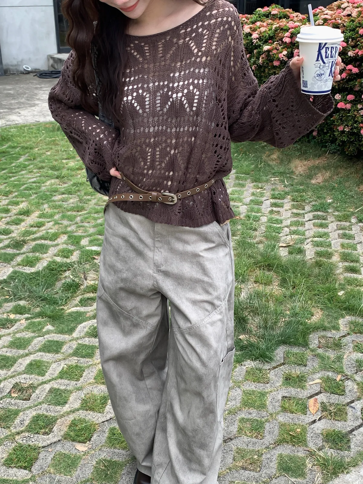 洞洞簍空針織上衣帶點微性感 船領設計可拉斜肩