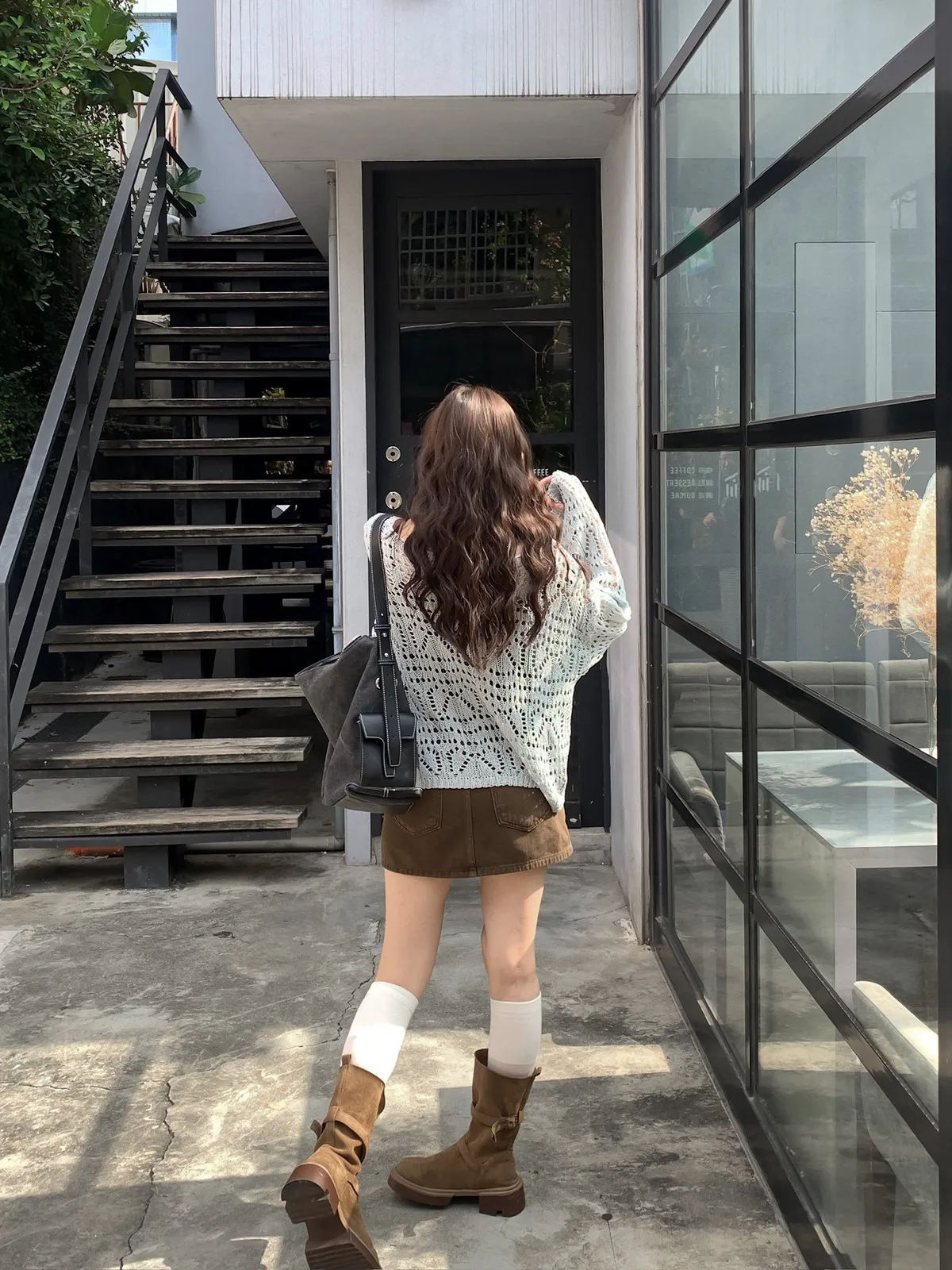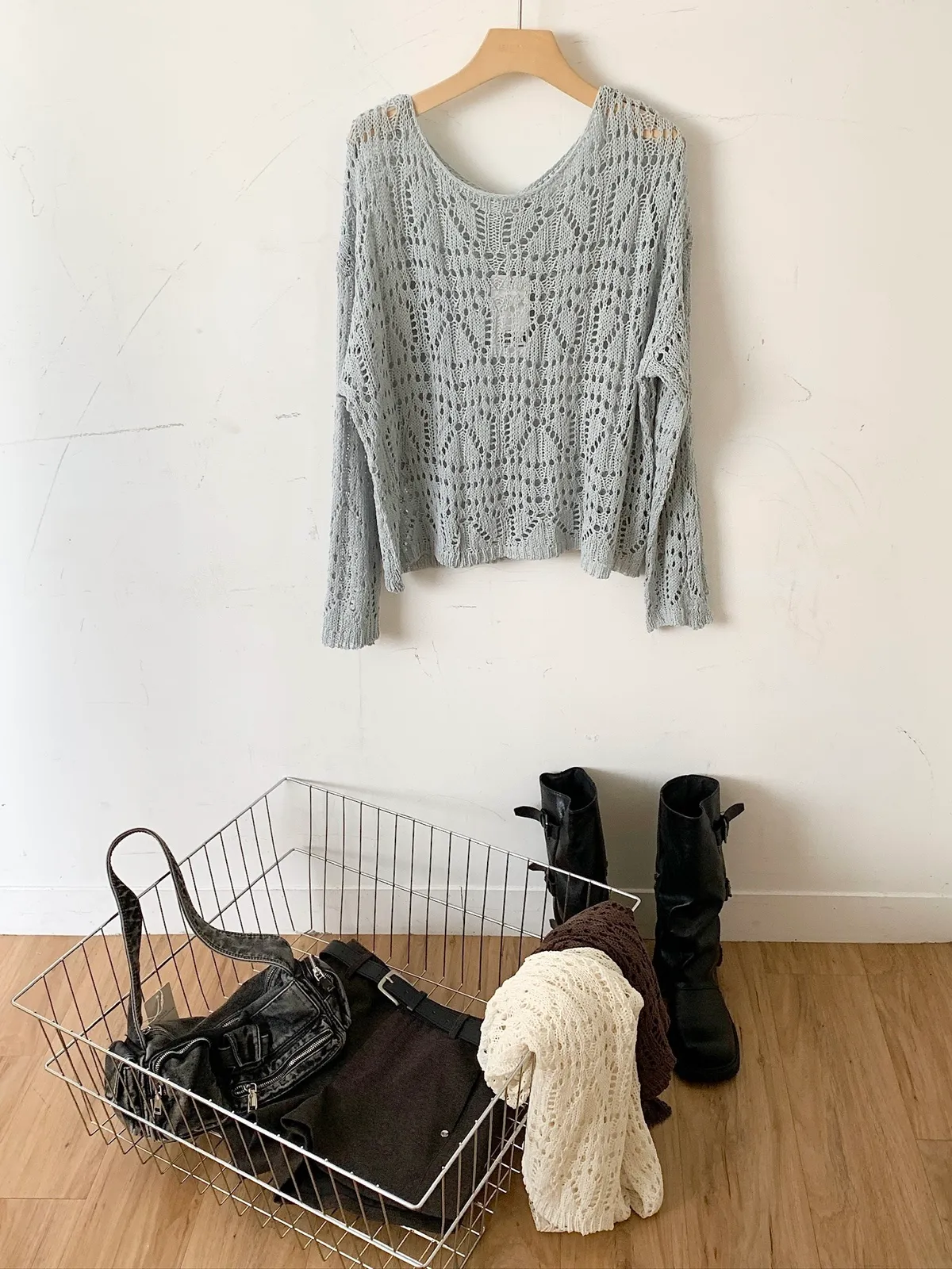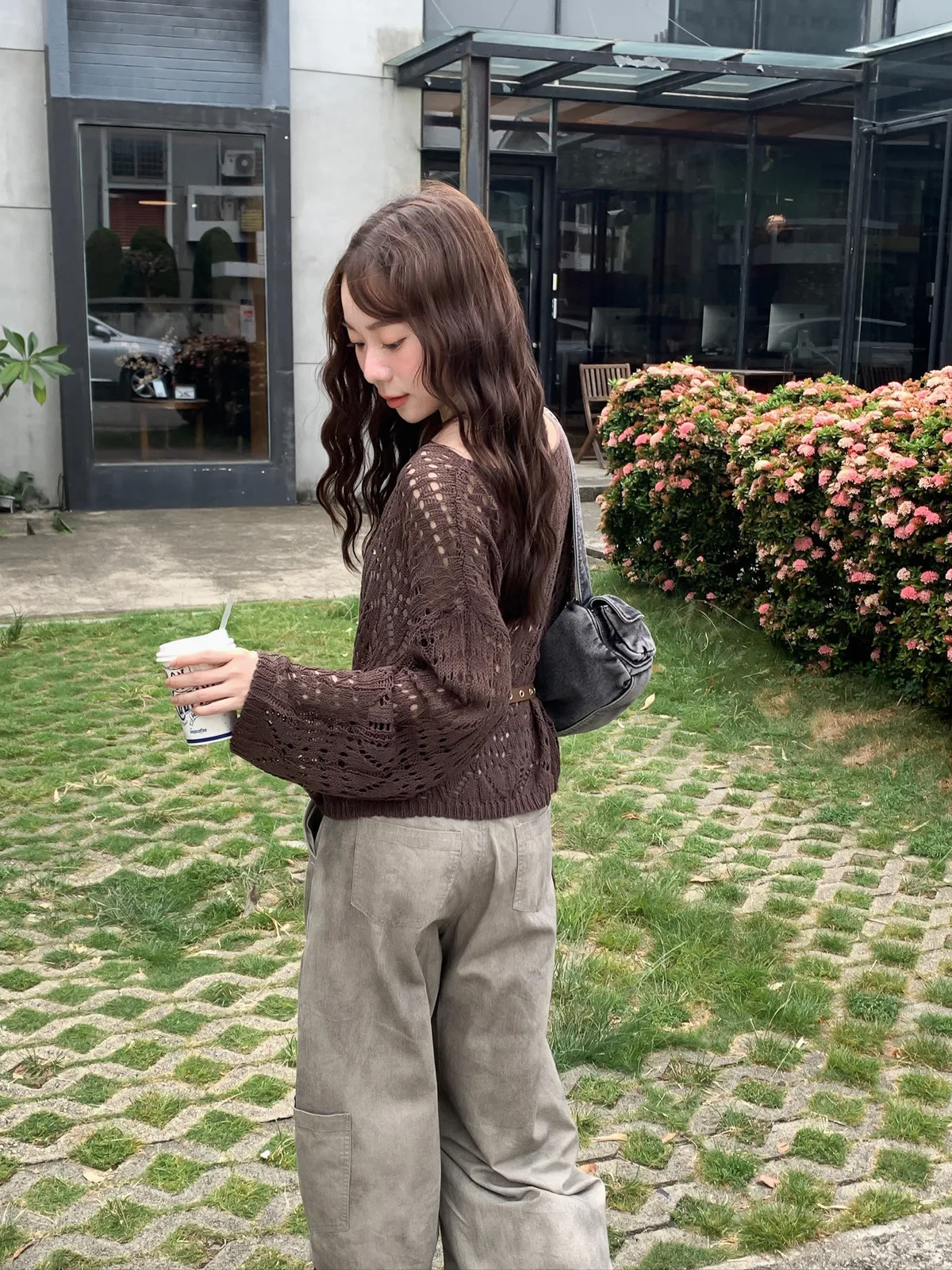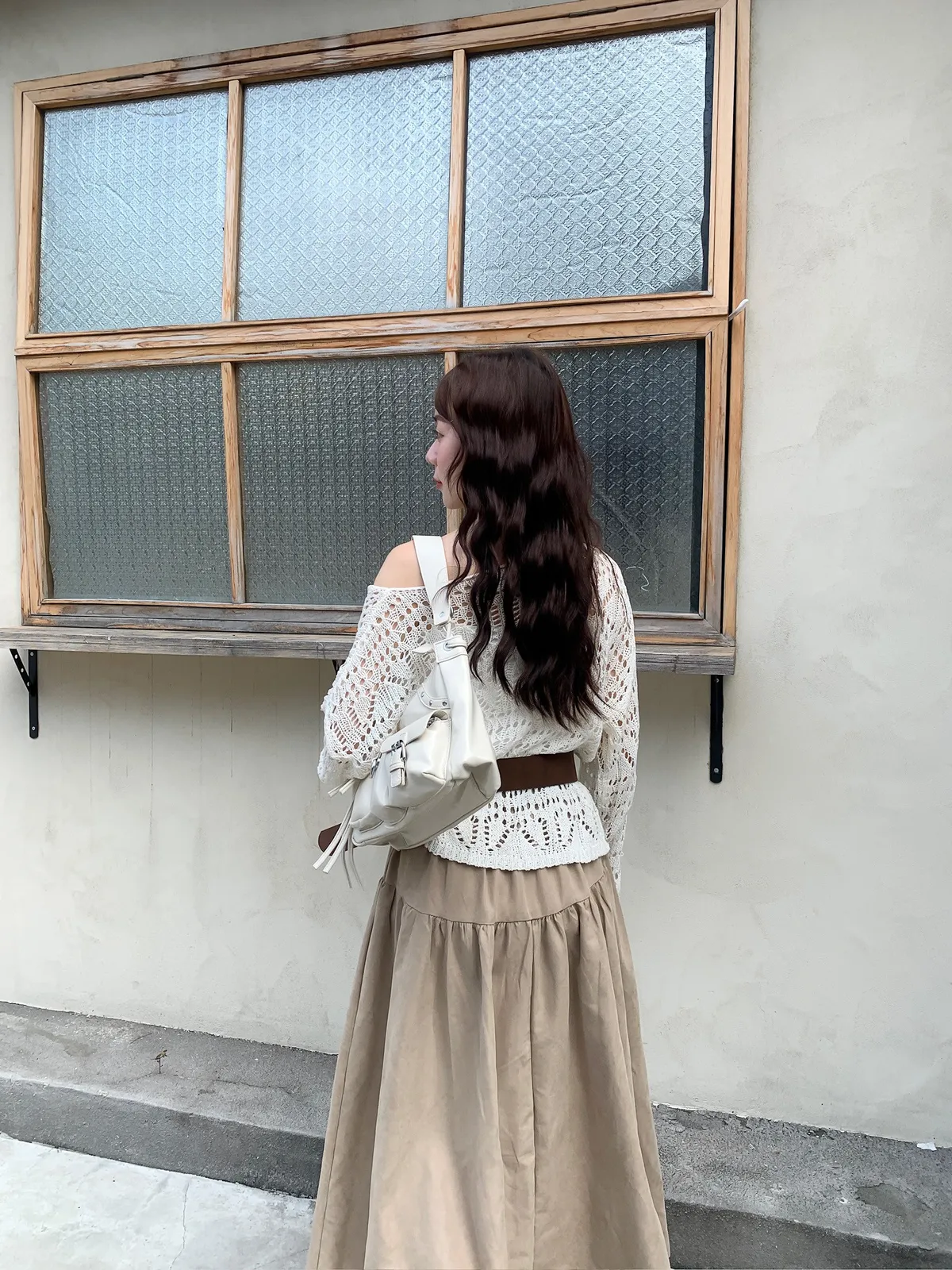 洞洞簍空針織上衣帶點微性感 船領設計可拉斜肩