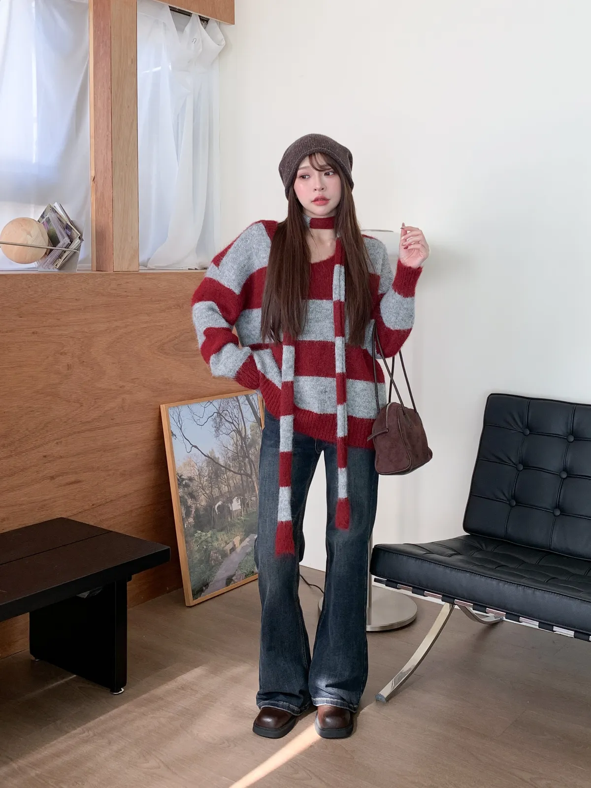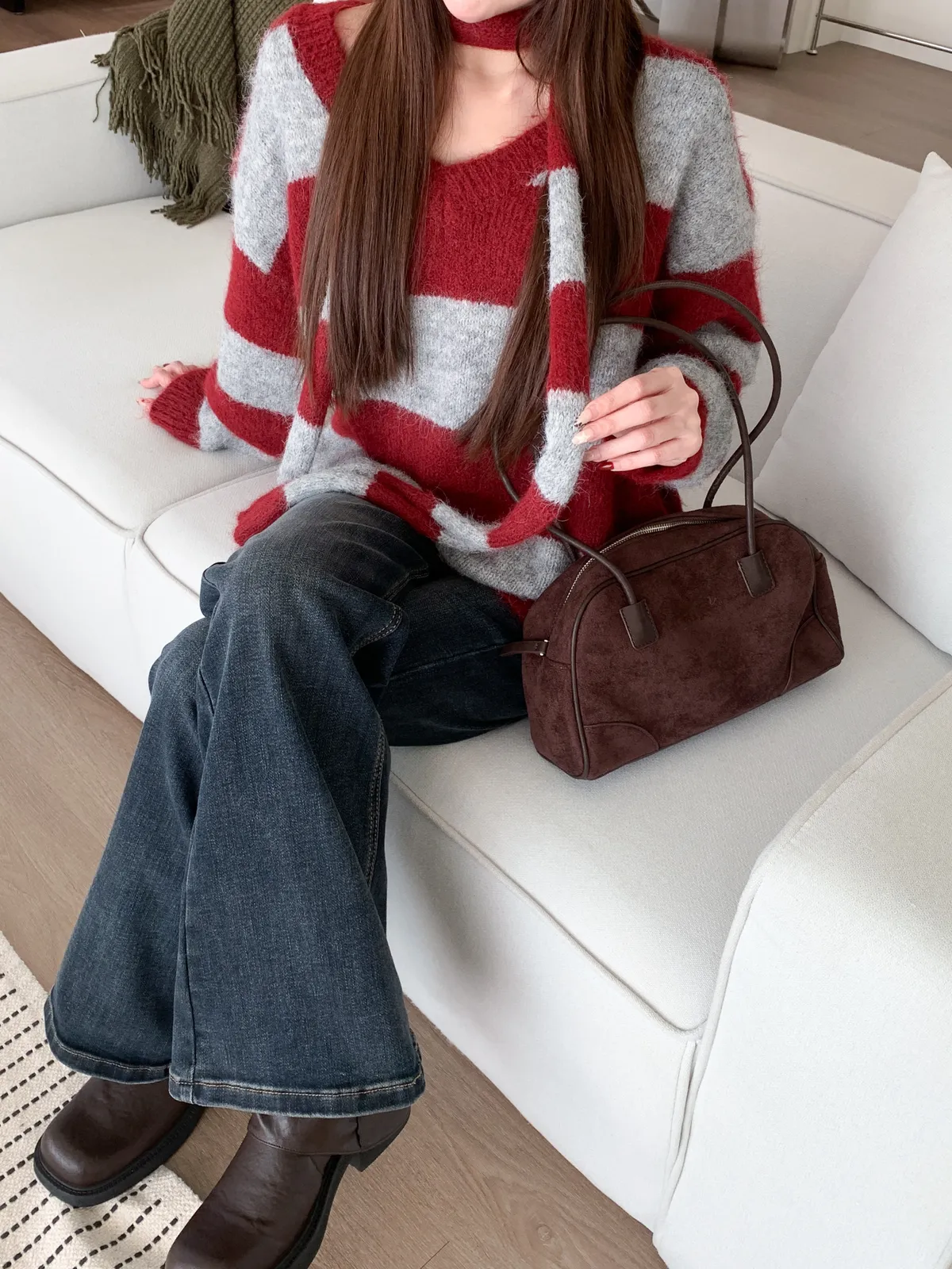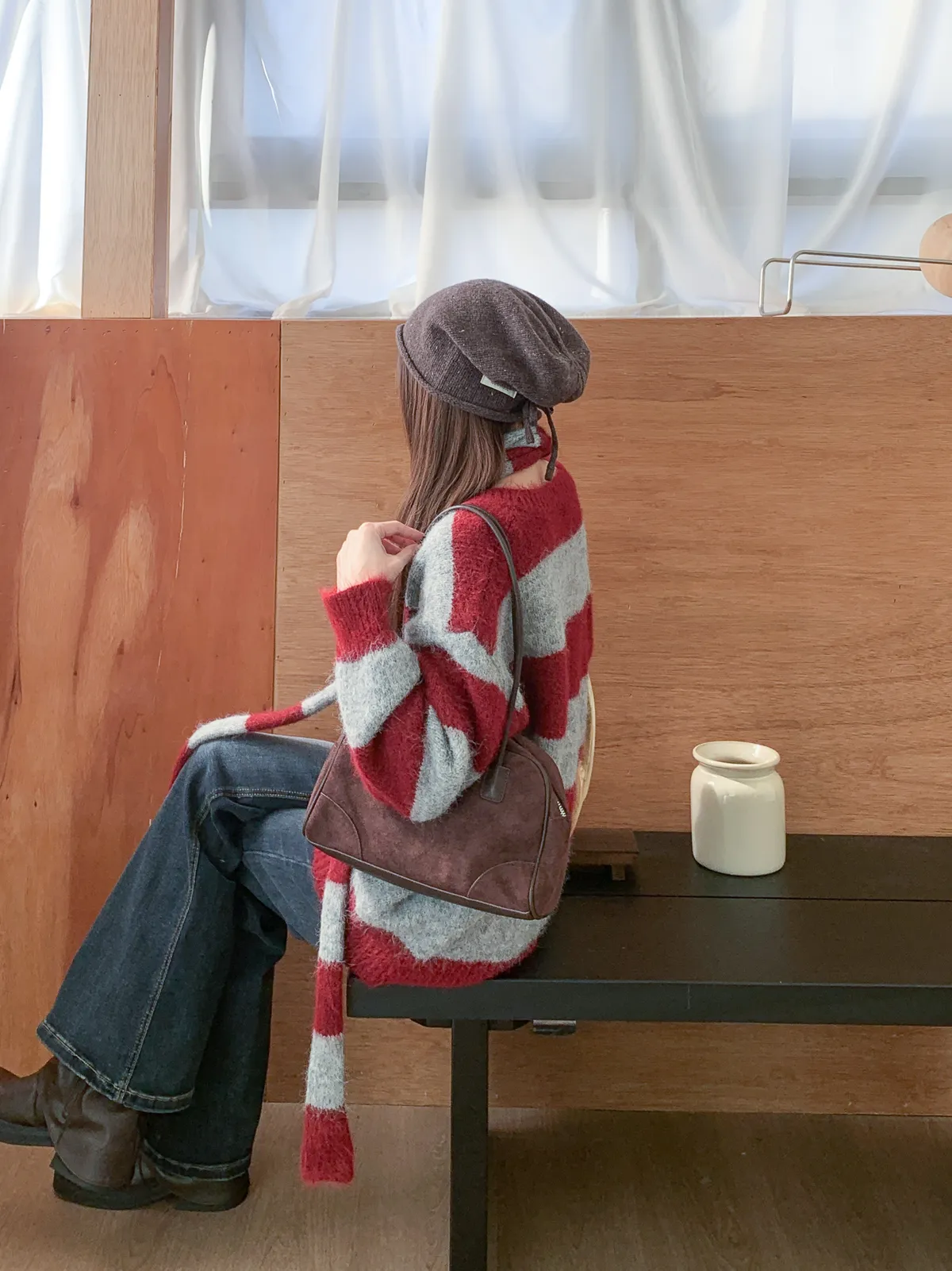一穿即暖|V領撞色條紋針織上衣
