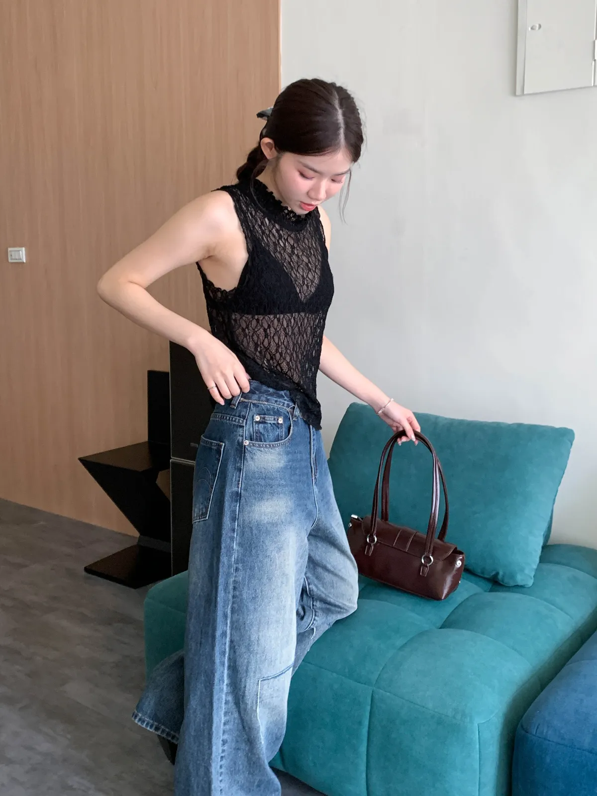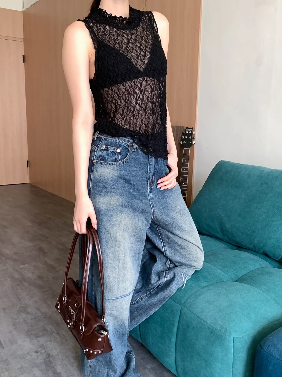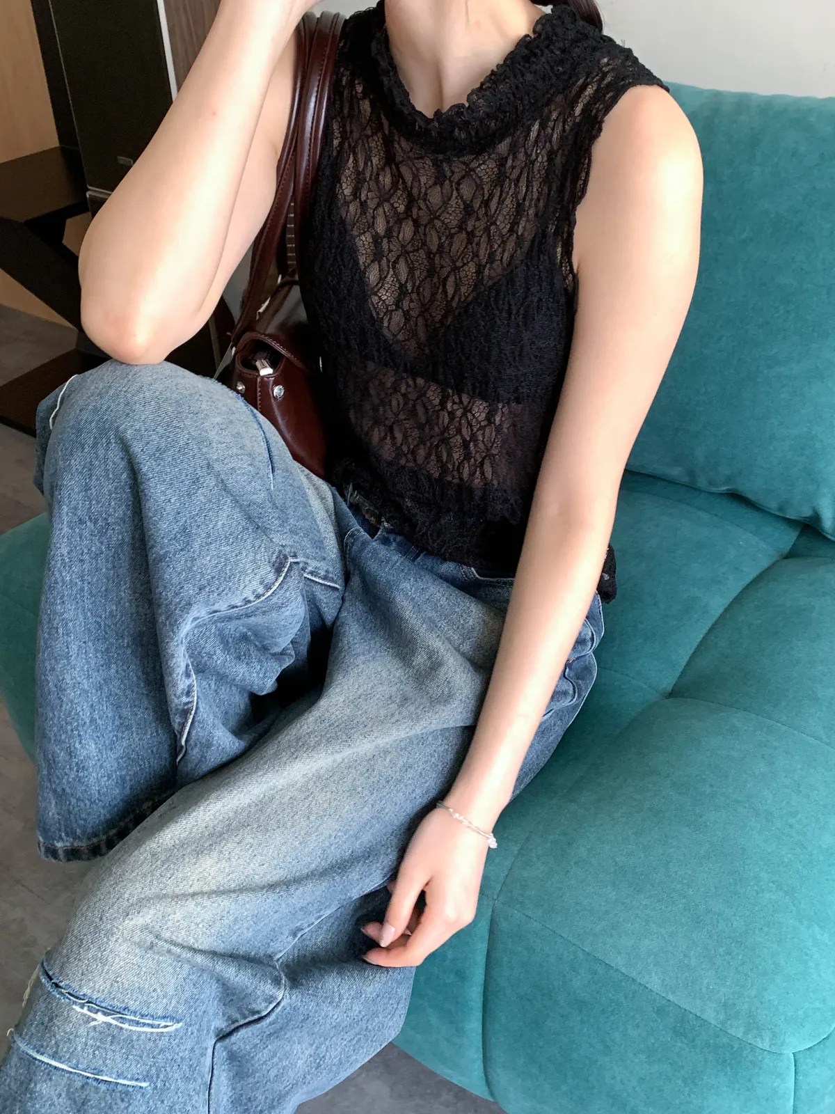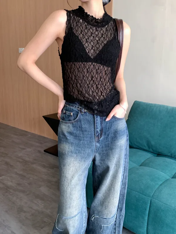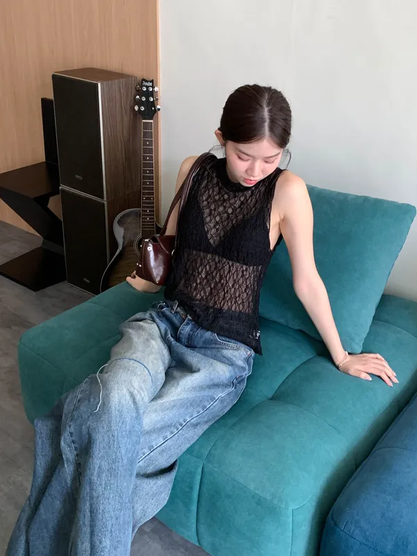 法式透膚花紋背心