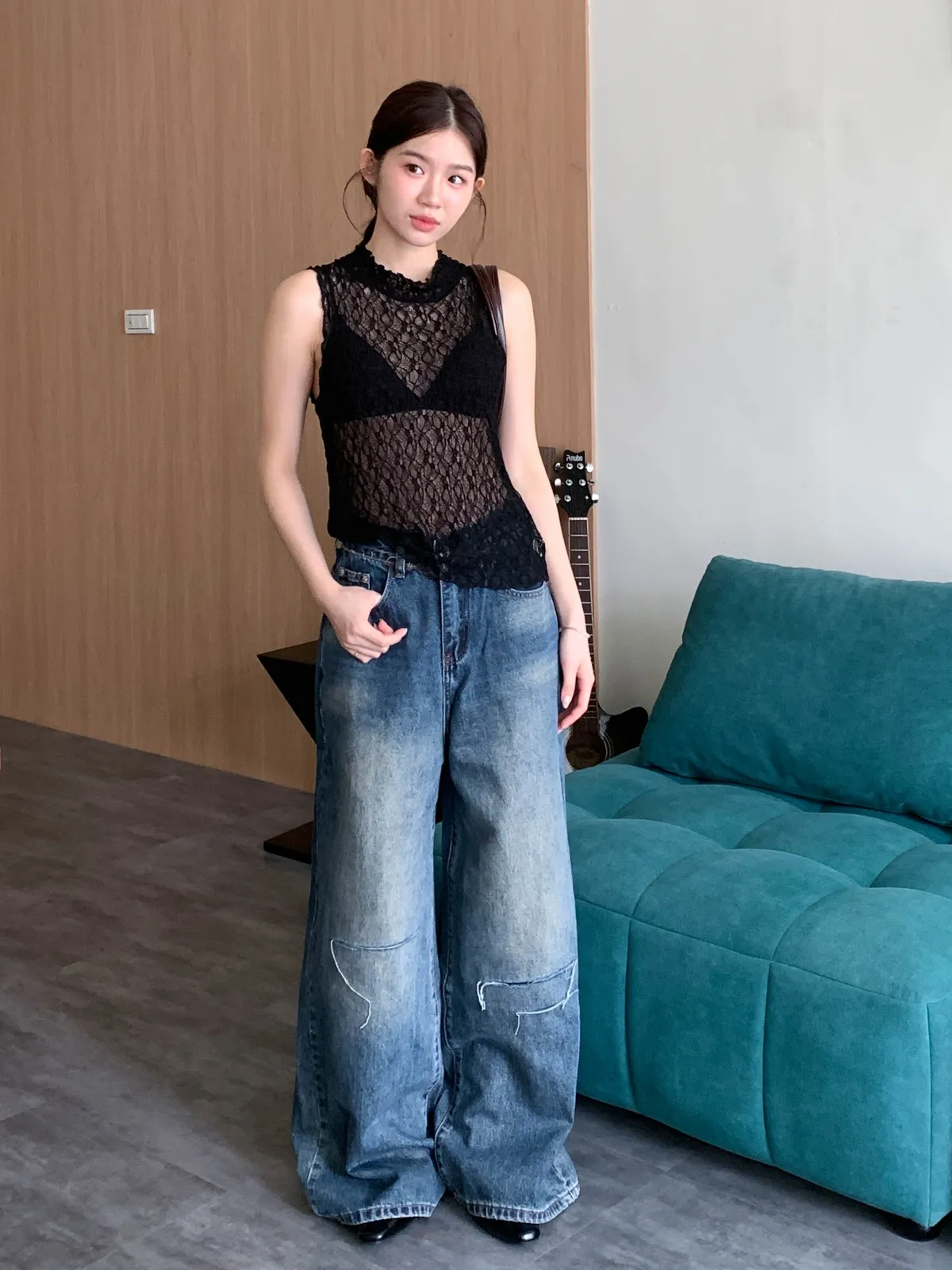 (穿起來舒適合身,法式透膚細節浪漫又優雅,搭配外罩衫或單穿都很好看,日常或約會都適合)