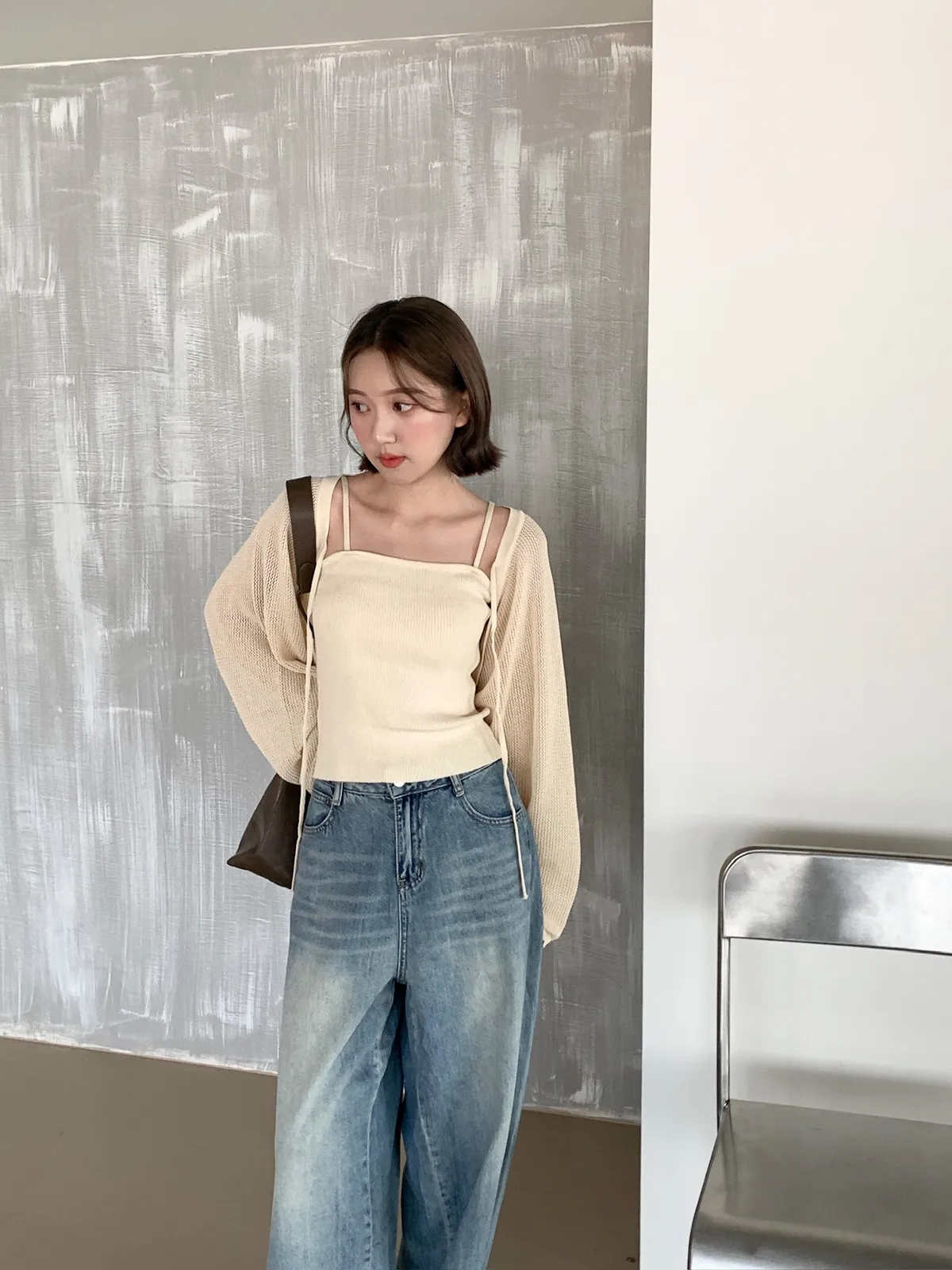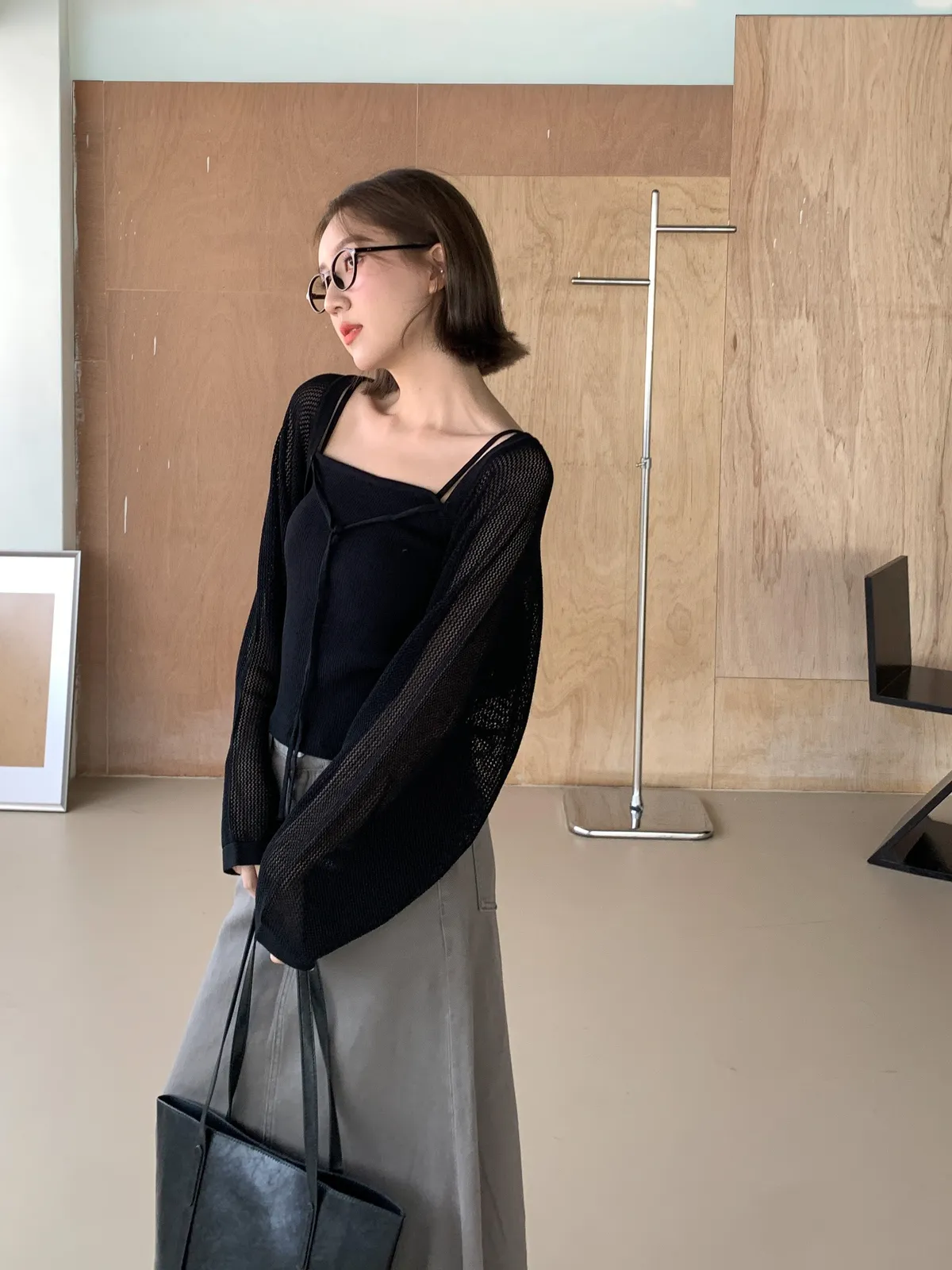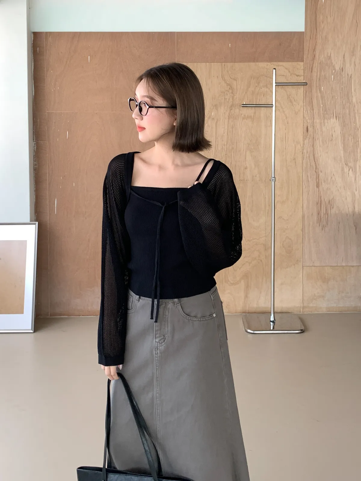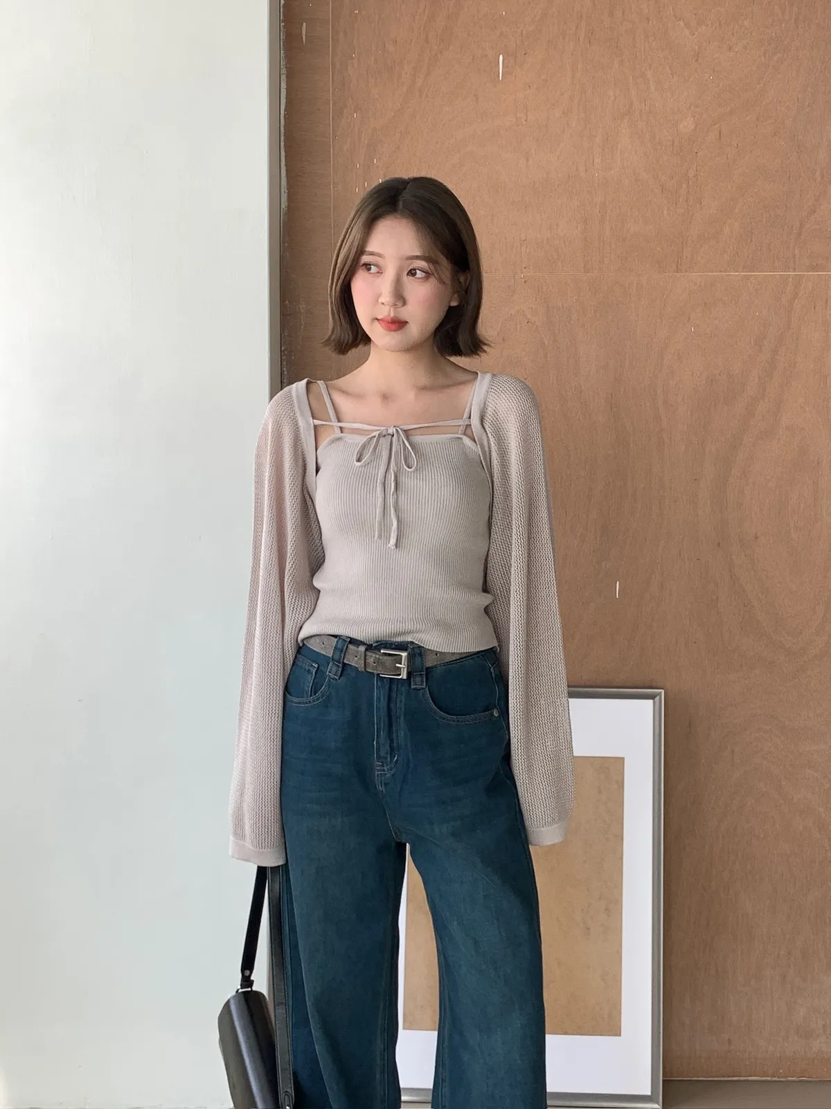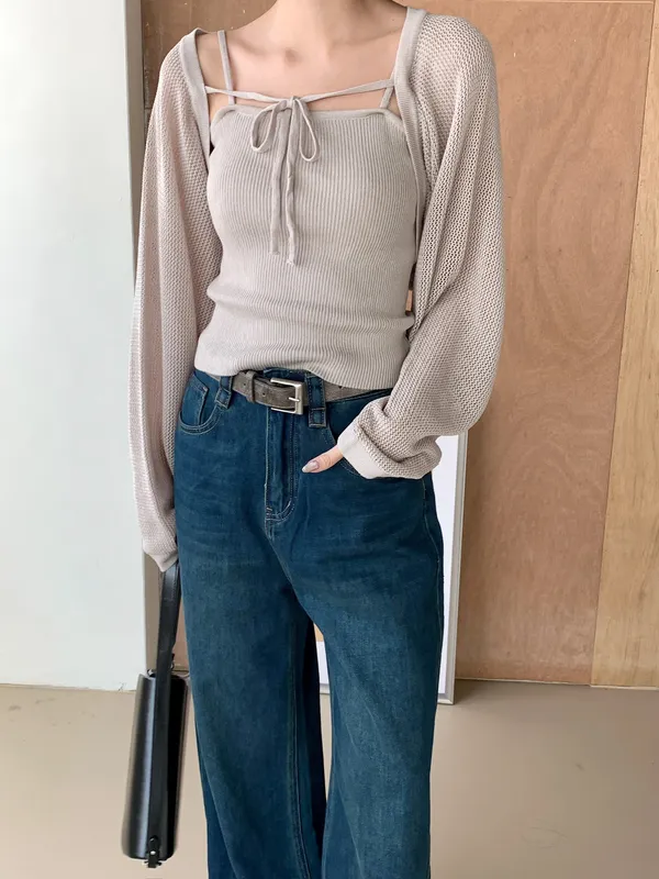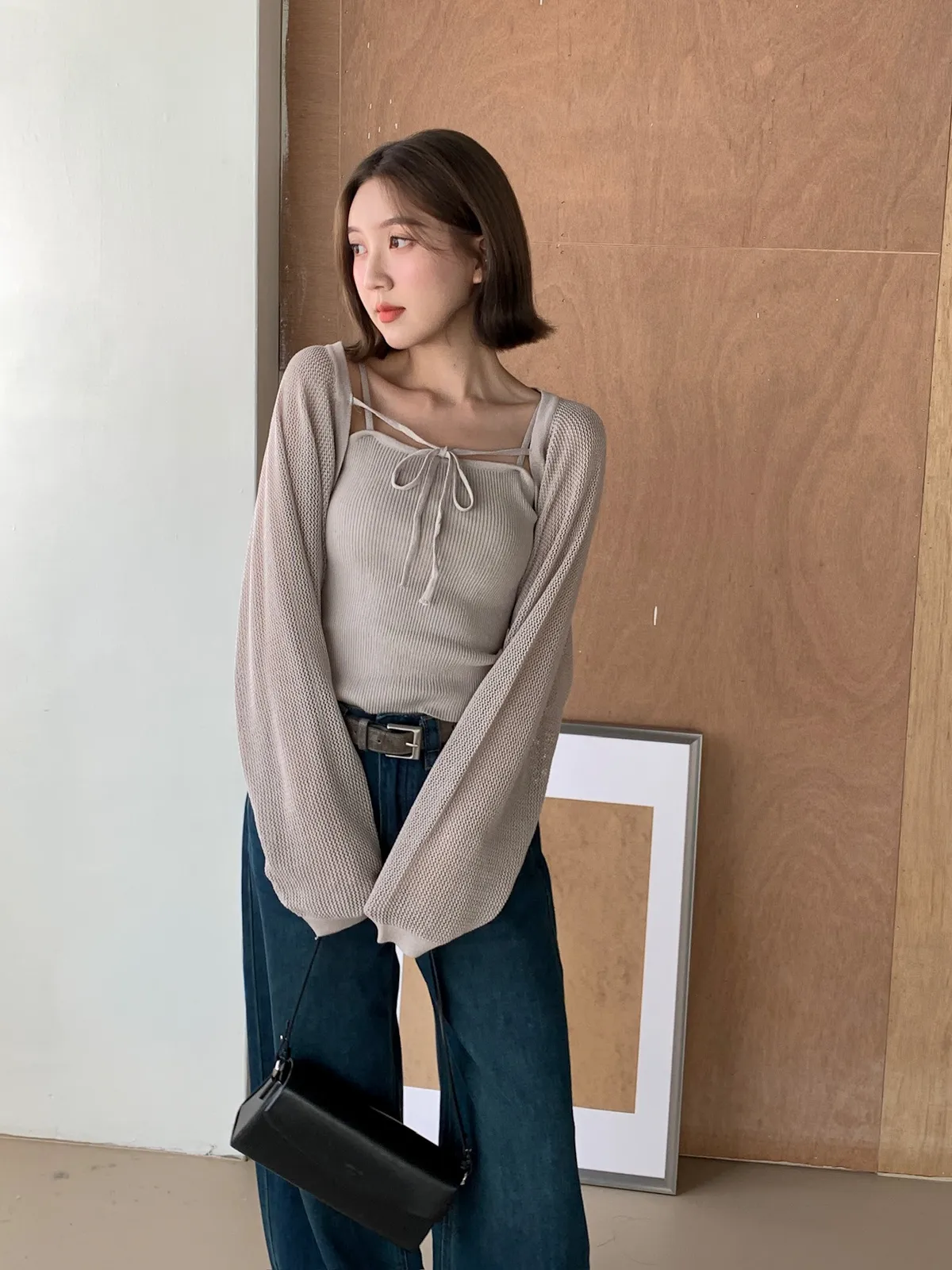 戀愛前兆|兩件式綁帶針織洞洞上衣