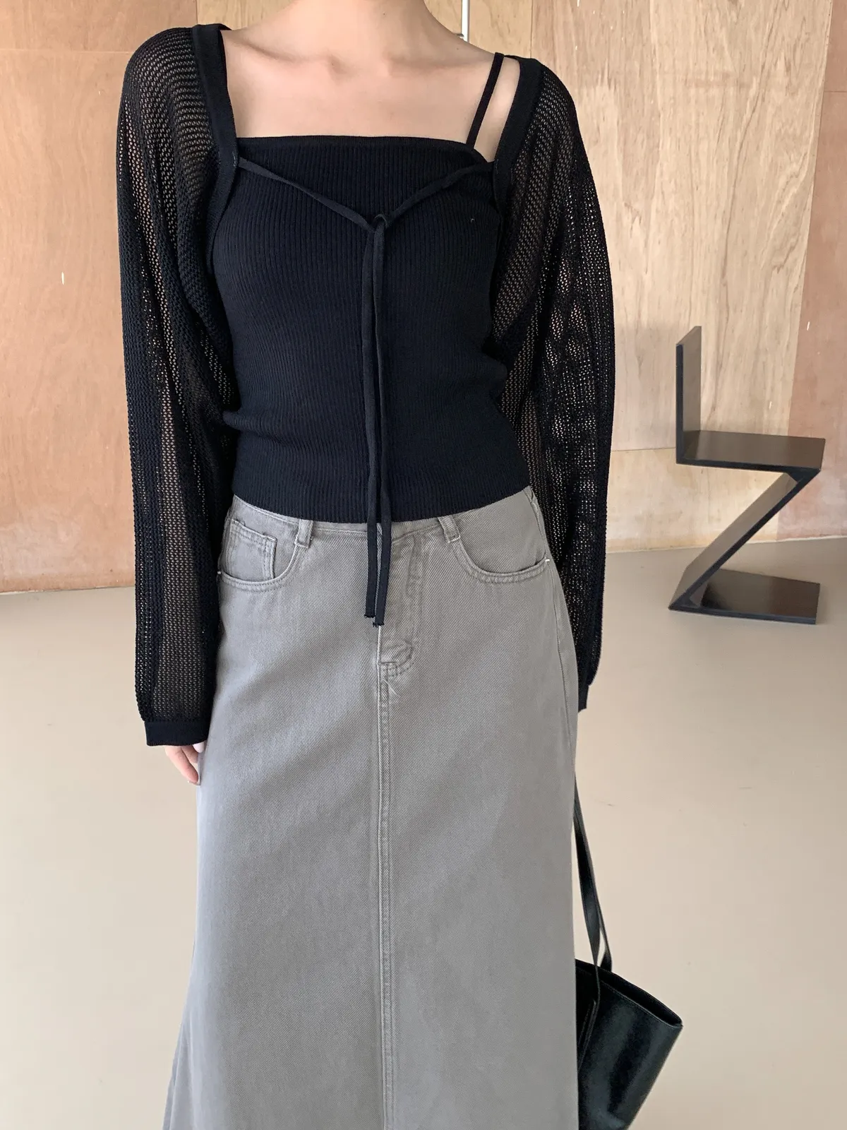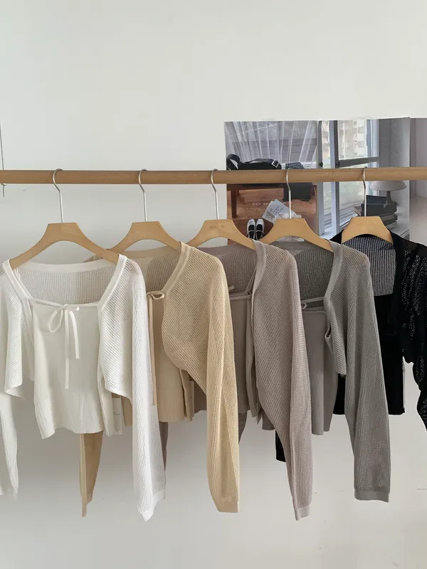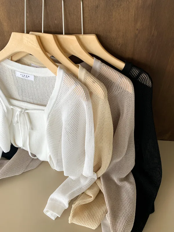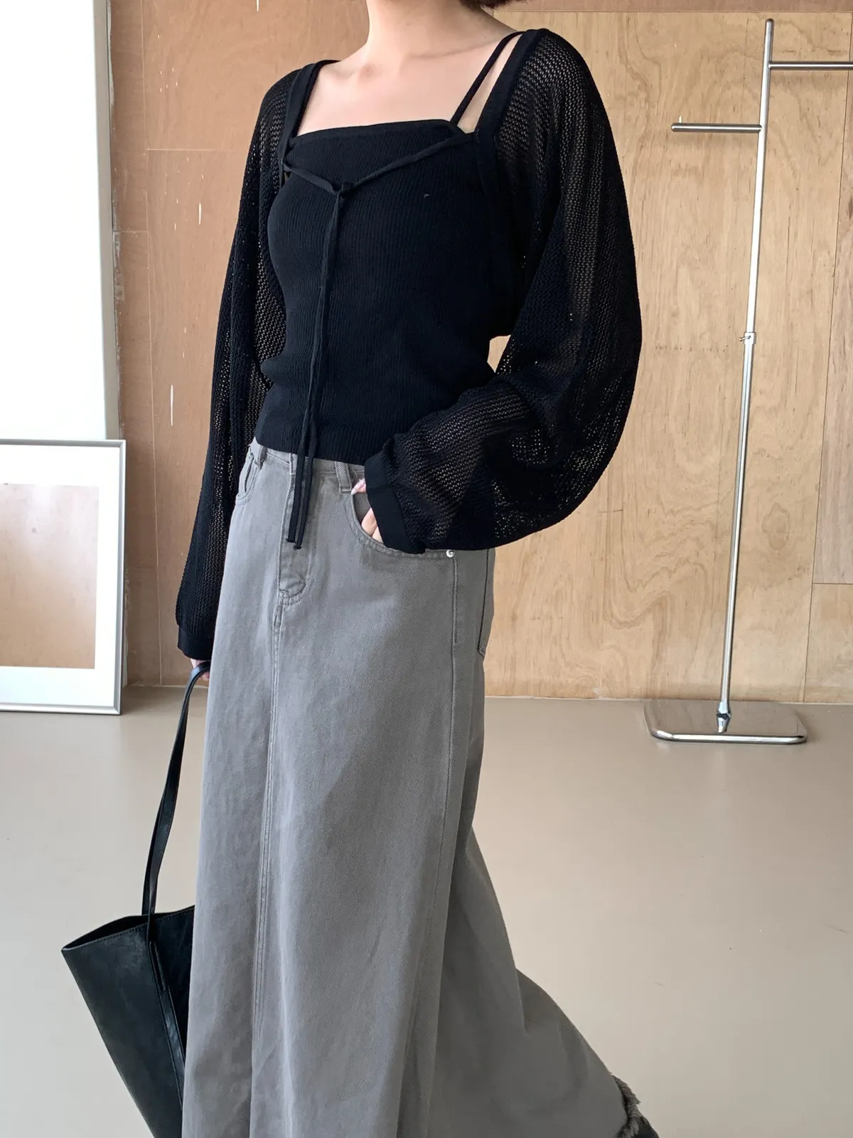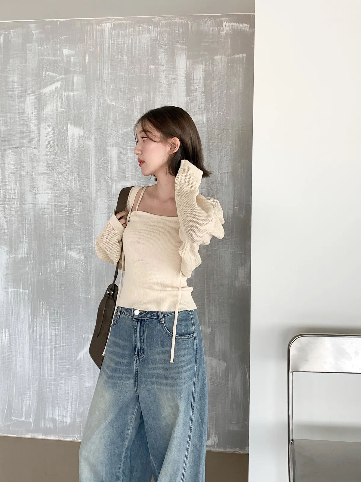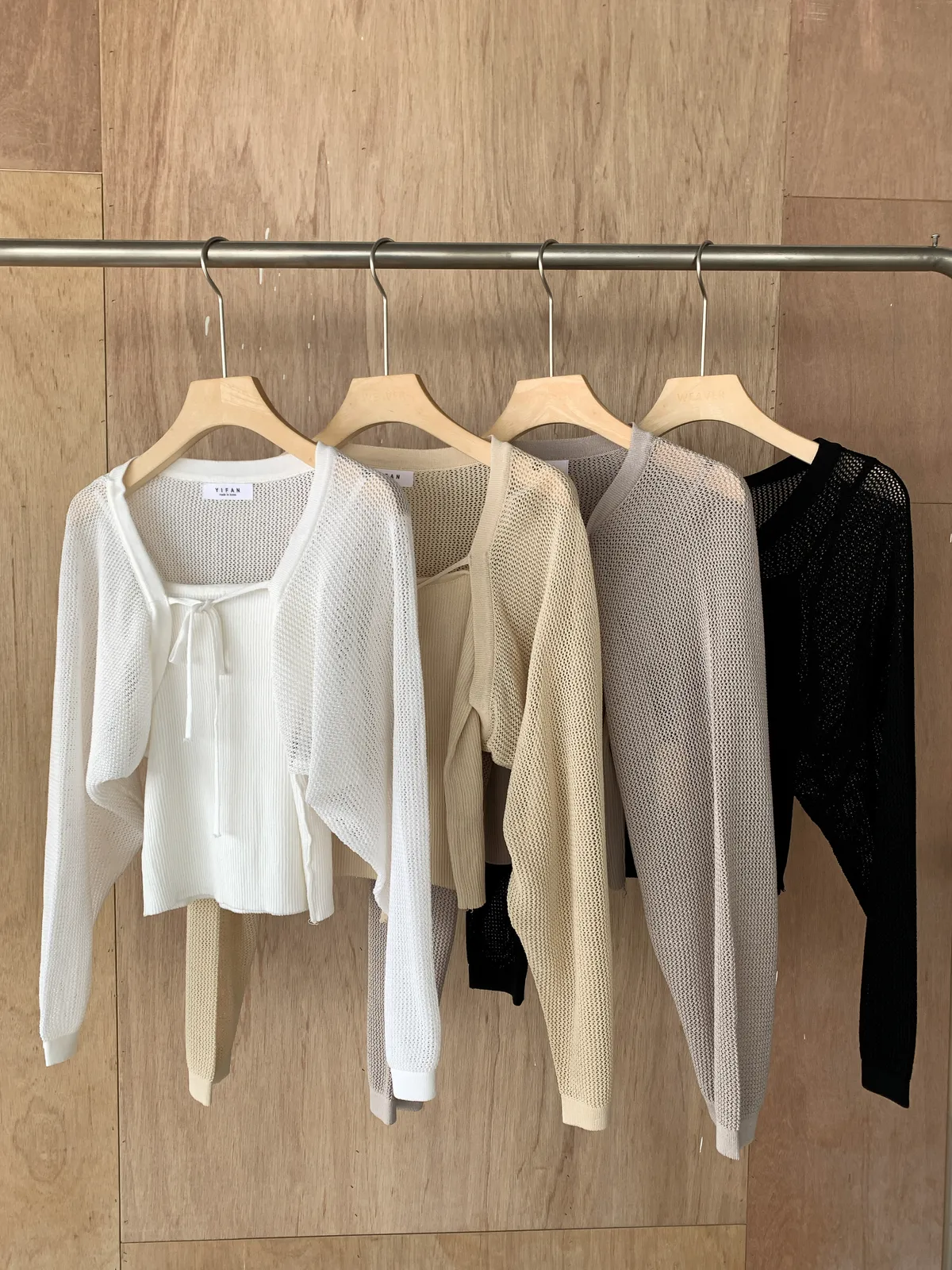 戀愛前兆|兩件式綁帶針織洞洞上衣