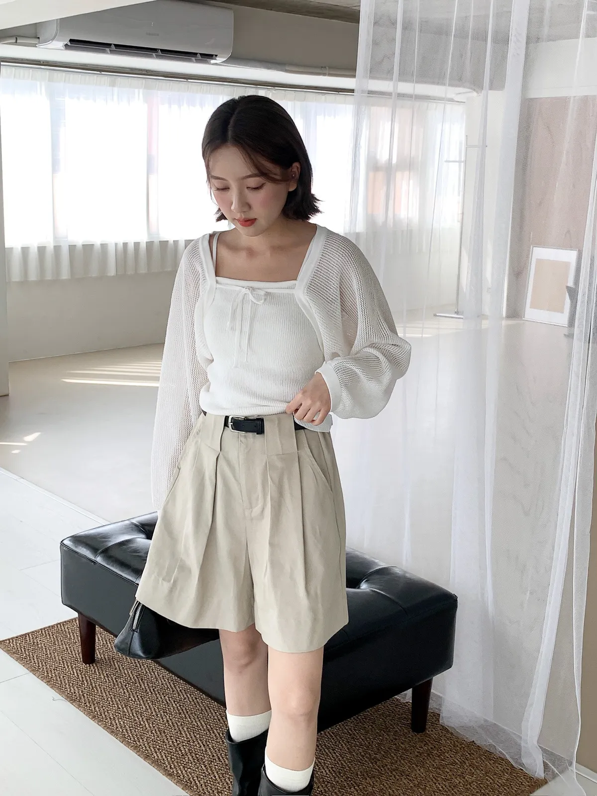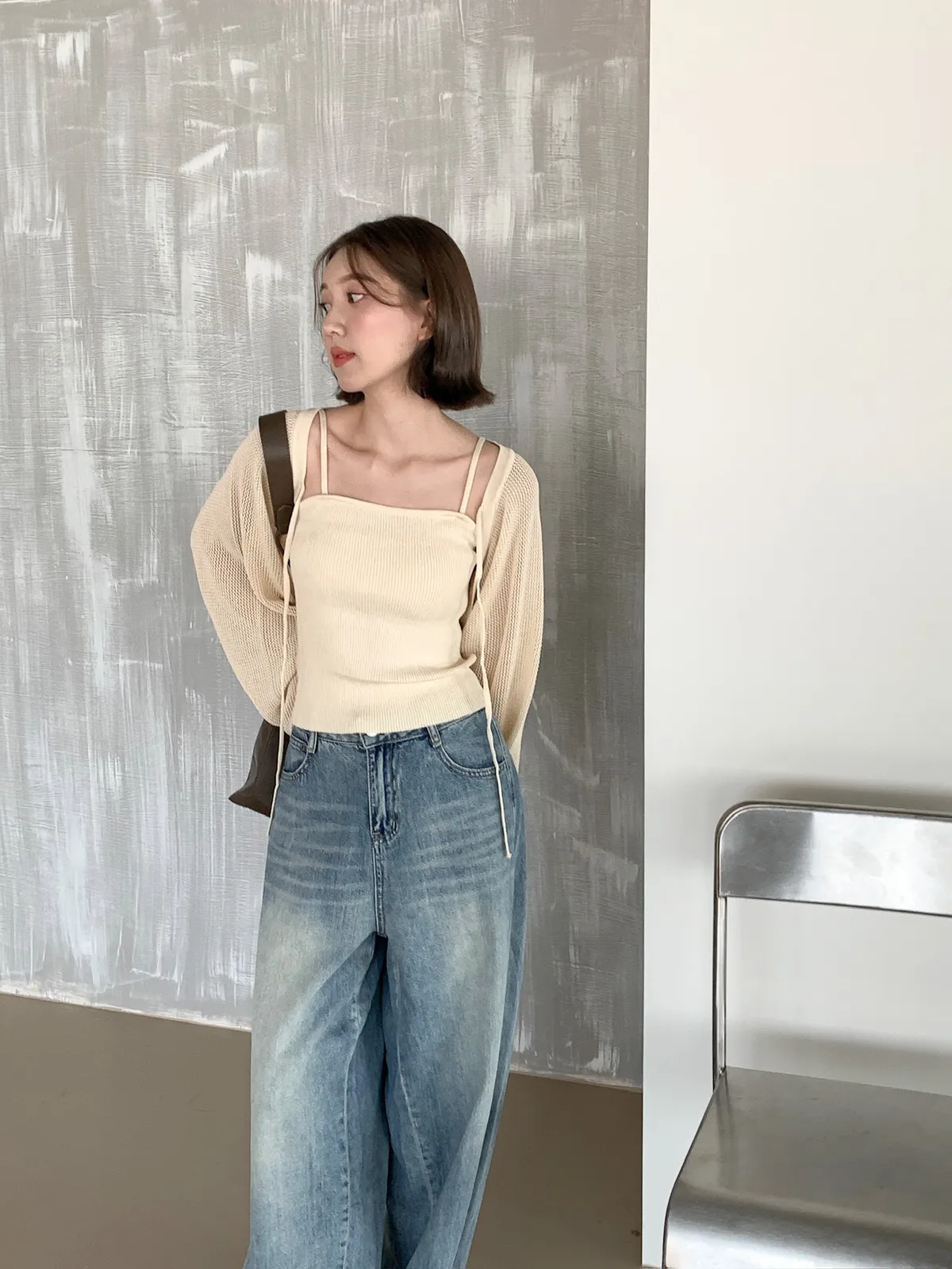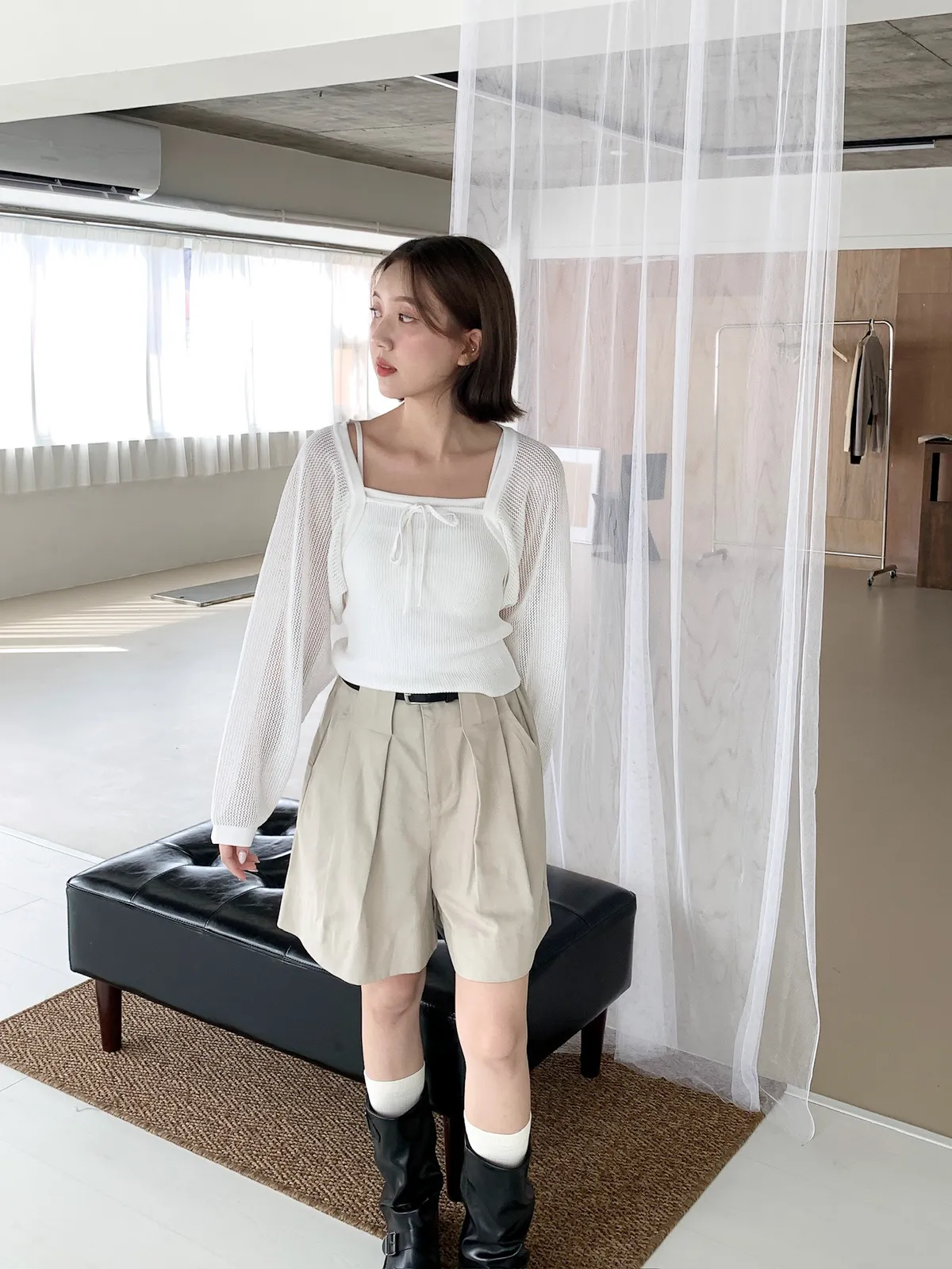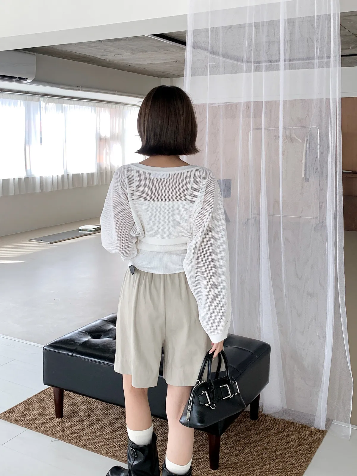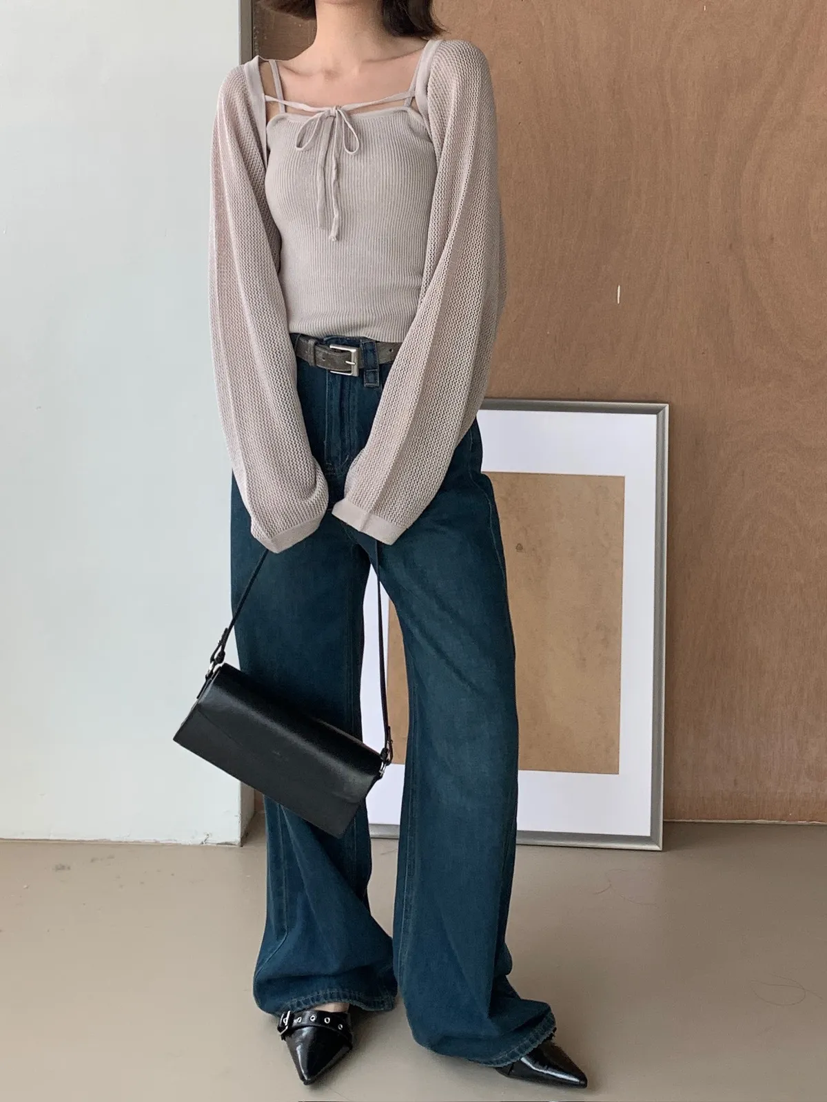戀愛前兆|兩件式綁帶針織洞洞上衣