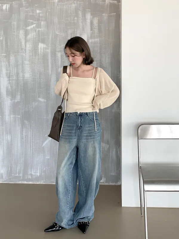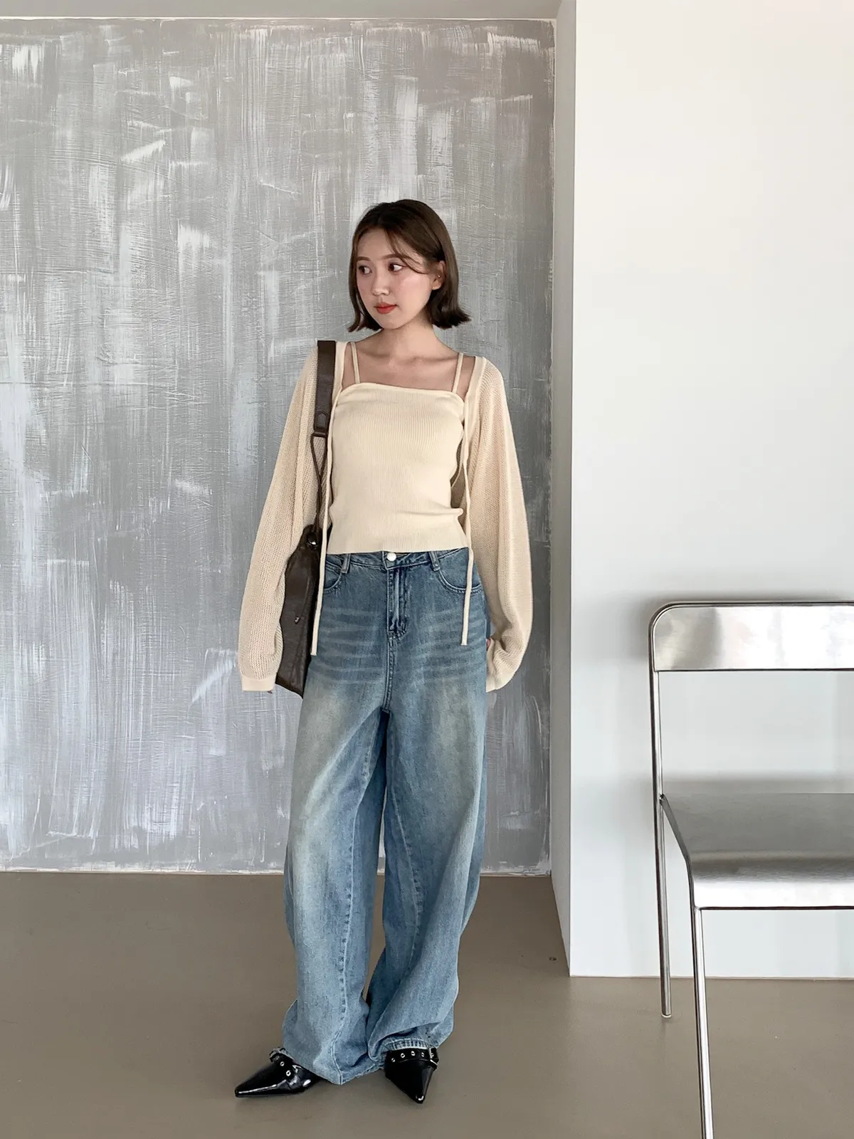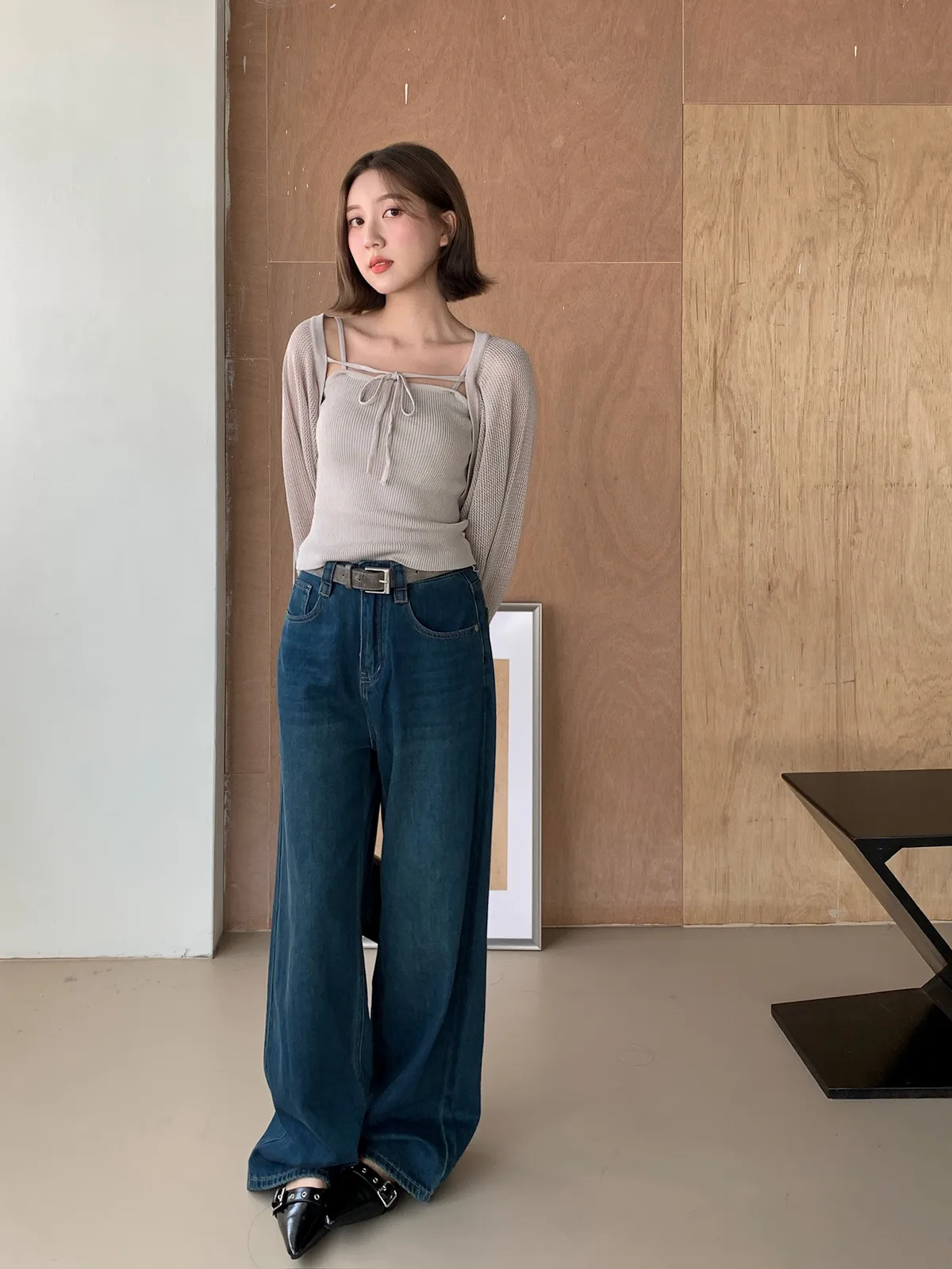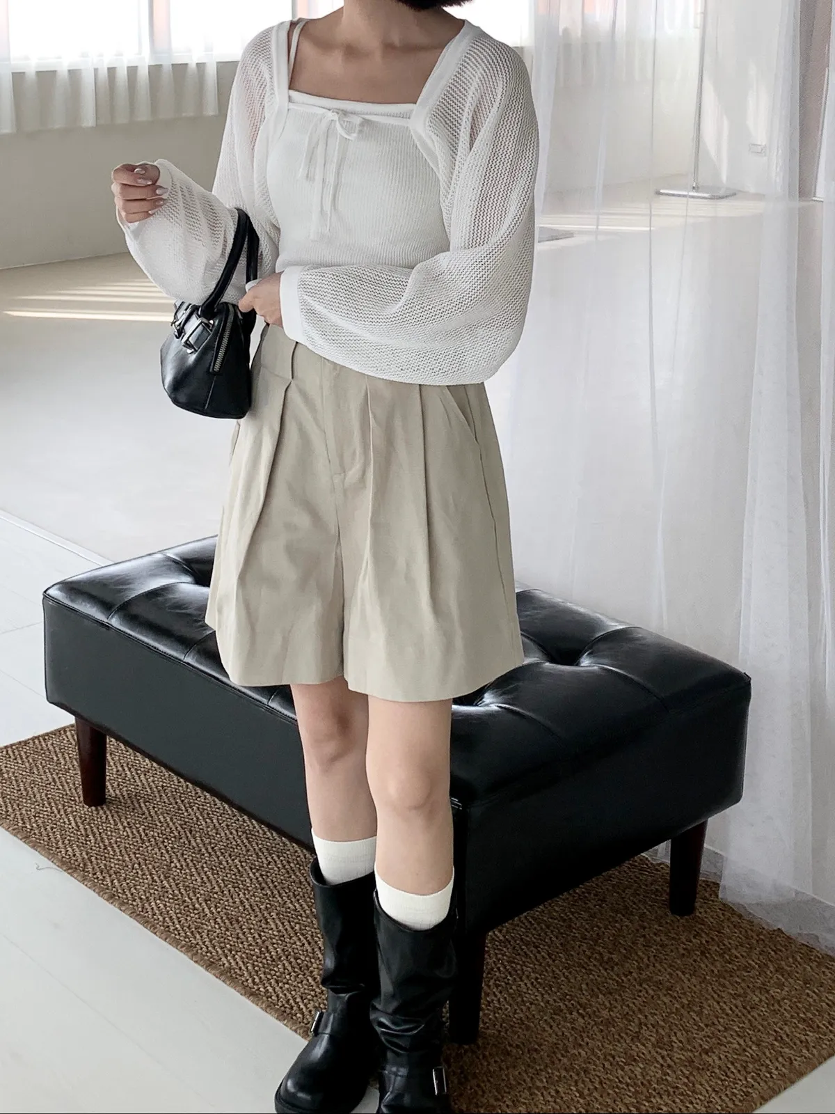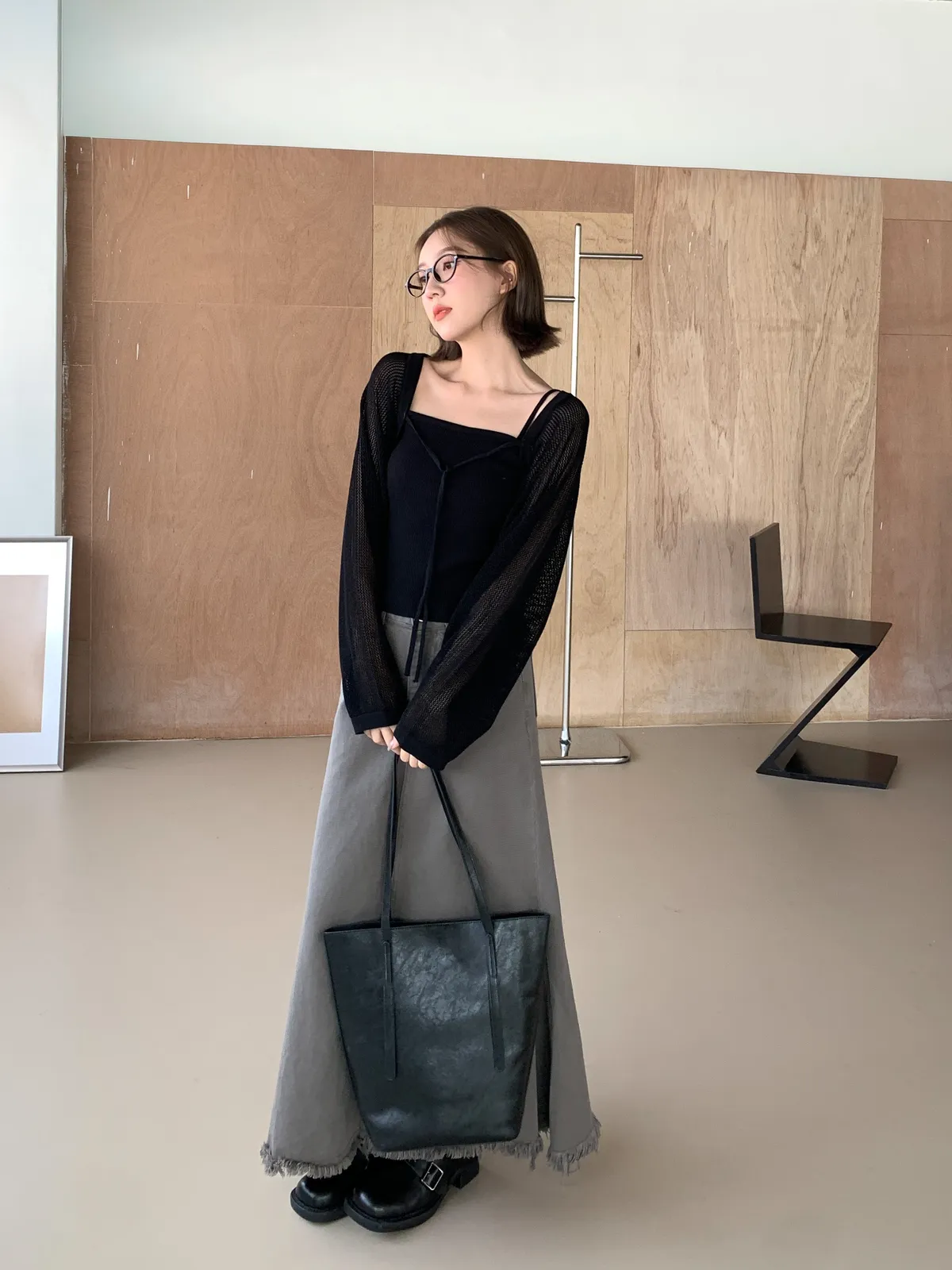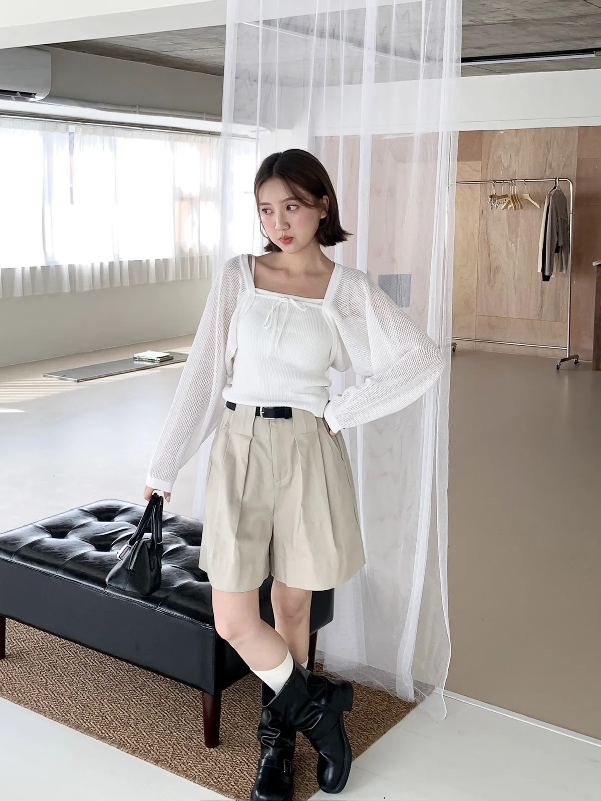 戀愛前兆|兩件式綁帶針織洞洞上衣