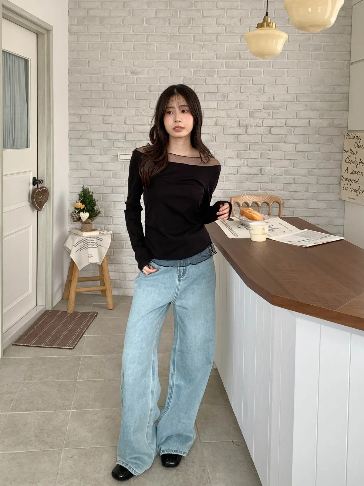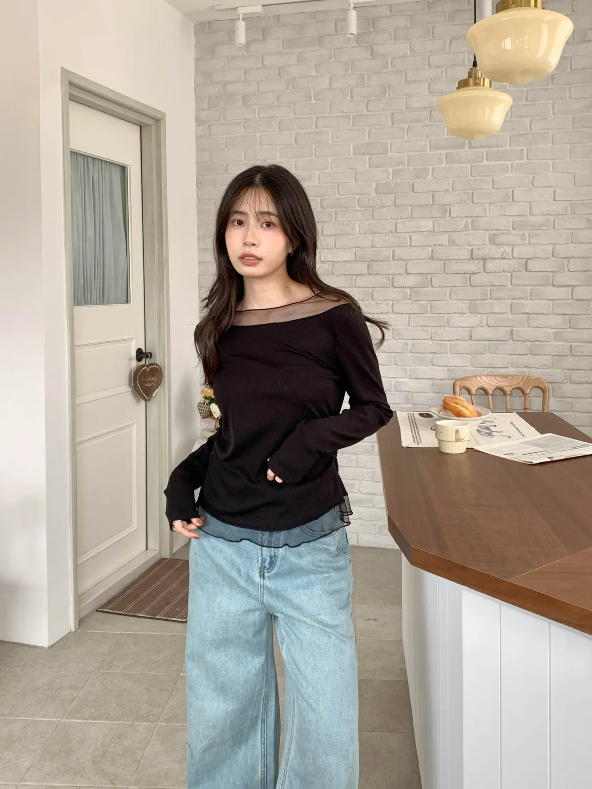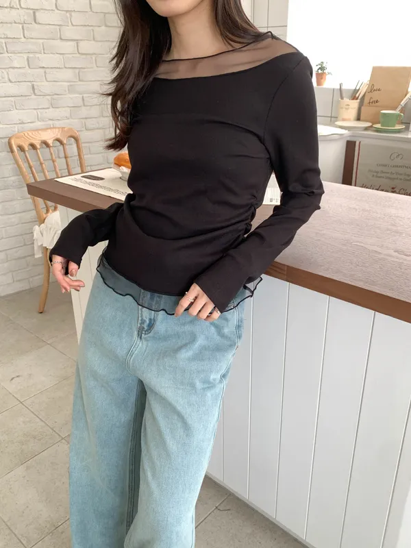 溫柔氣息|透紗拼接上衣