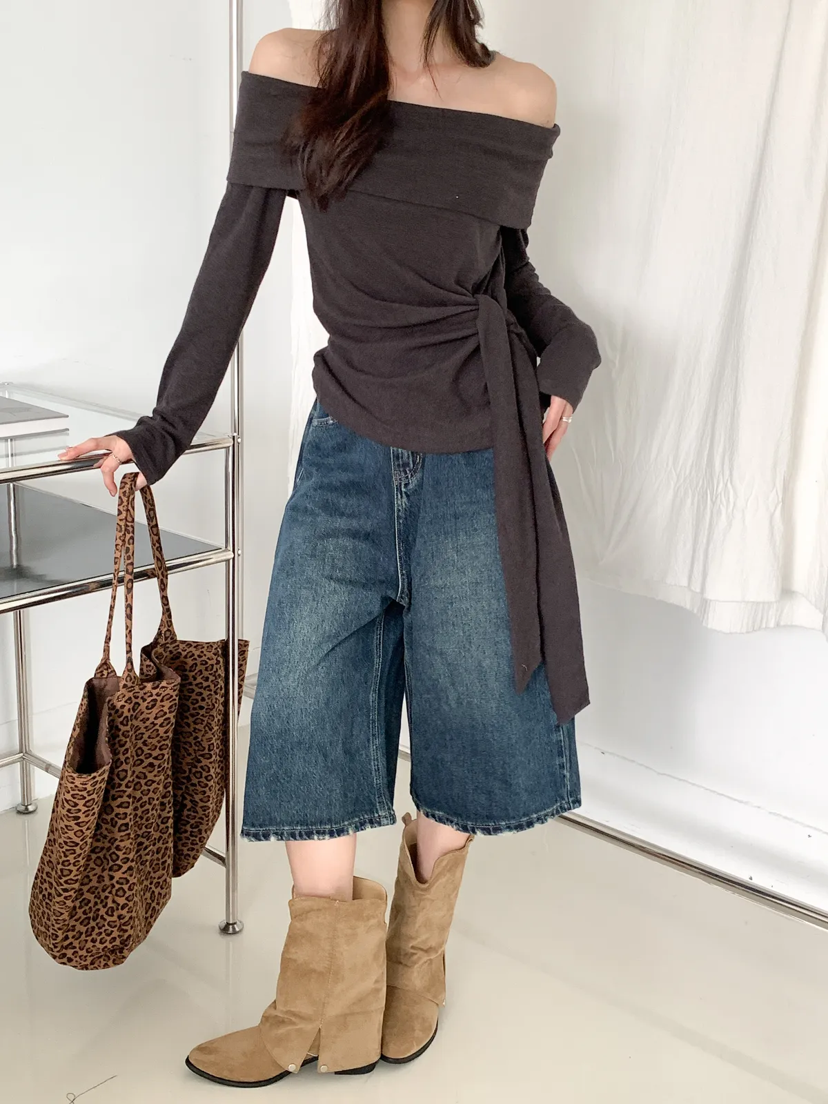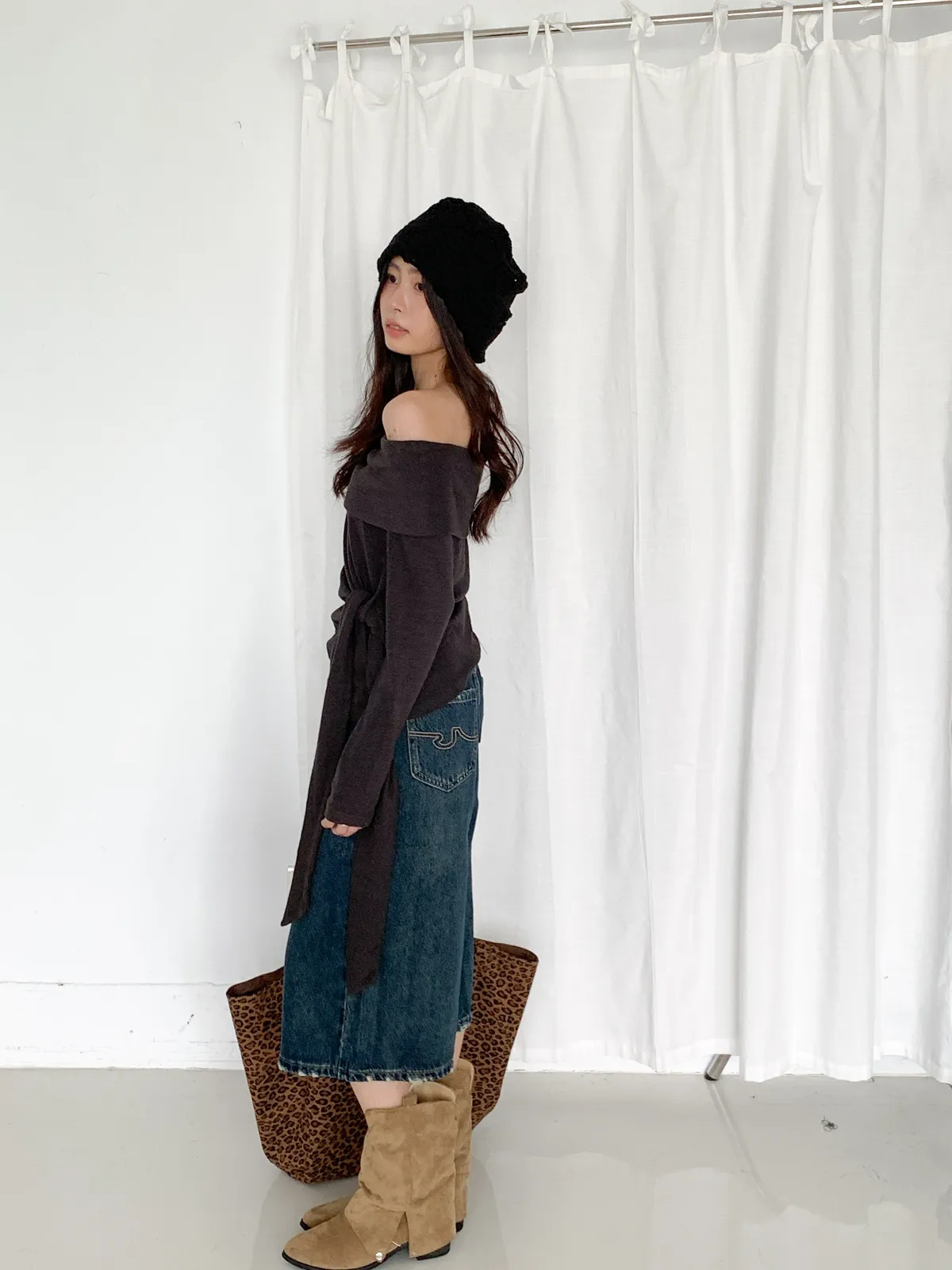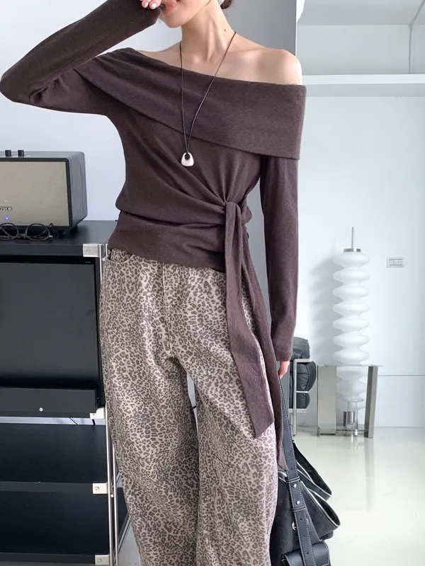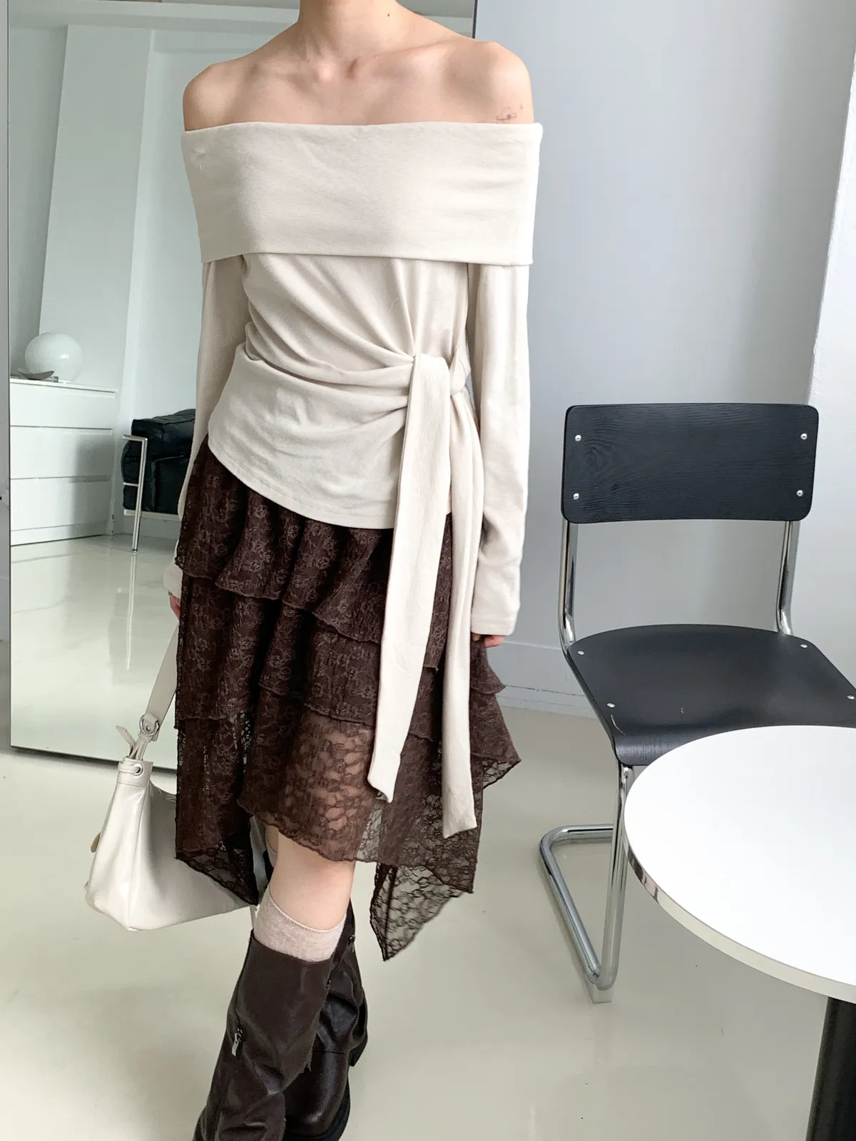 一字領設計透露一點小性感 附綁帶可綁腰上或當繞脖