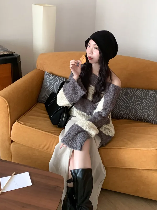 慵懶落肩版型 想要不一樣的穿搭可內搭高領背心更有層次感