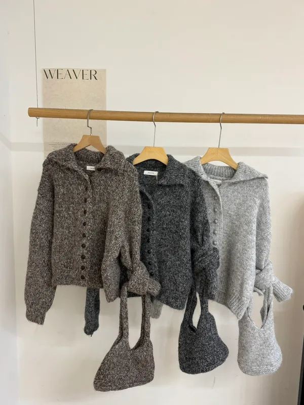 暖暖毛意.混色小圓扣翻領毛衫(附毛毛手袋)