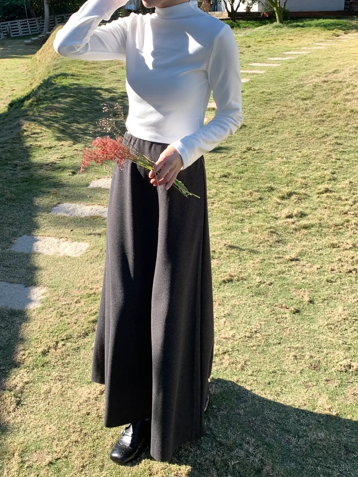 穿著保暖又有份量感 自然垂墜剪裁修飾臀腿線條,