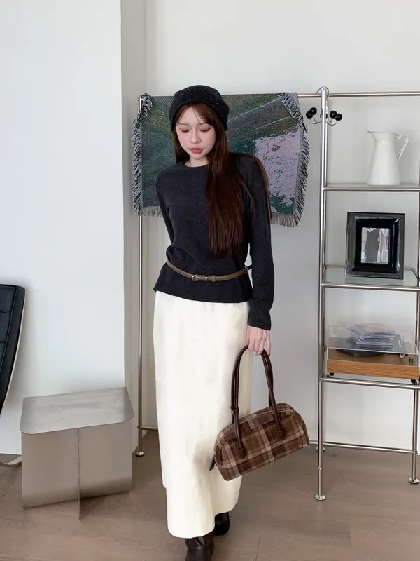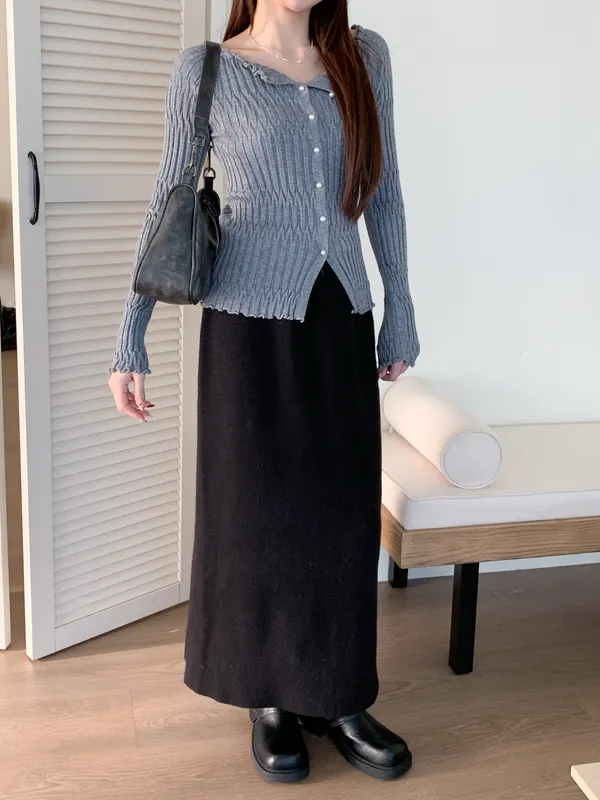 柔軟輕盈|極簡氣質純色修身針織長裙