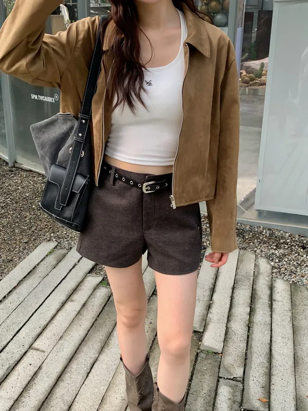秋冬衣櫃少不了的毛呢短褲 高腰剪裁顯比例