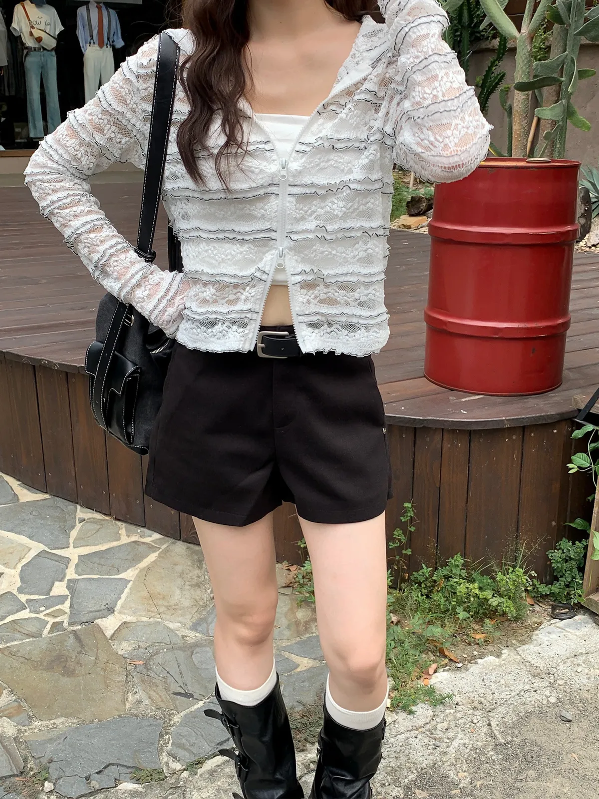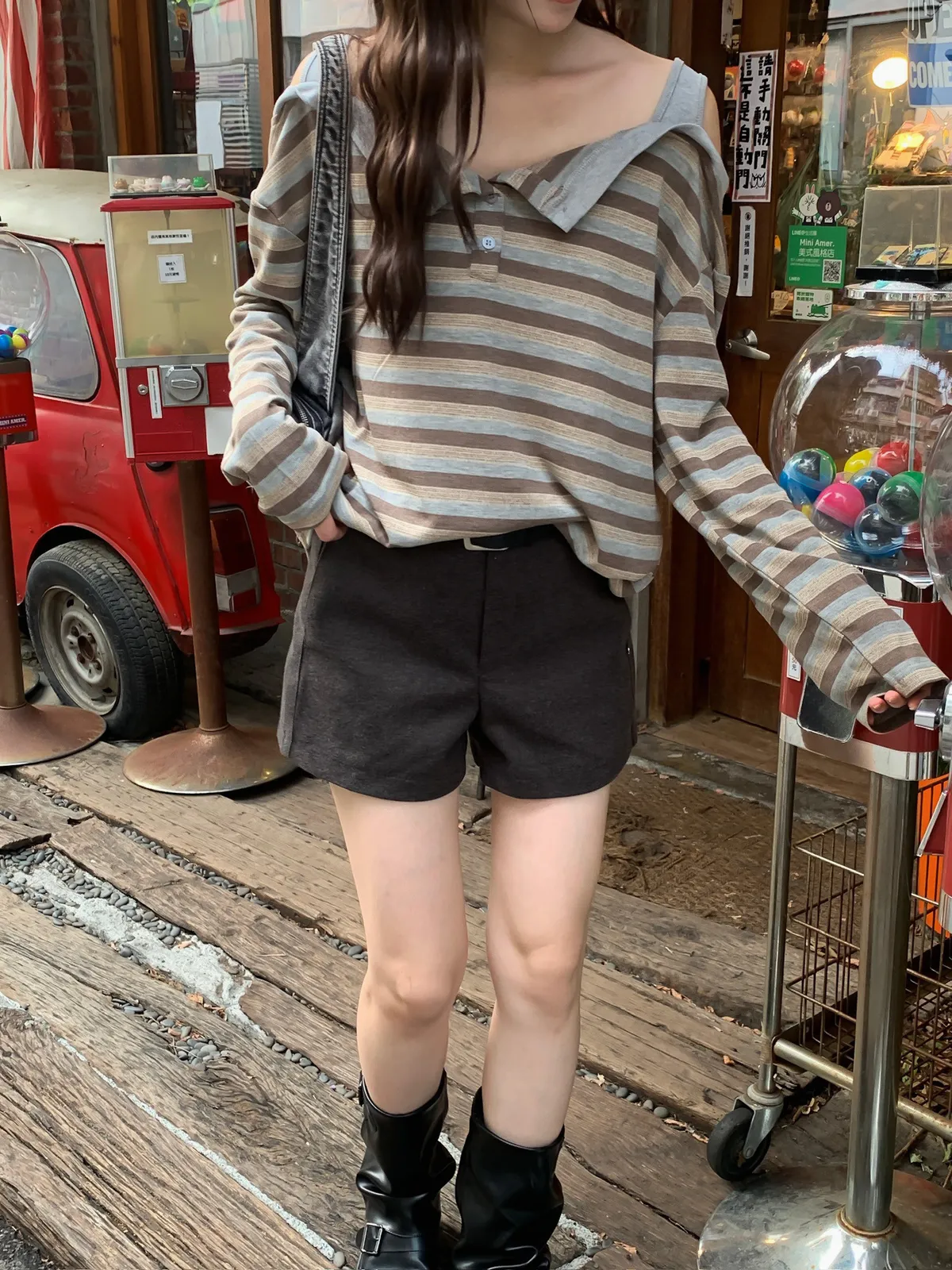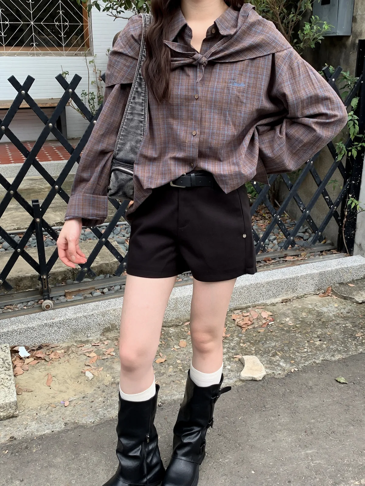 必須擁有!附皮帶金屬小標高腰毛呢短褲