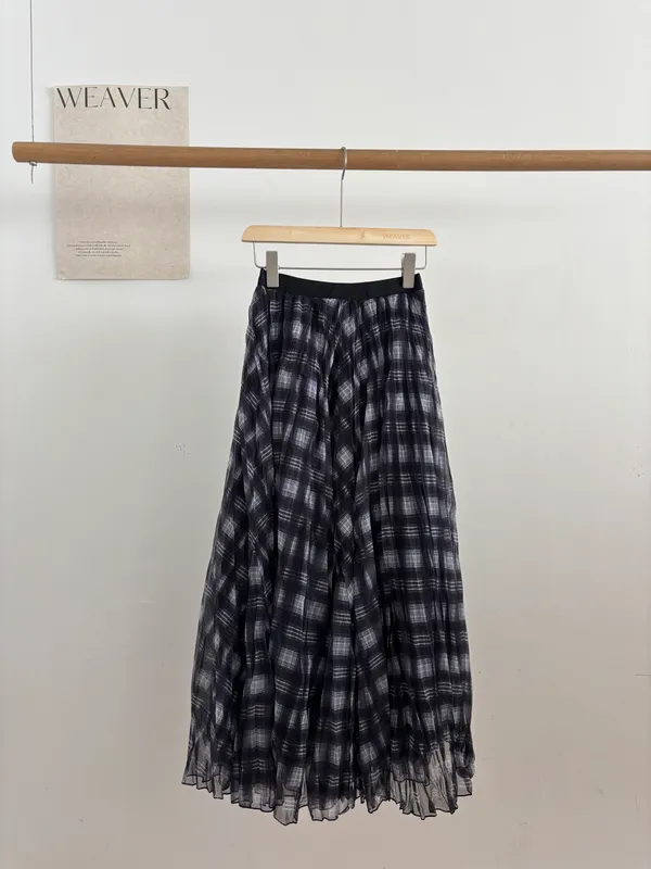 秋天風暴|腰鬆緊網紗格紋長裙