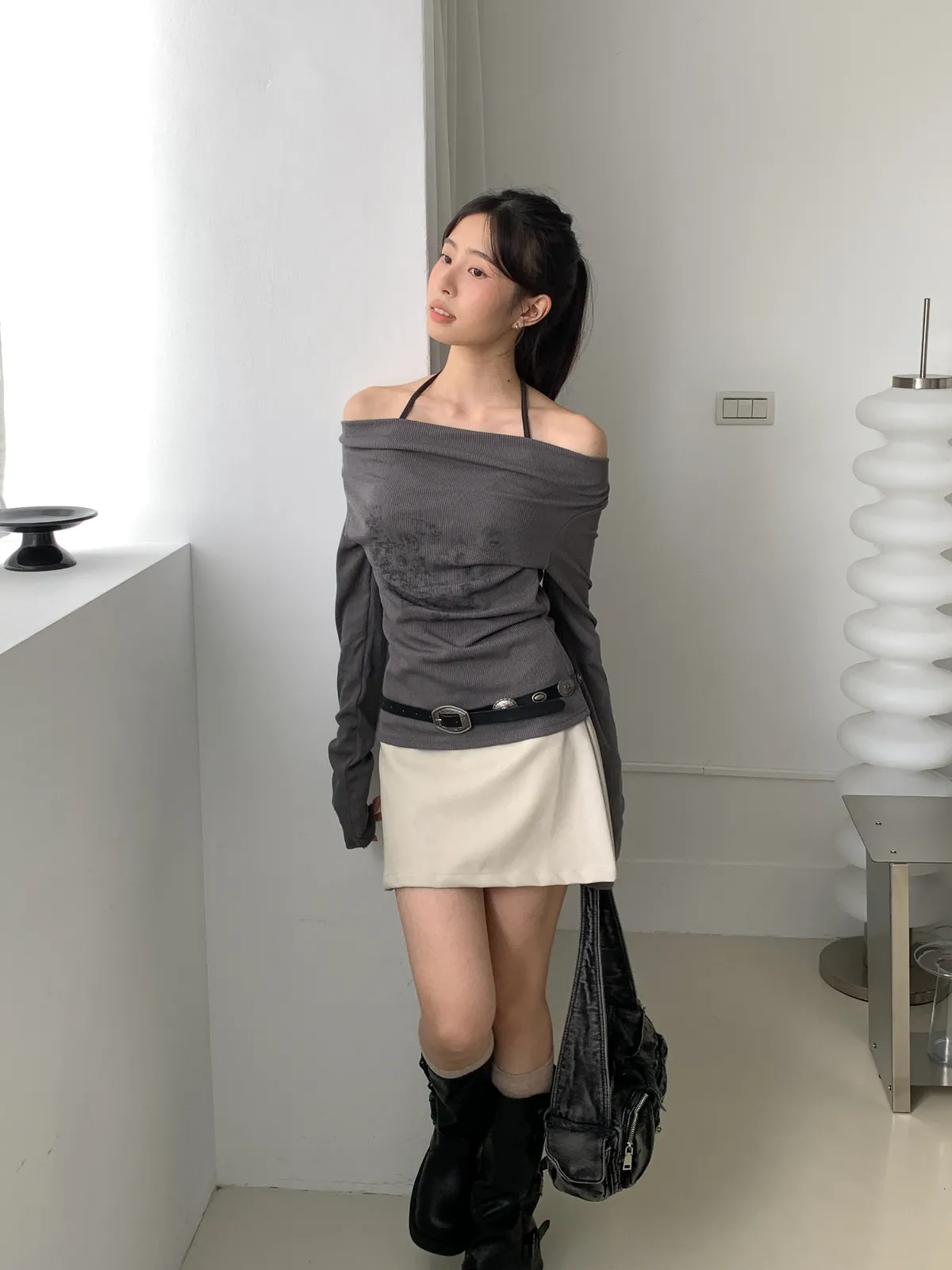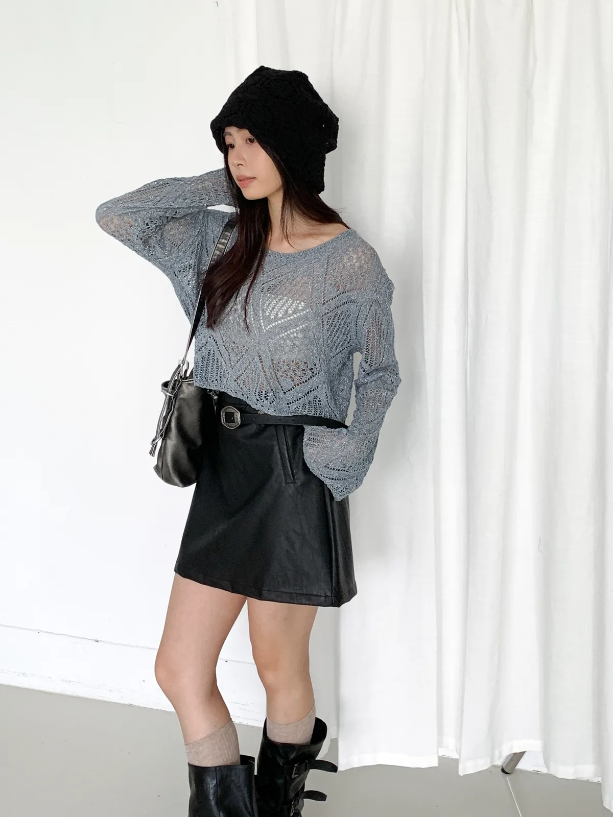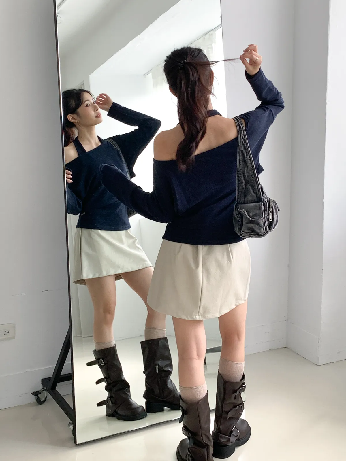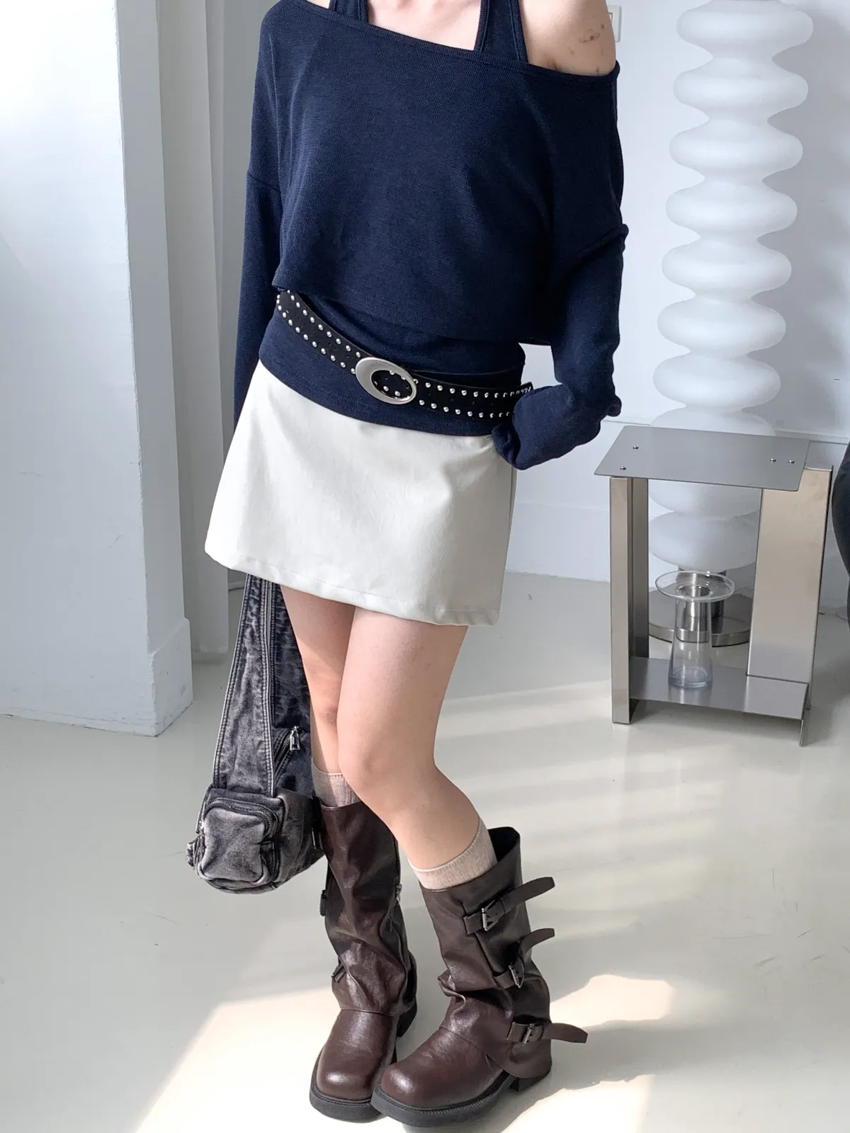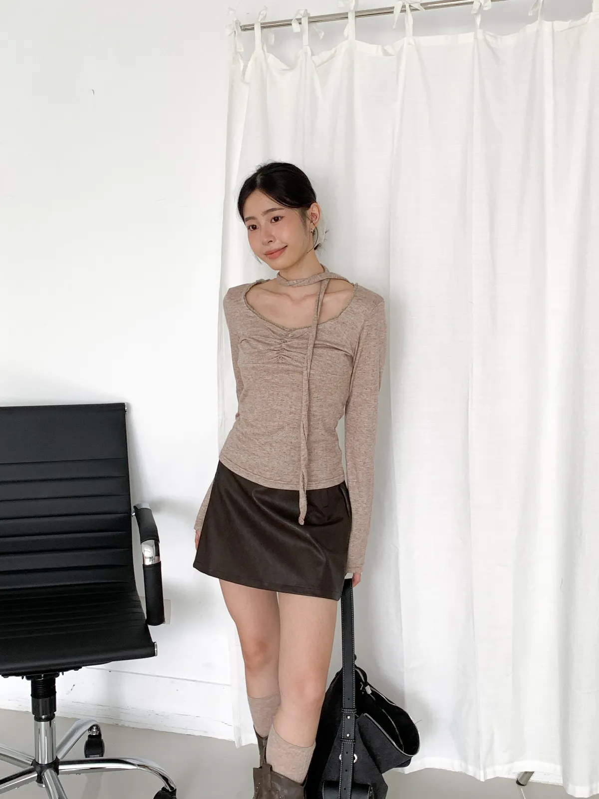 皮革短裙非常適合在秋天做搭配 做A字版型很顯瘦