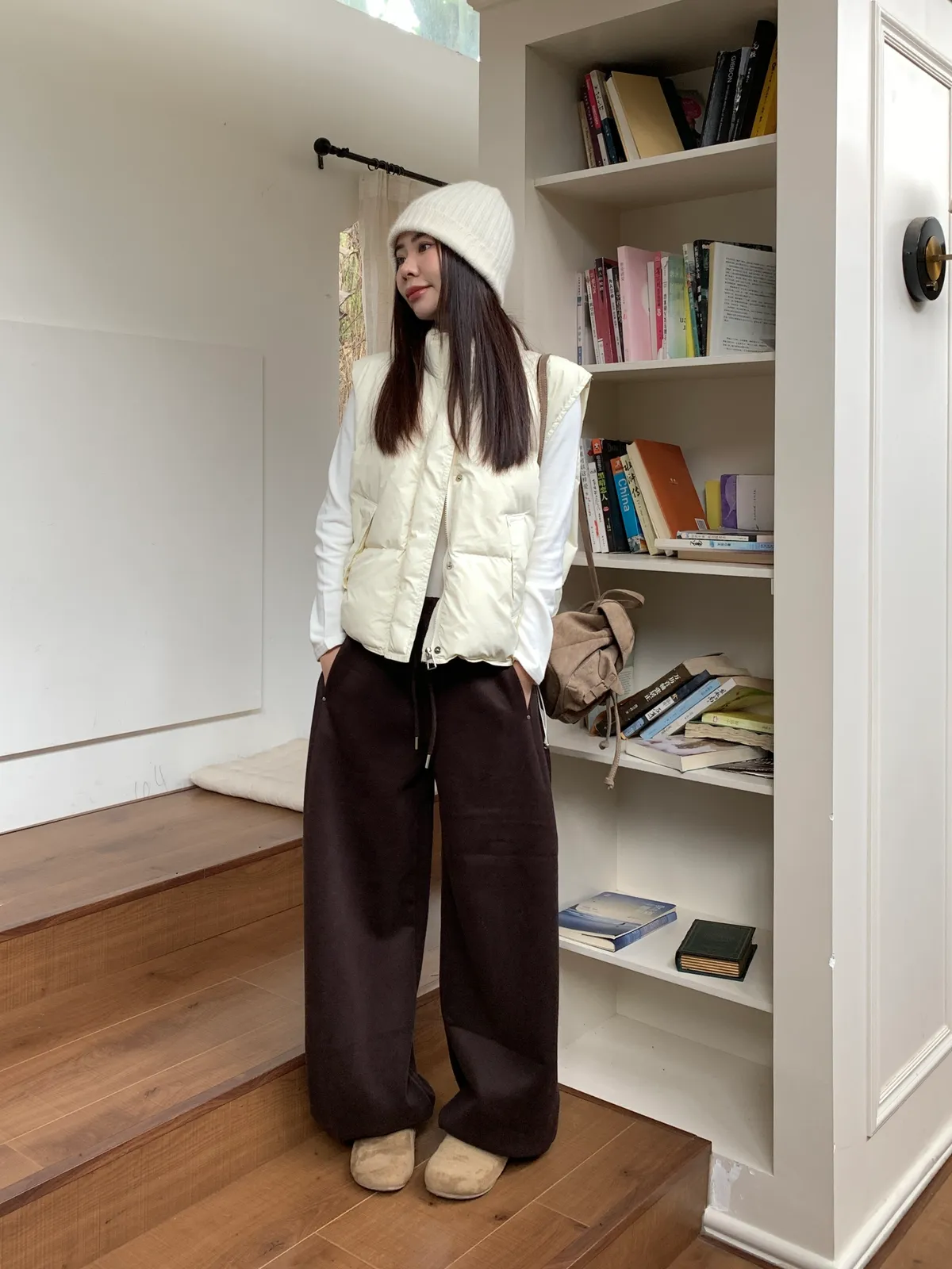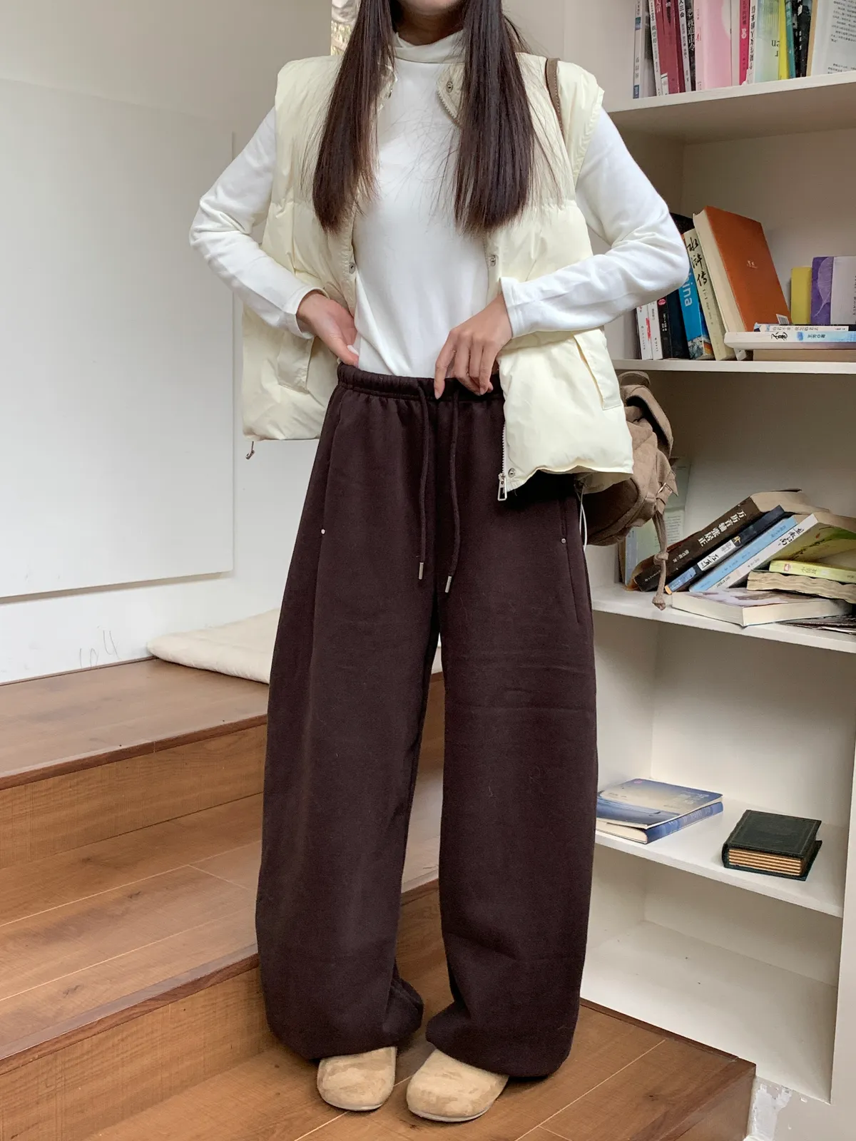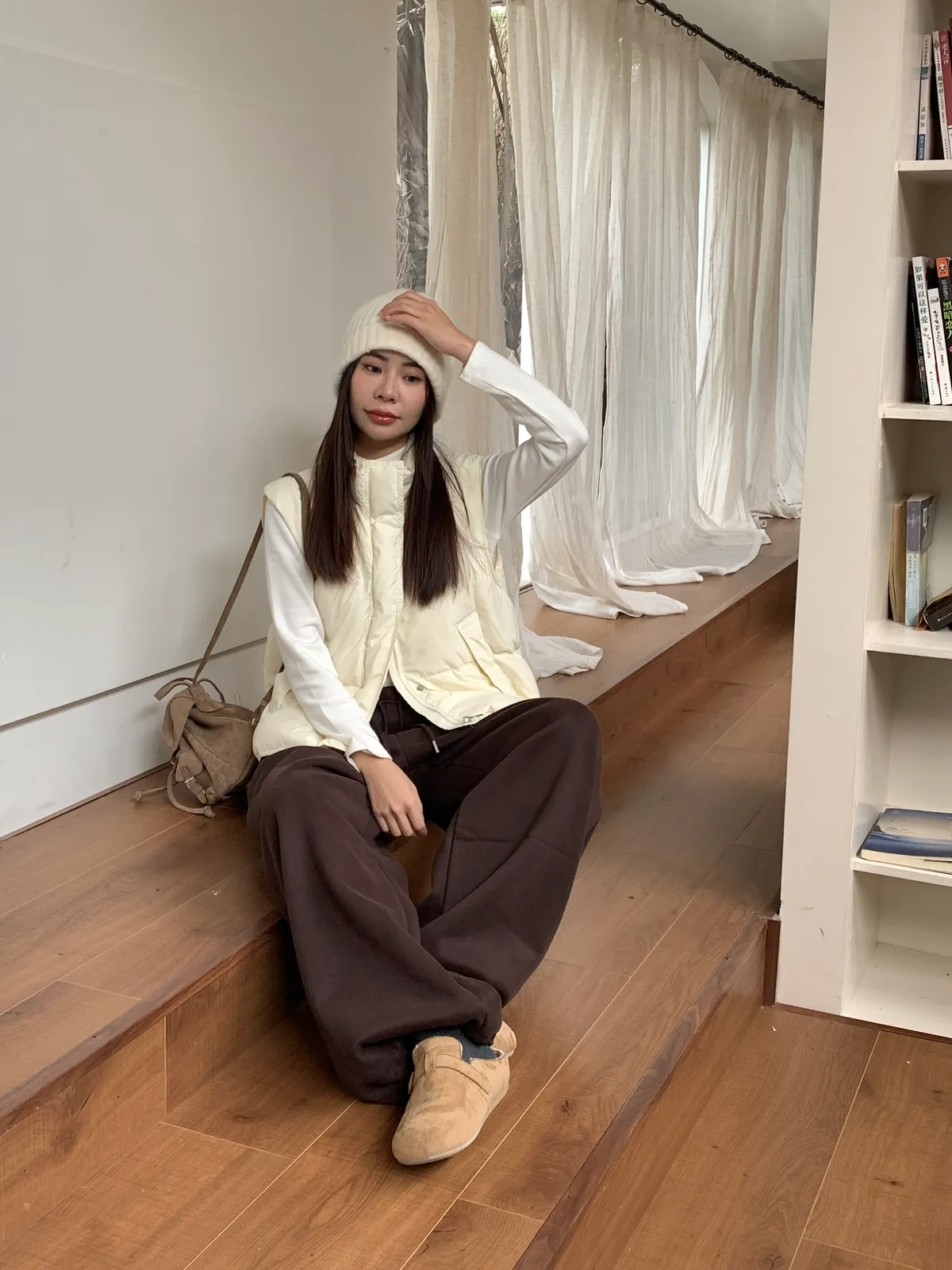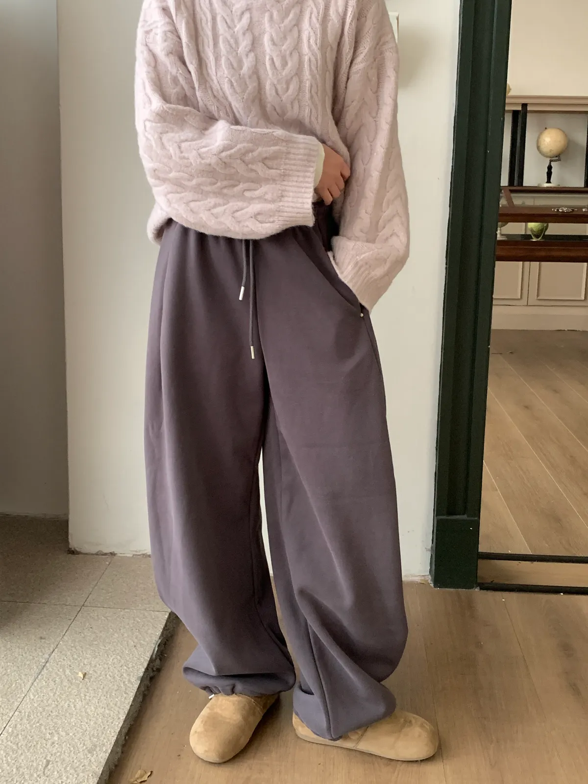 大推!刷絨款繭型下可縮口棉寬褲(內絨布,棉65%)