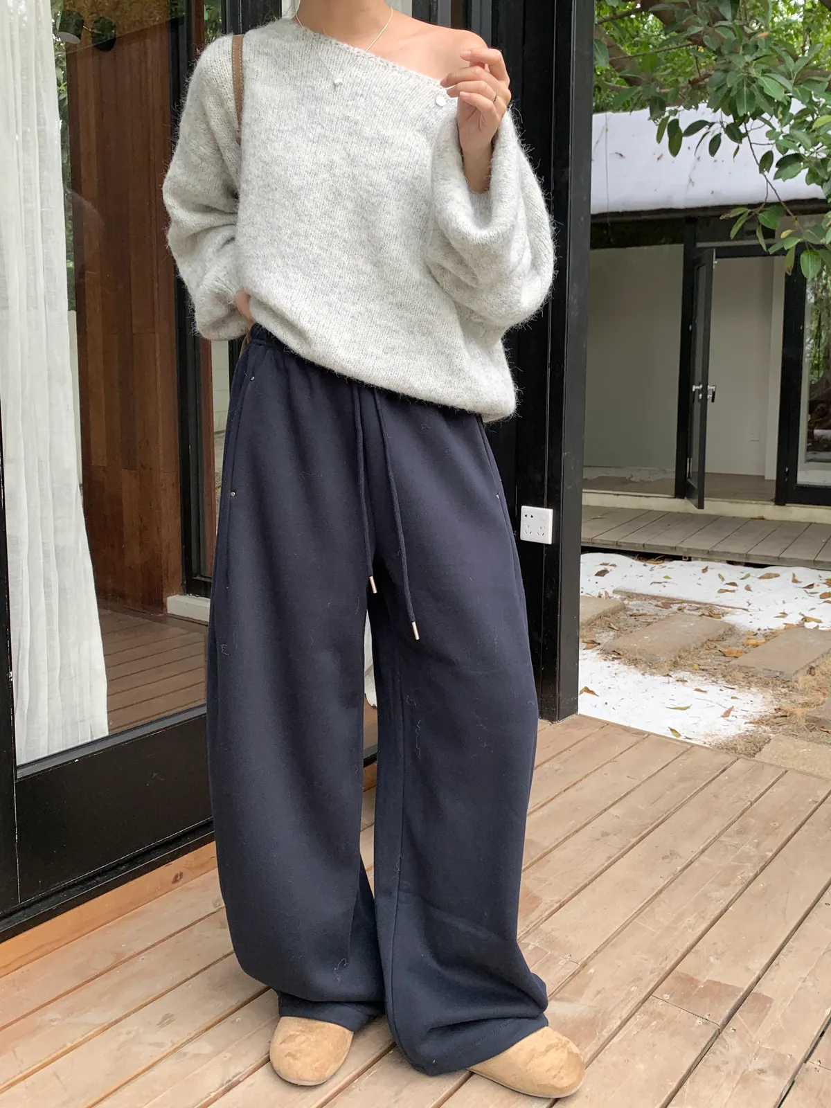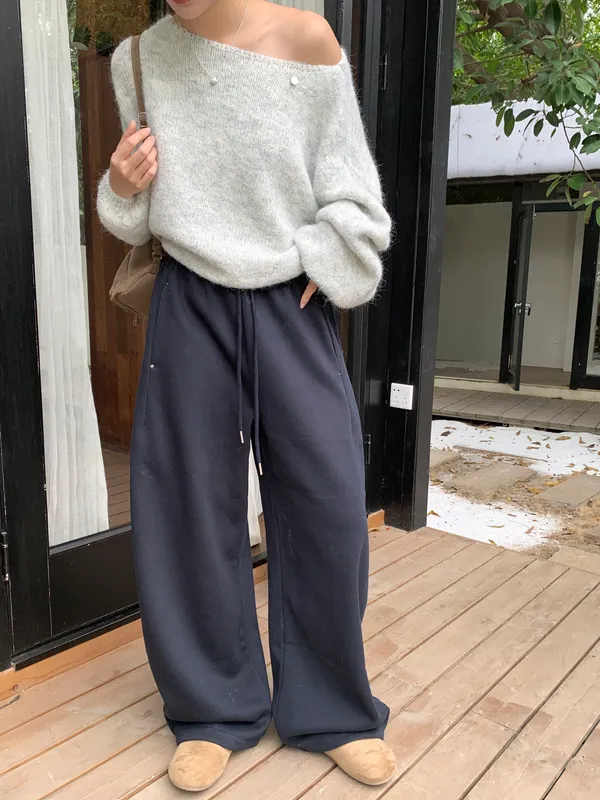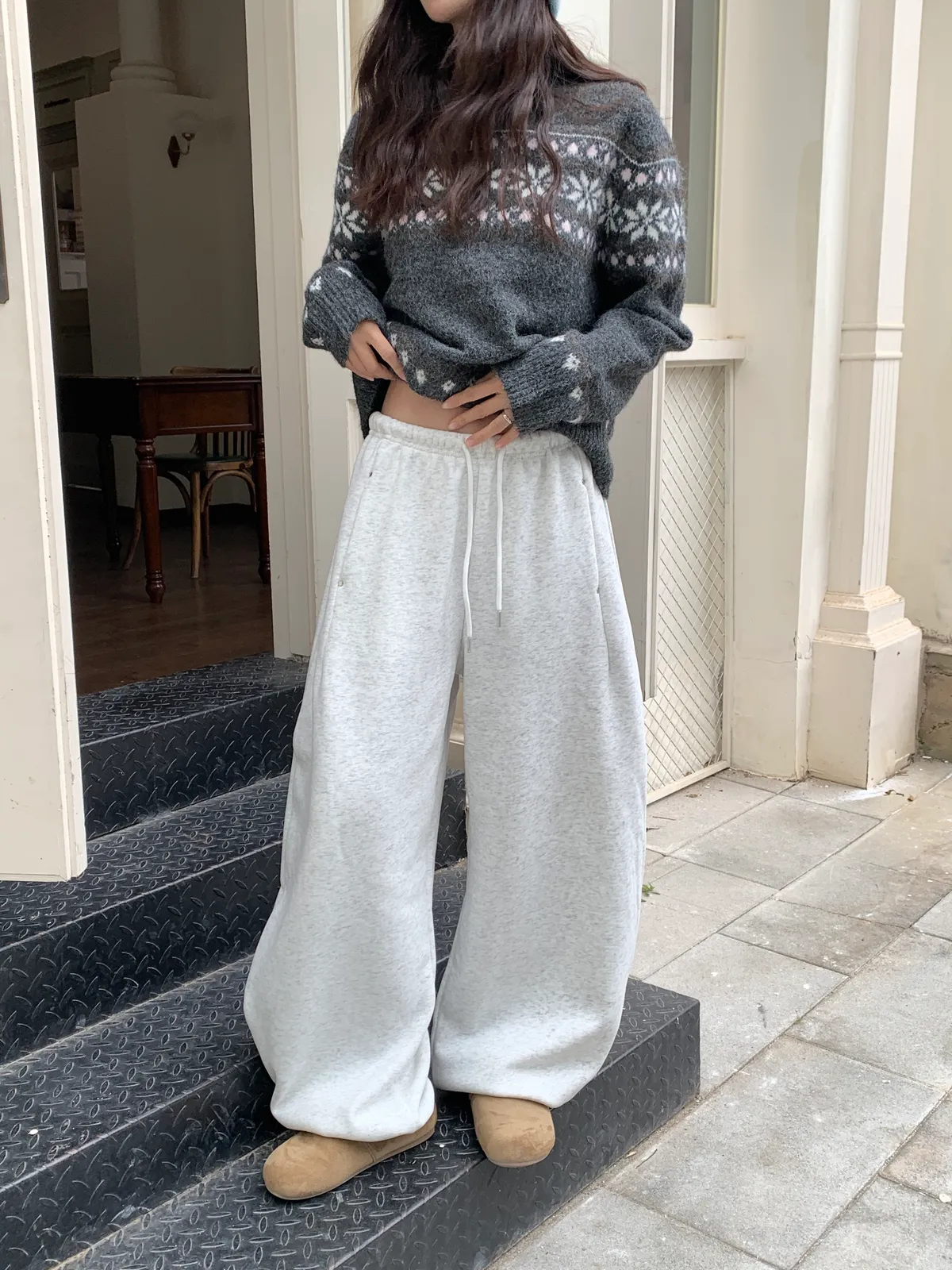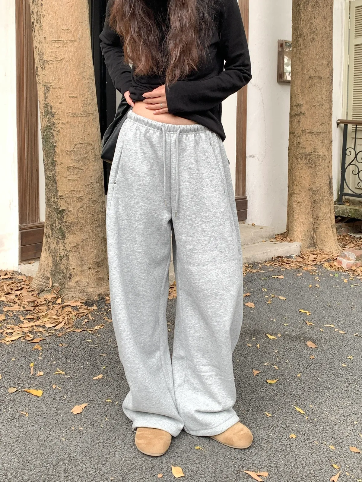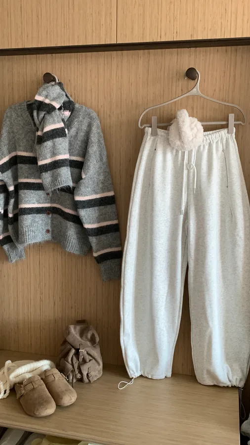 大推!刷絨款繭型下可縮口棉寬褲(內絨布,棉65%)