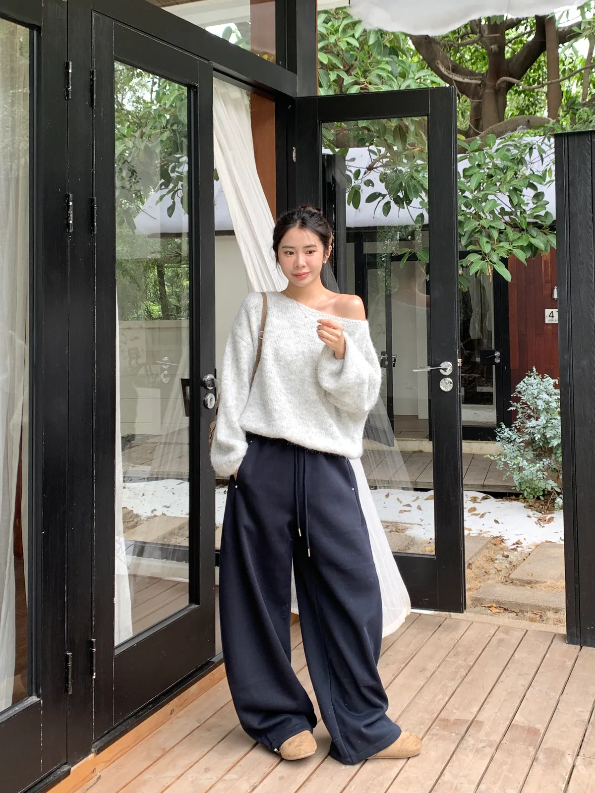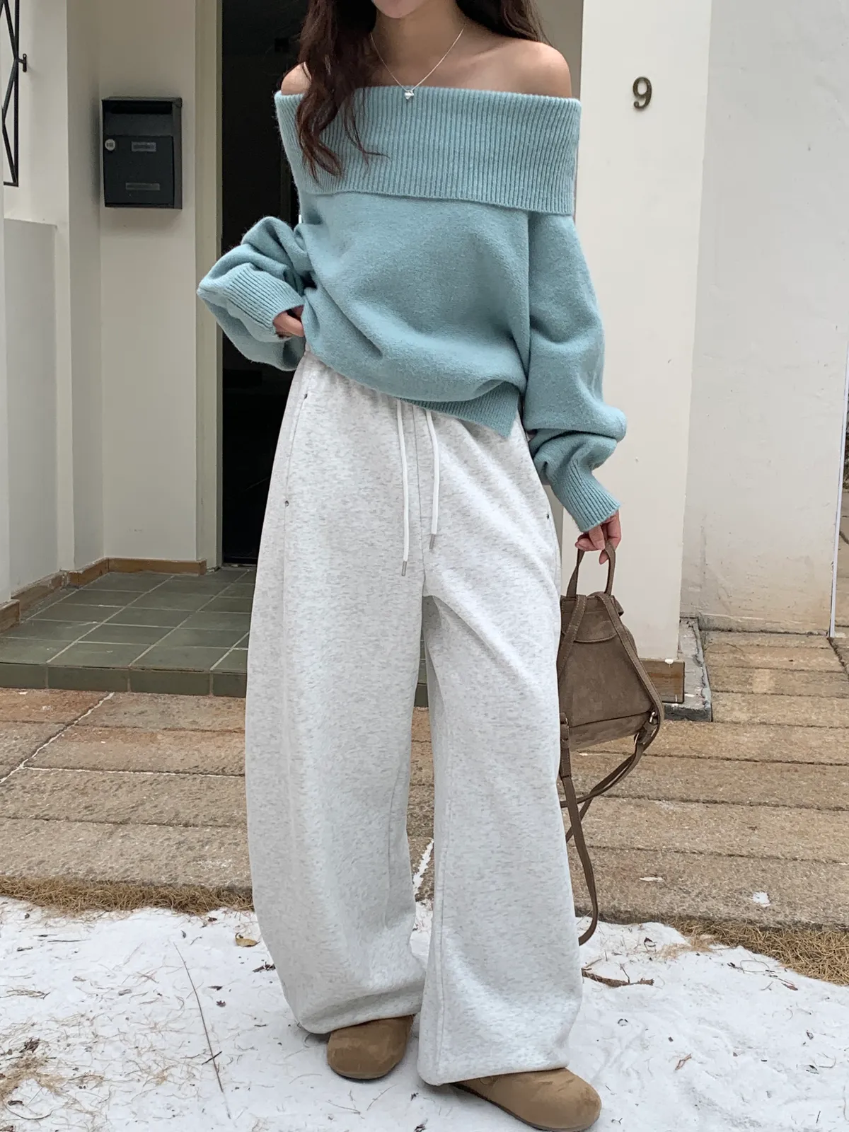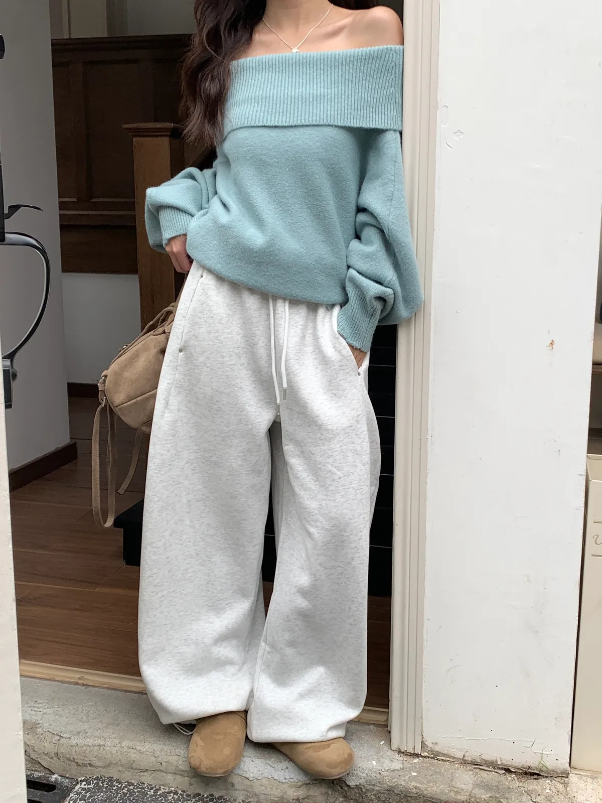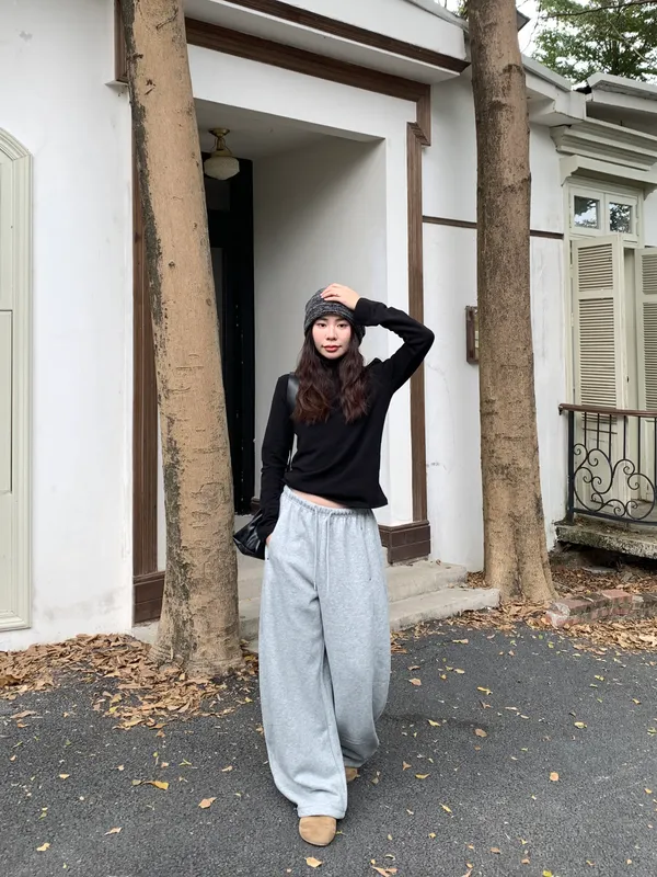 大推!刷絨款繭型下可縮口棉寬褲(內絨布,棉65%)
