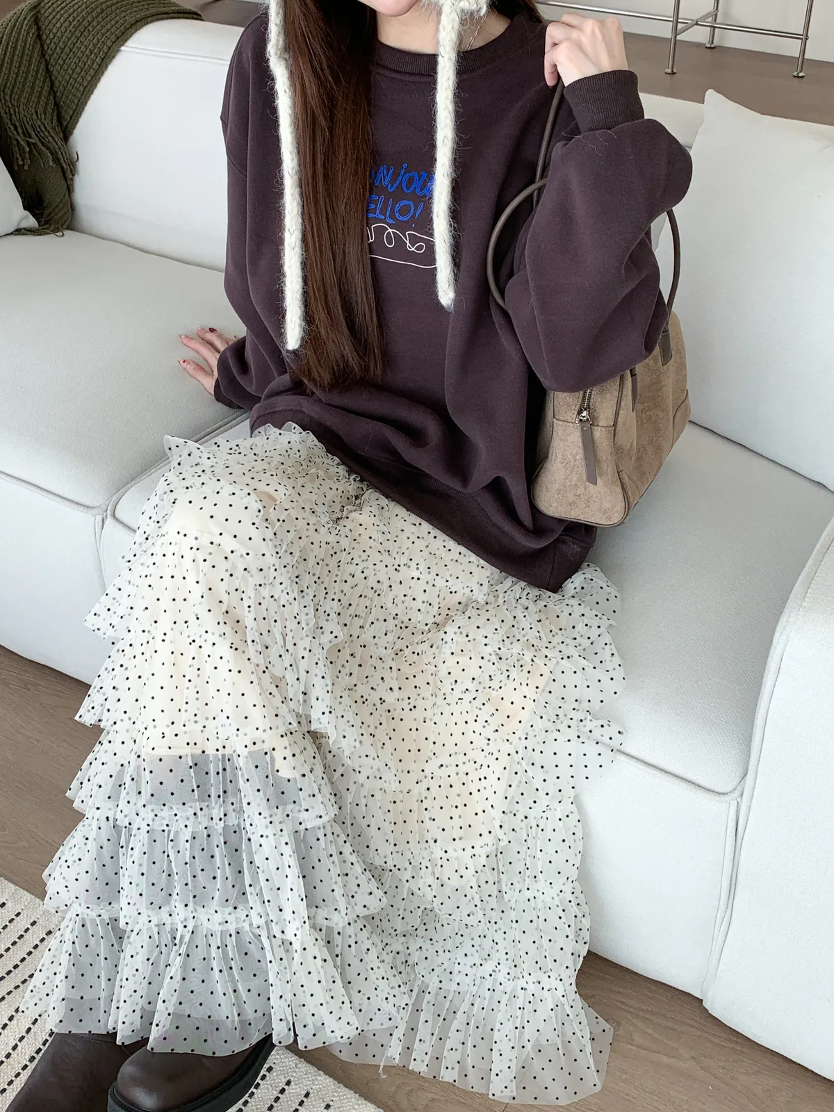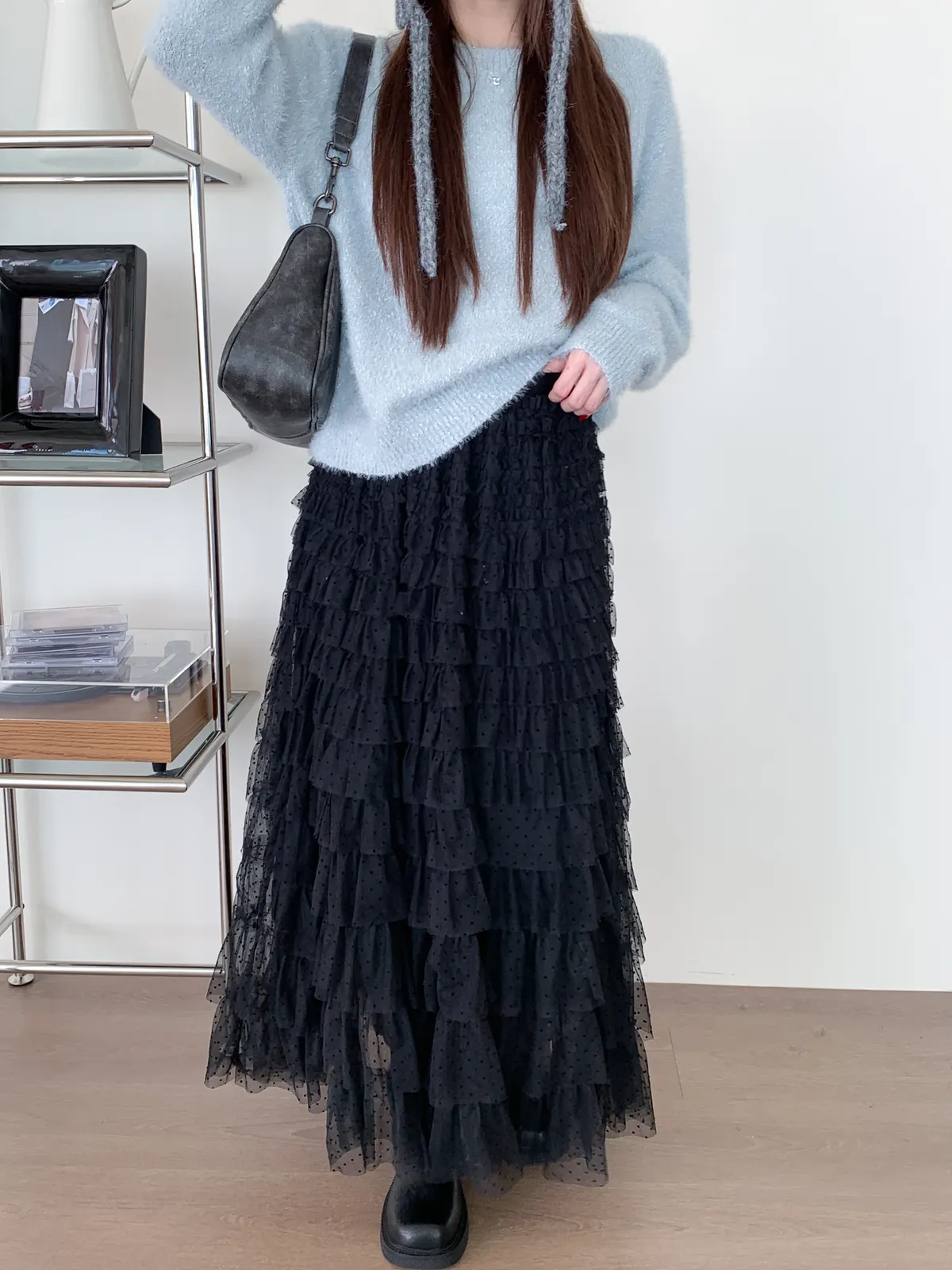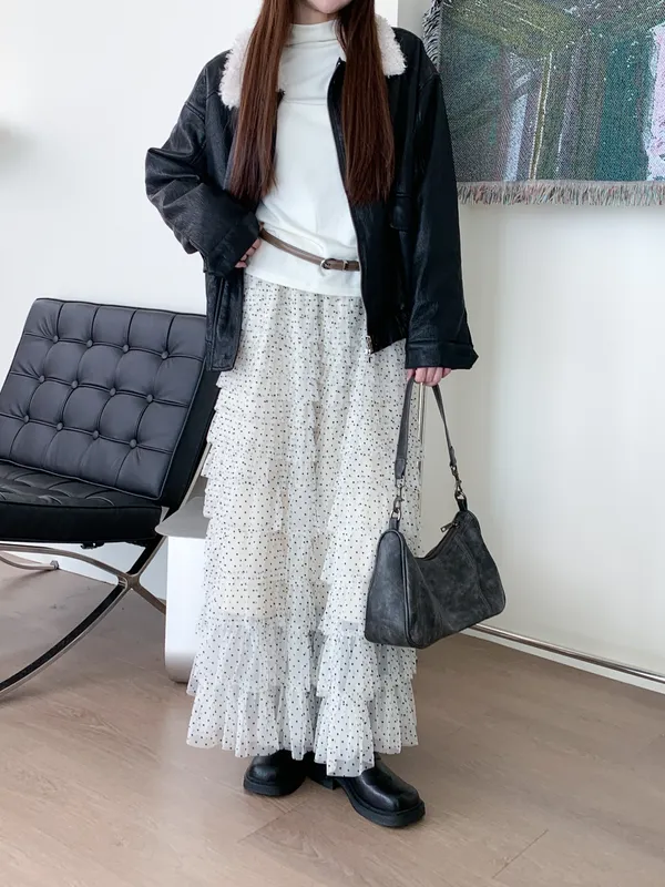 法式復古|波點蛋糕紗長裙