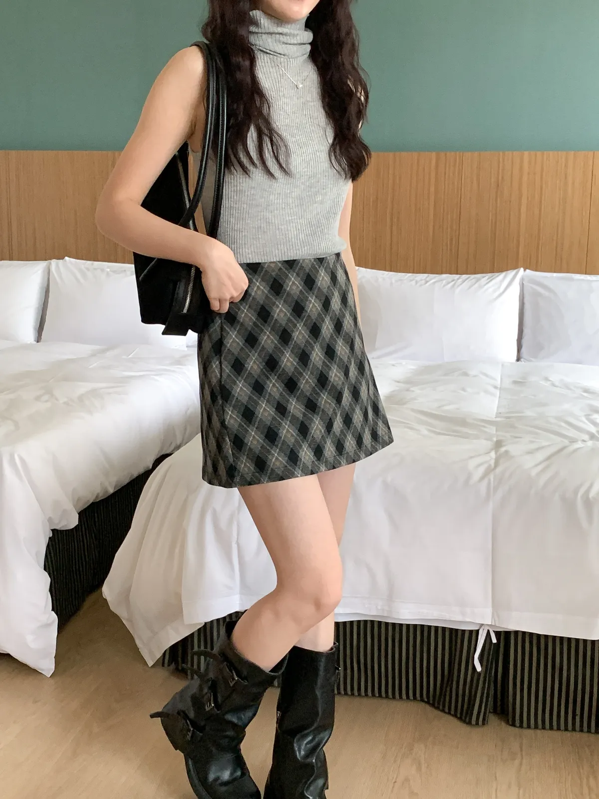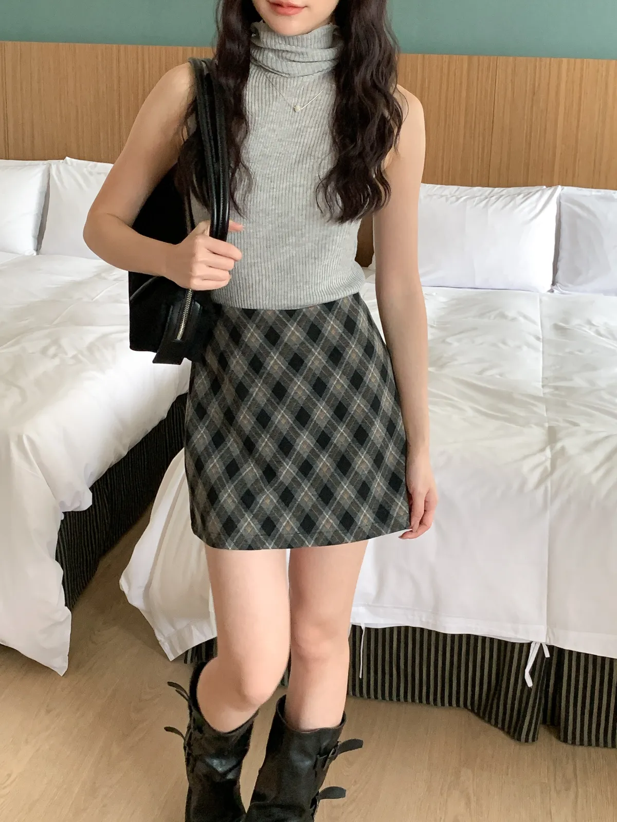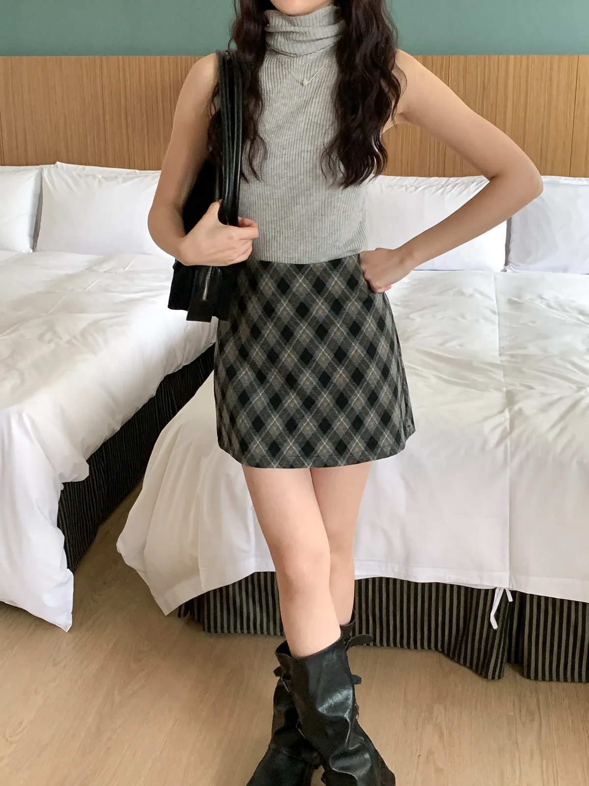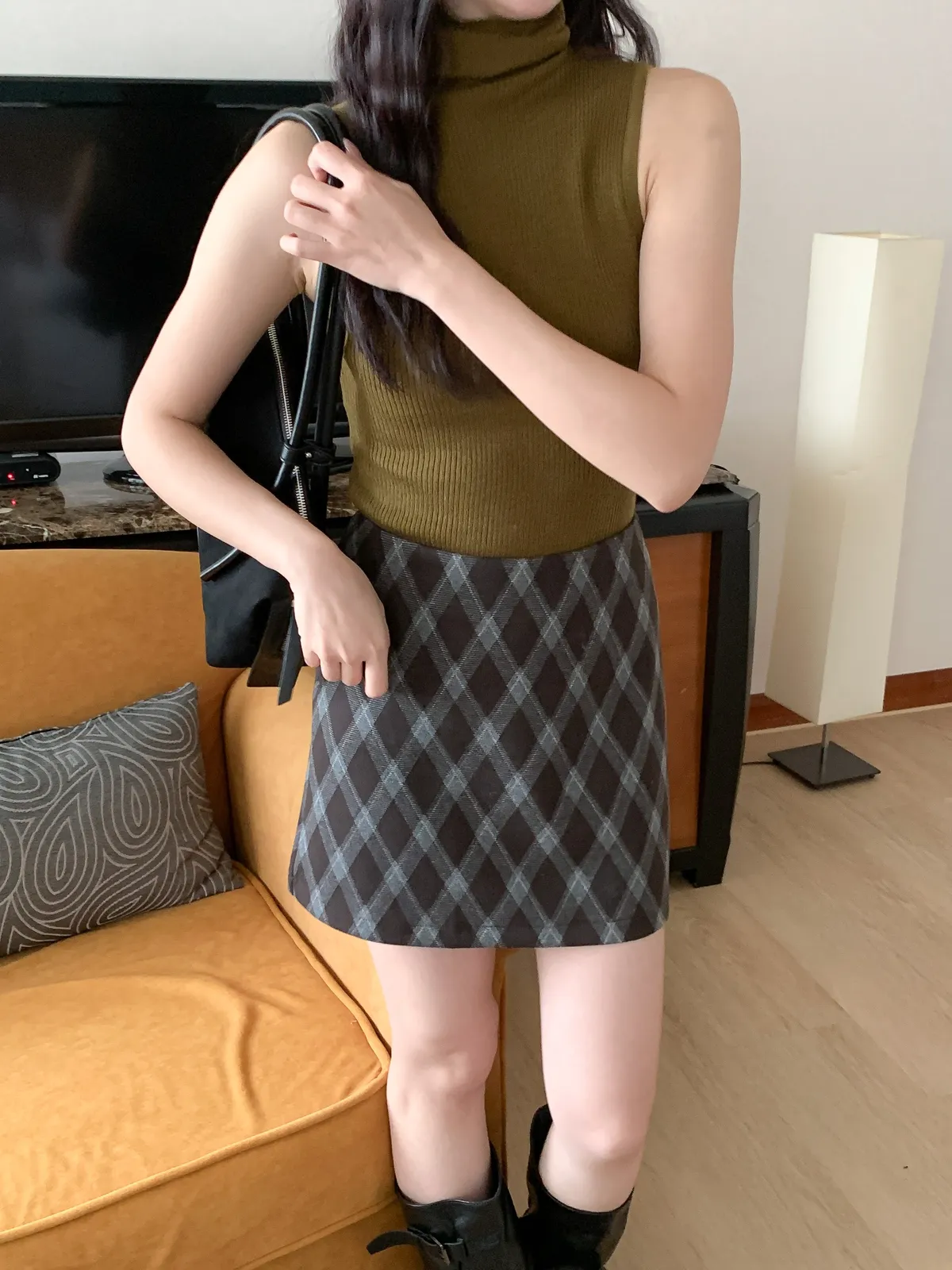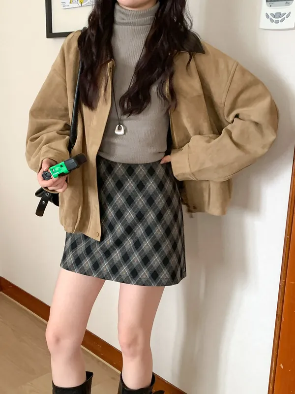 復古菱格紋短裙