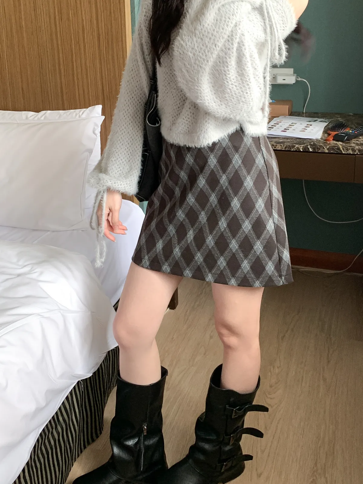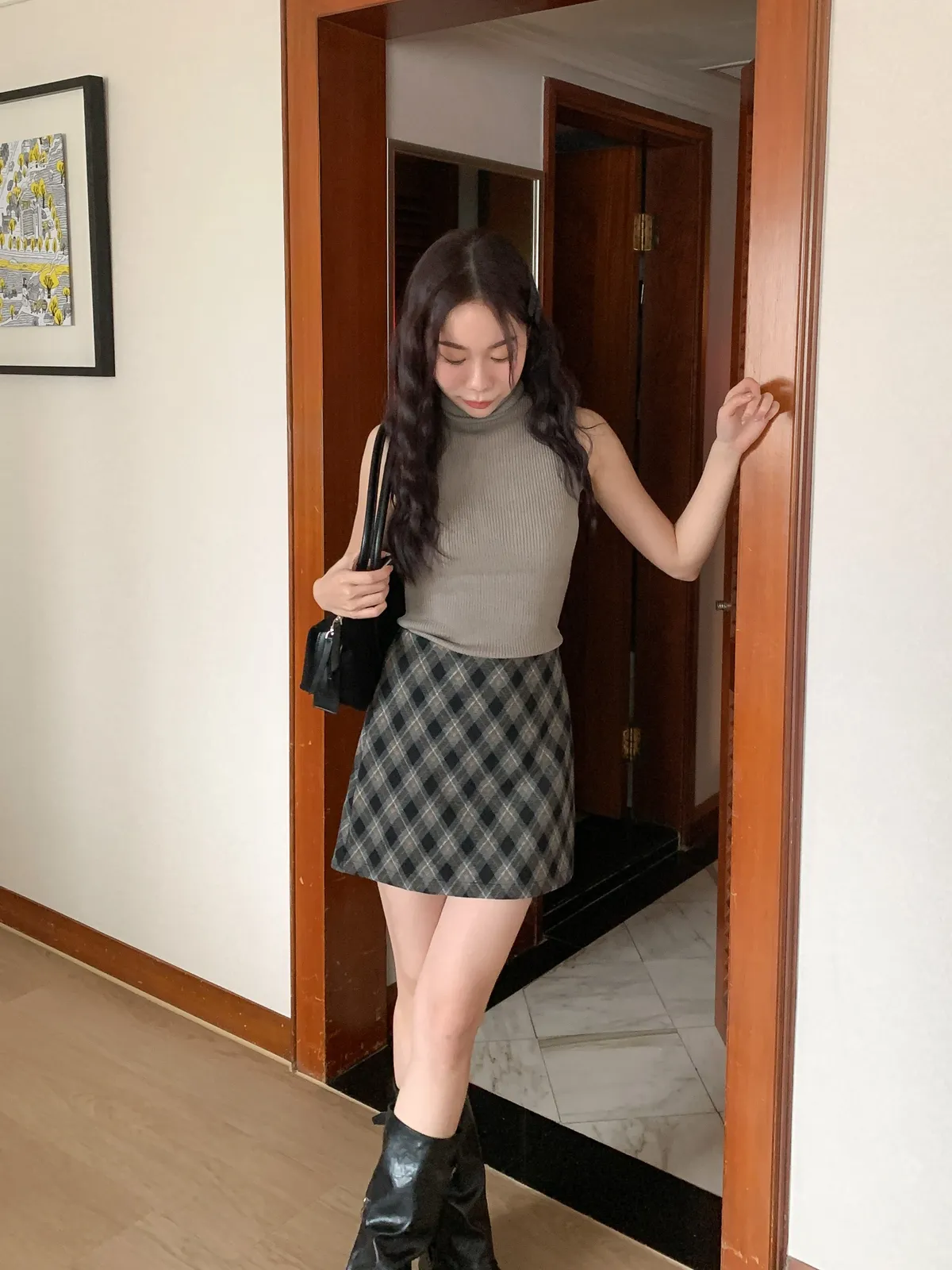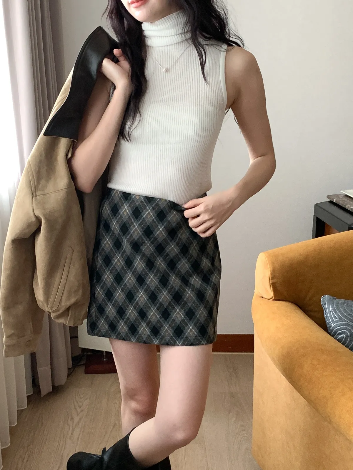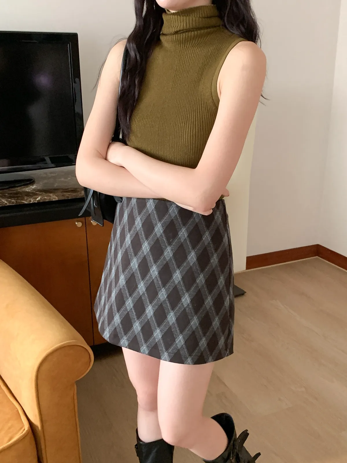 復古菱格紋短裙