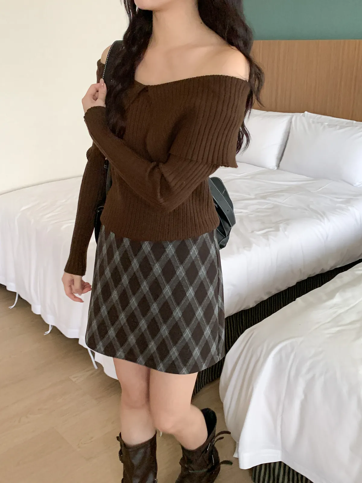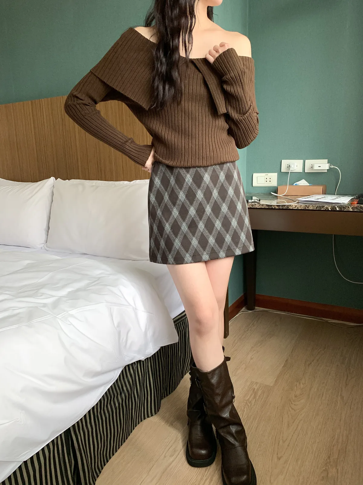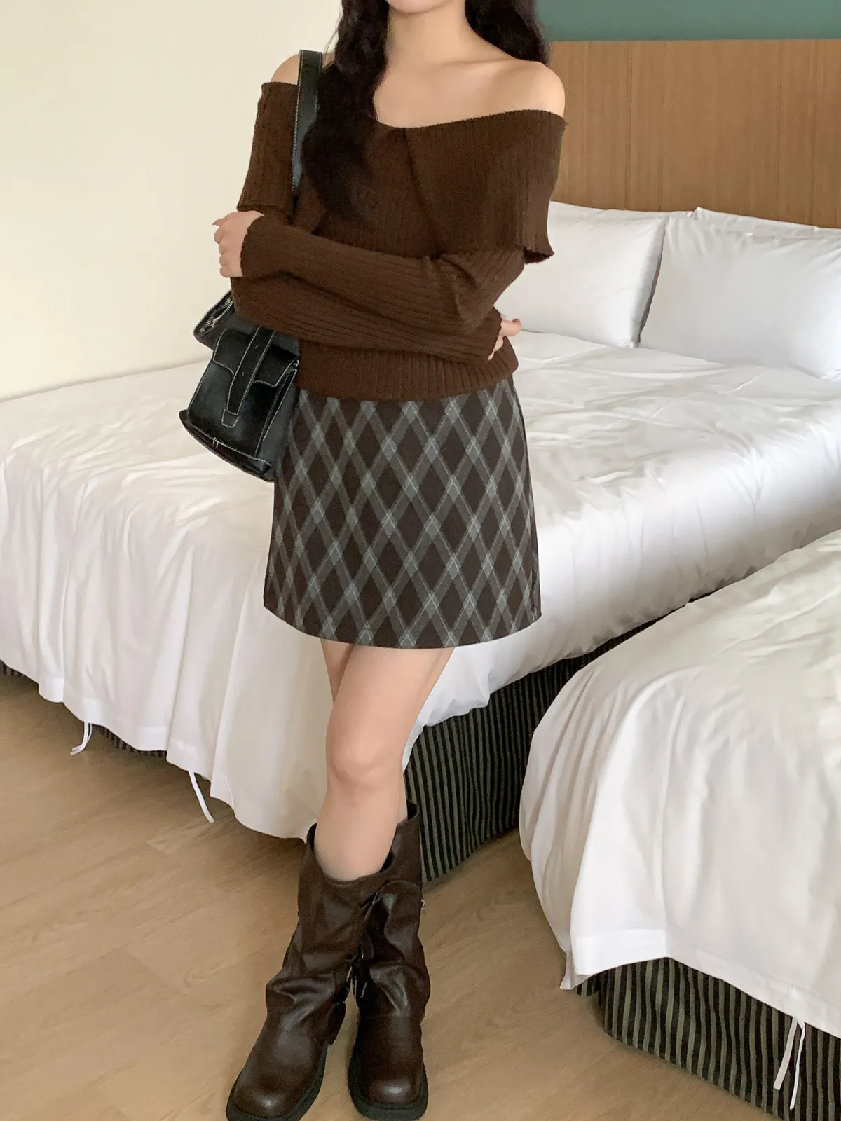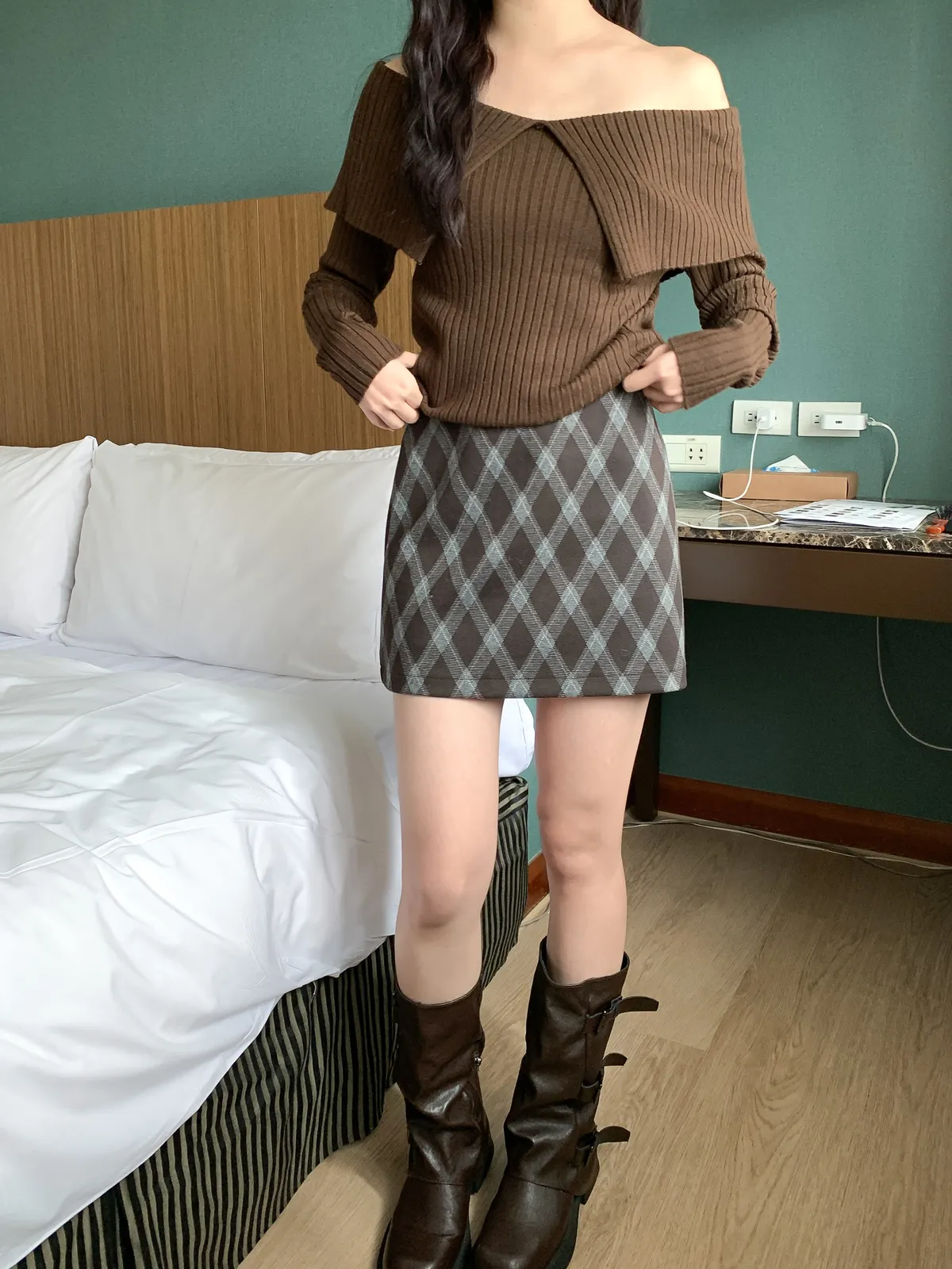 復古菱格紋短裙