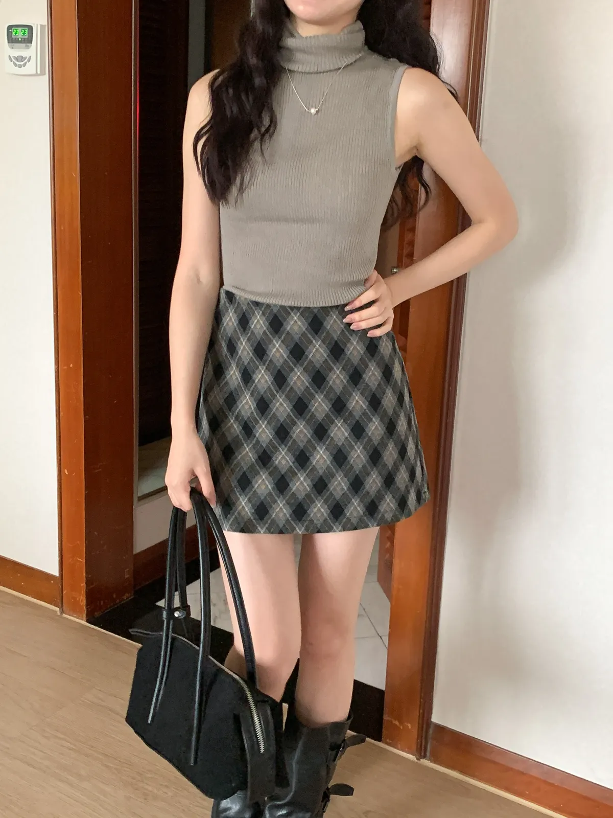 一秒戀愛!復古菱格紋短裙