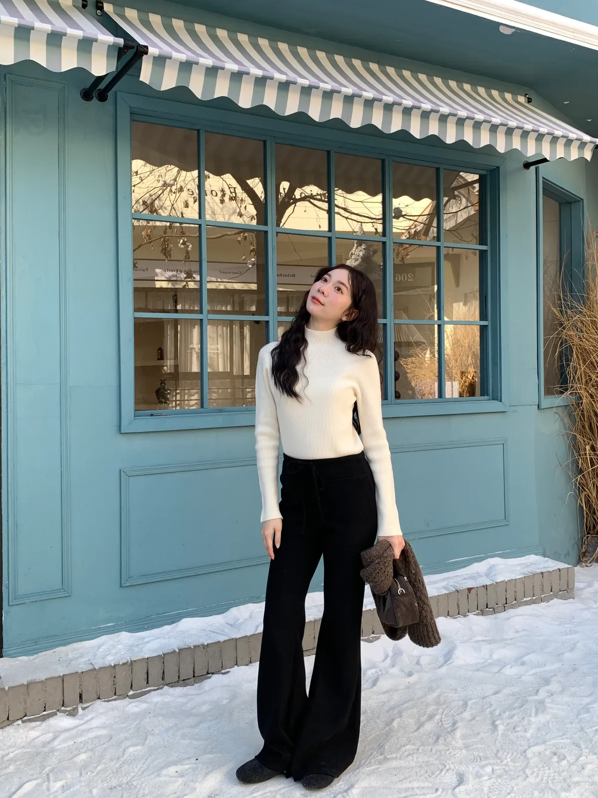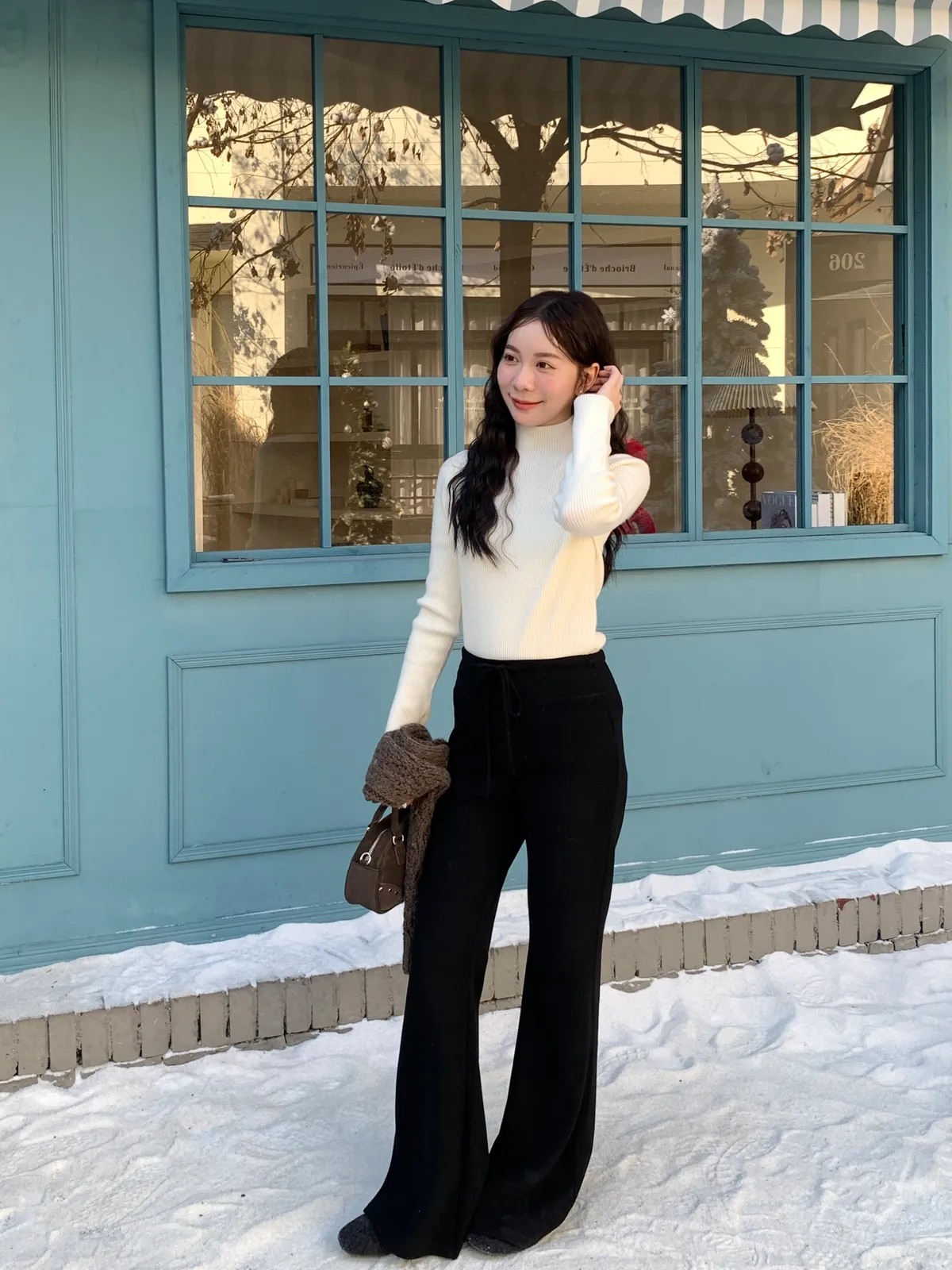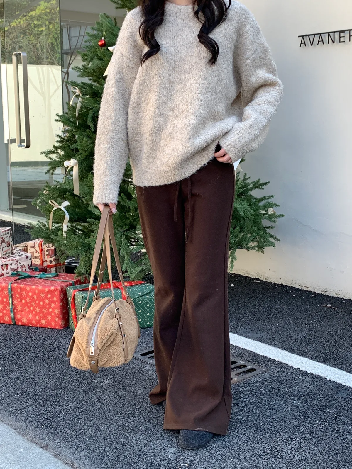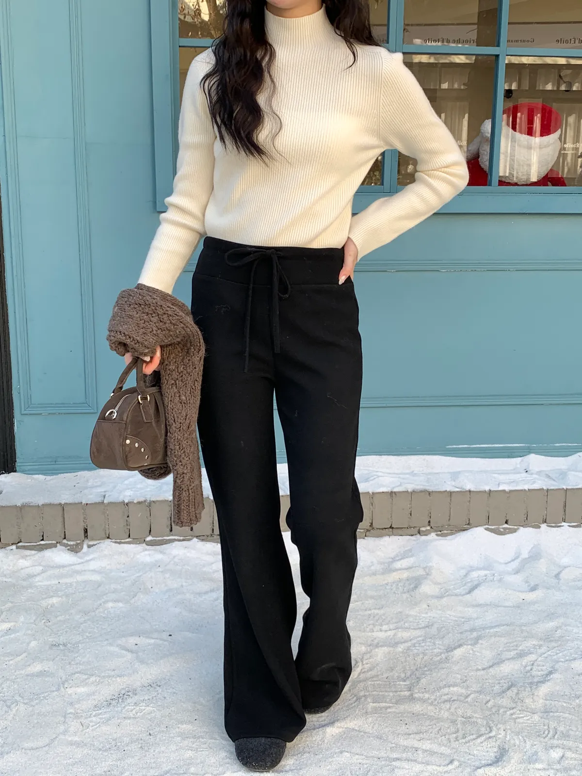 拉長比例/冬季必收羊絨瘦瘦褲!
