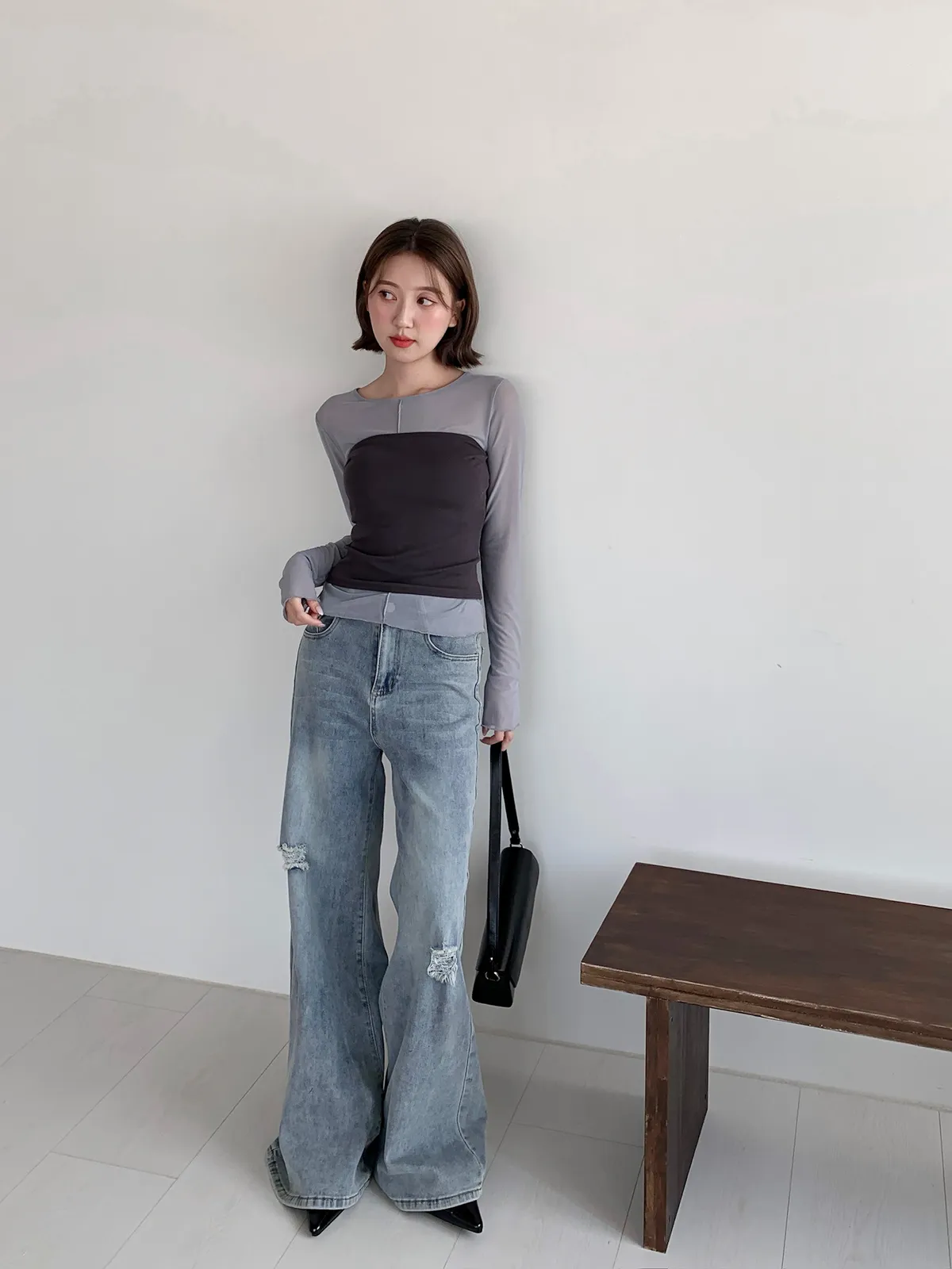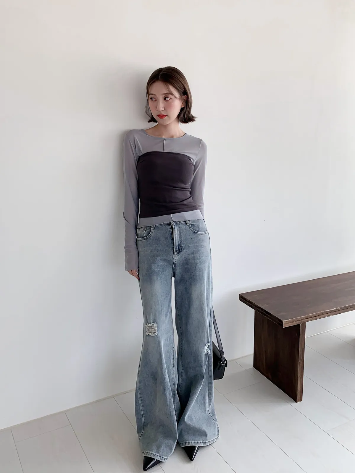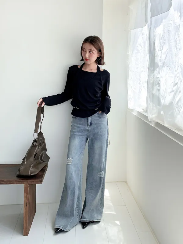 很難不愛上!刷破喇叭牛仔長褲