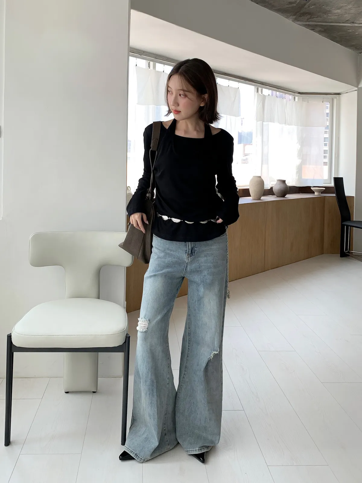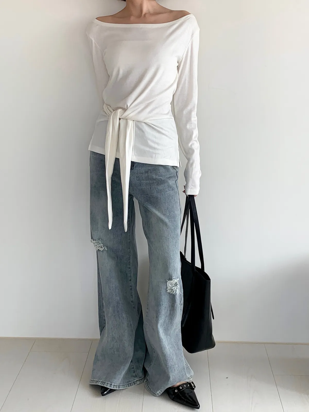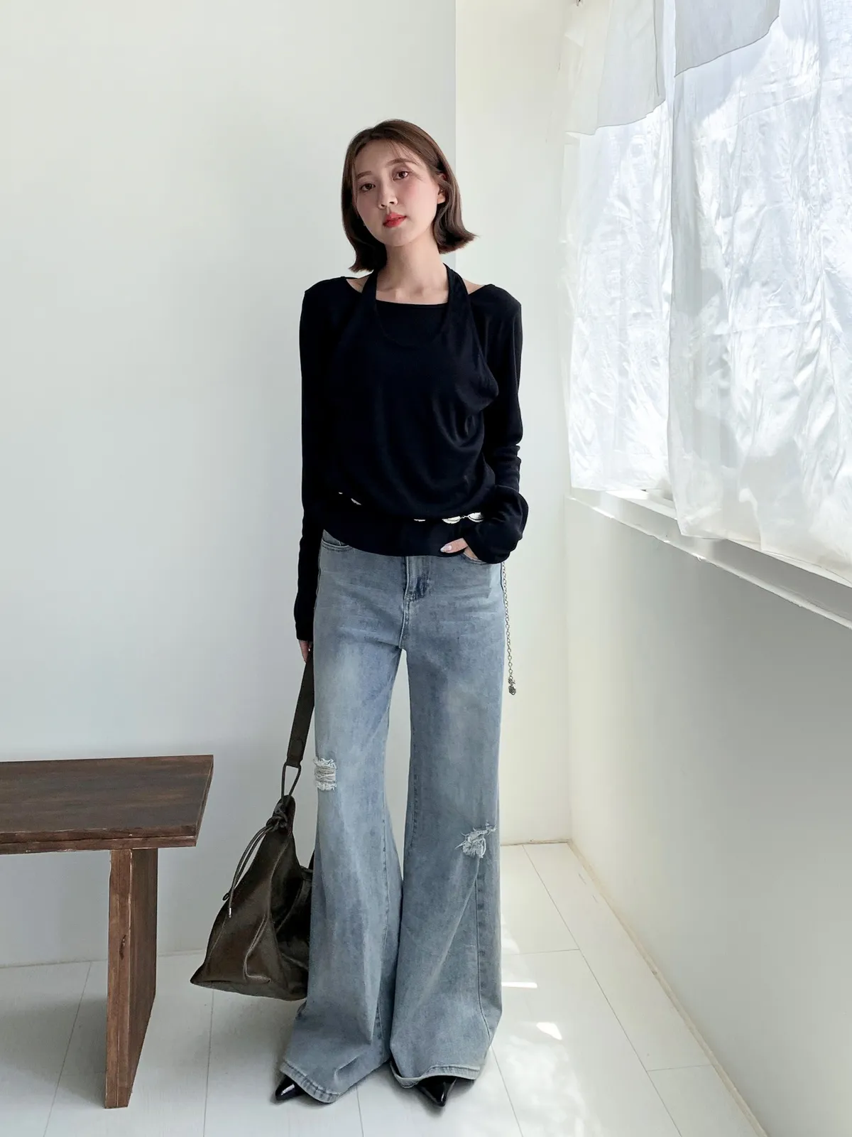 很難不愛上!刷破喇叭牛仔長褲