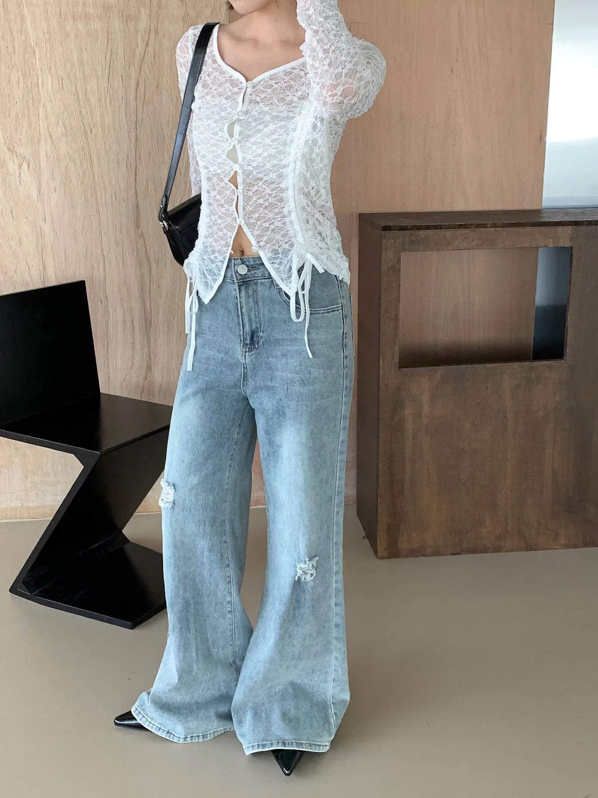 微喇叭設計很顯精神 刷白及刷破造型增添隨性感