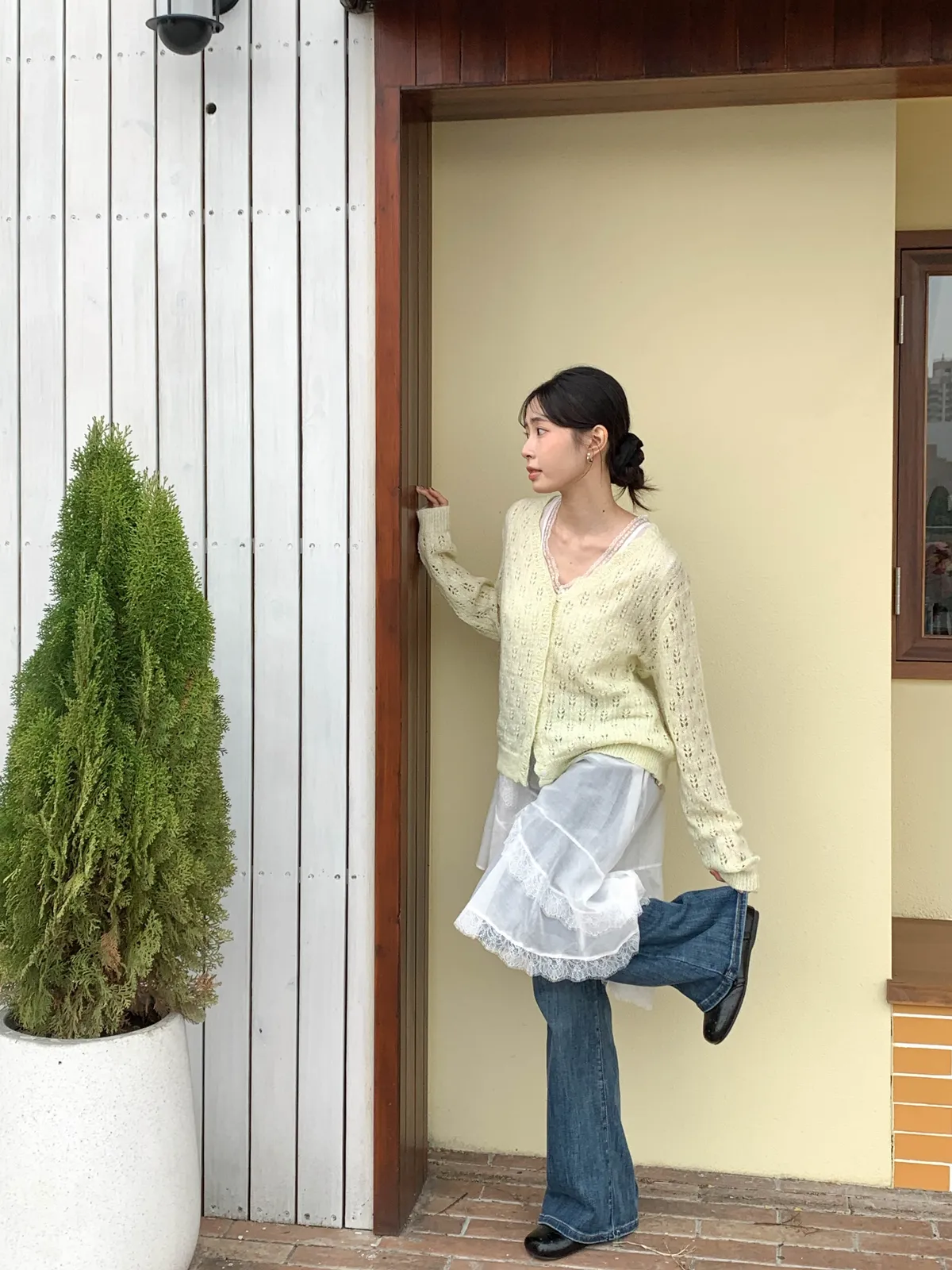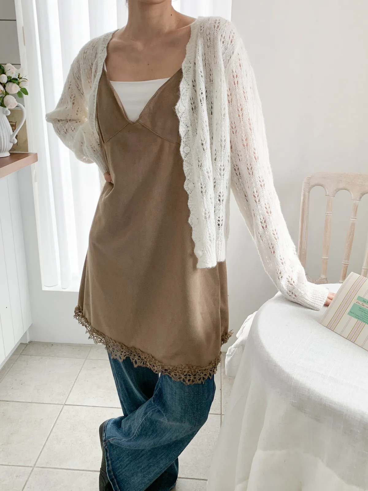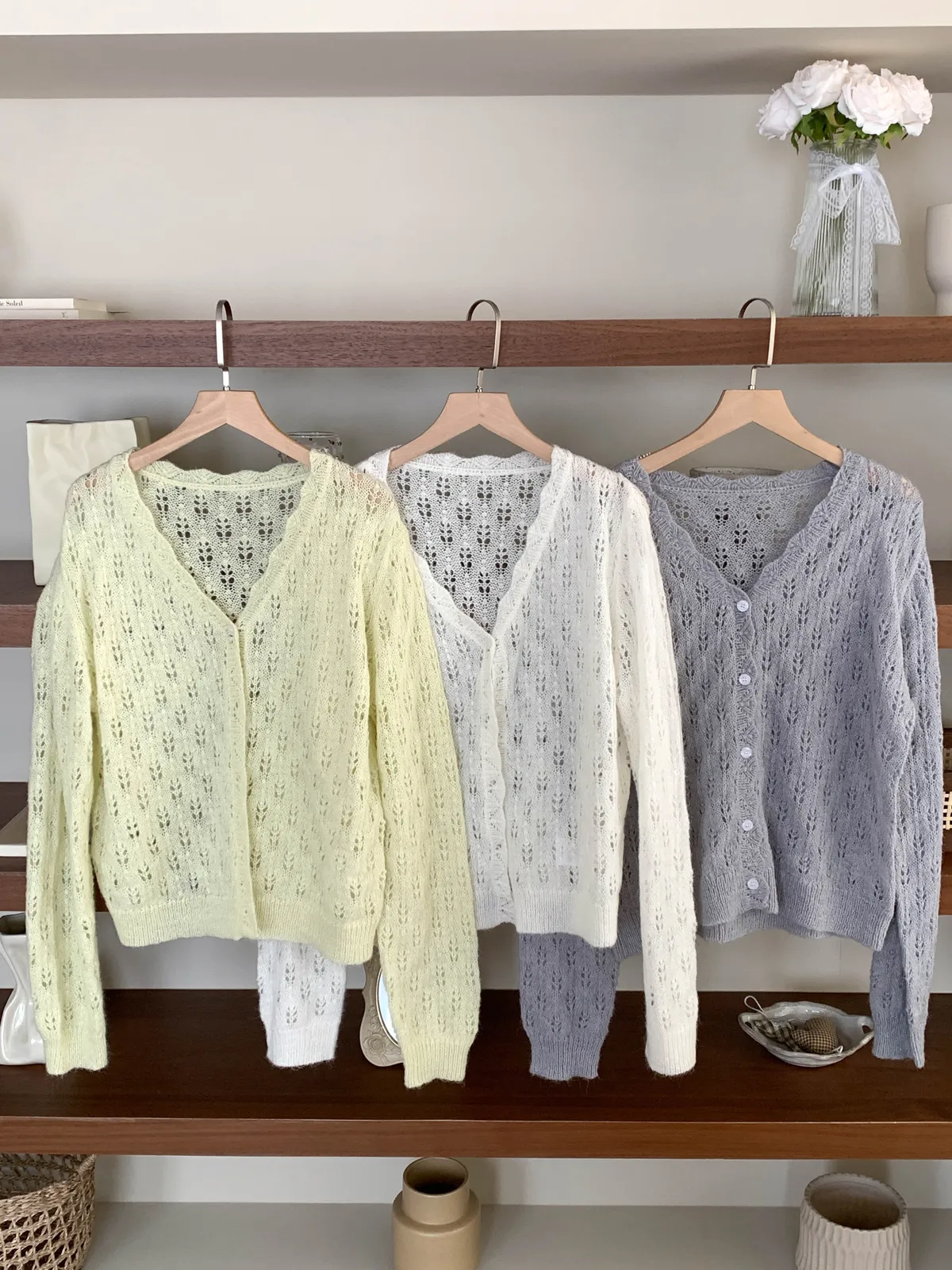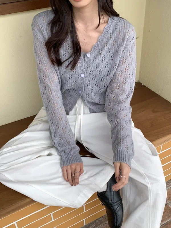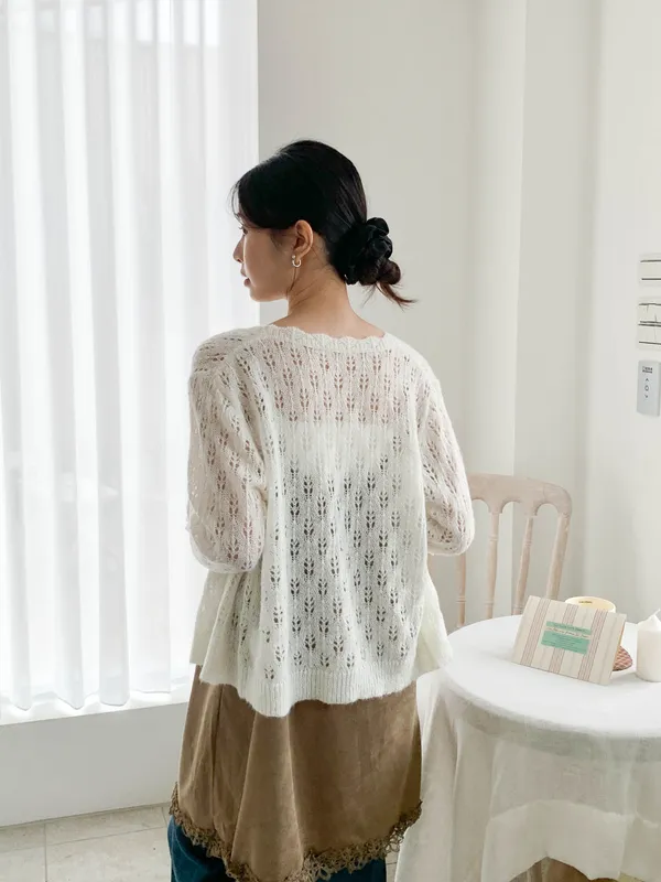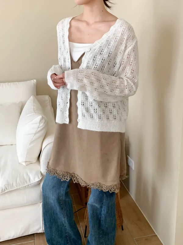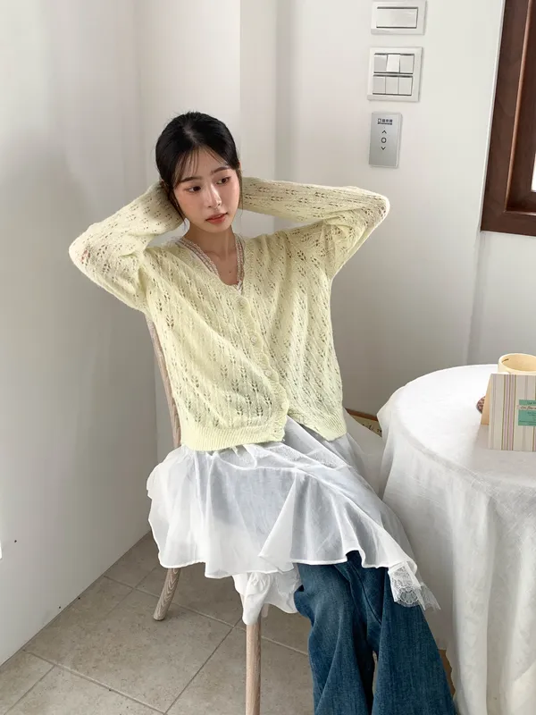 春天來了!緹花摟空針織開衫