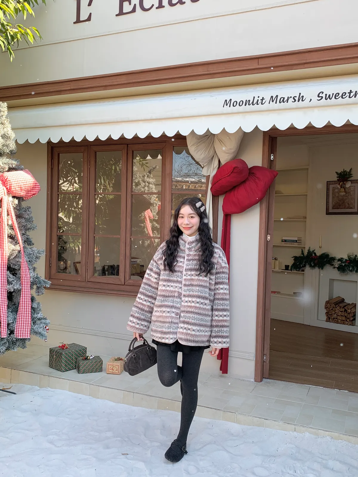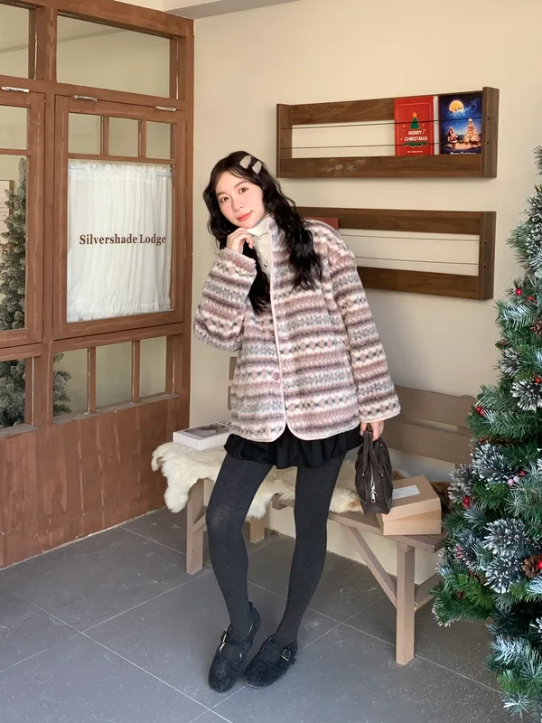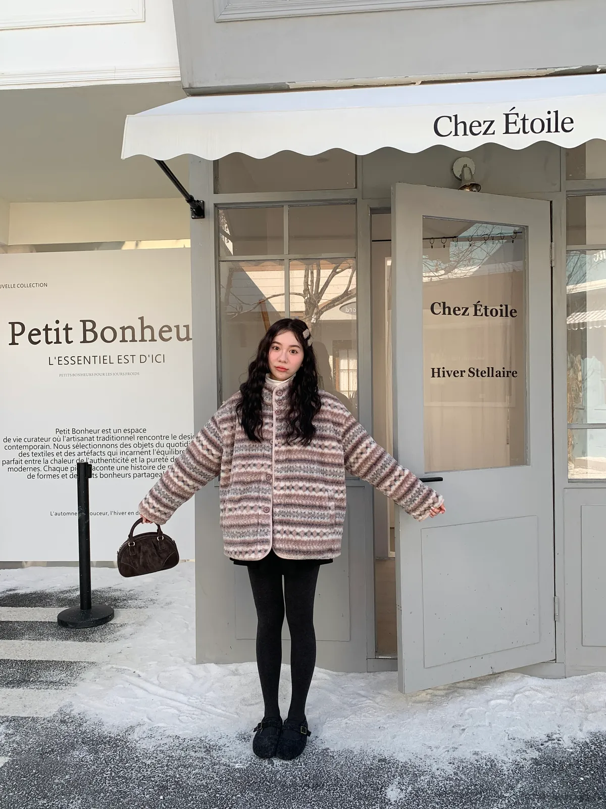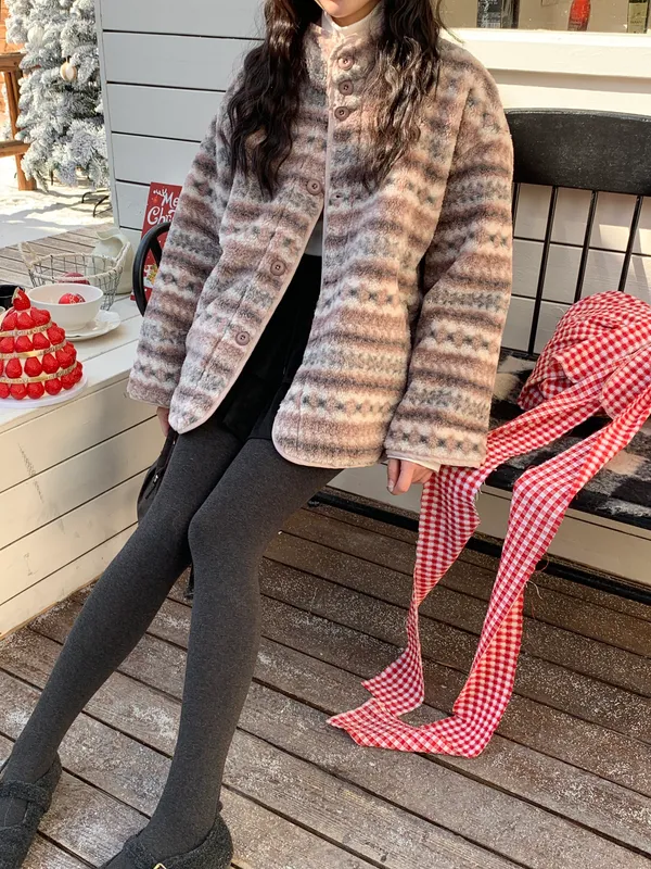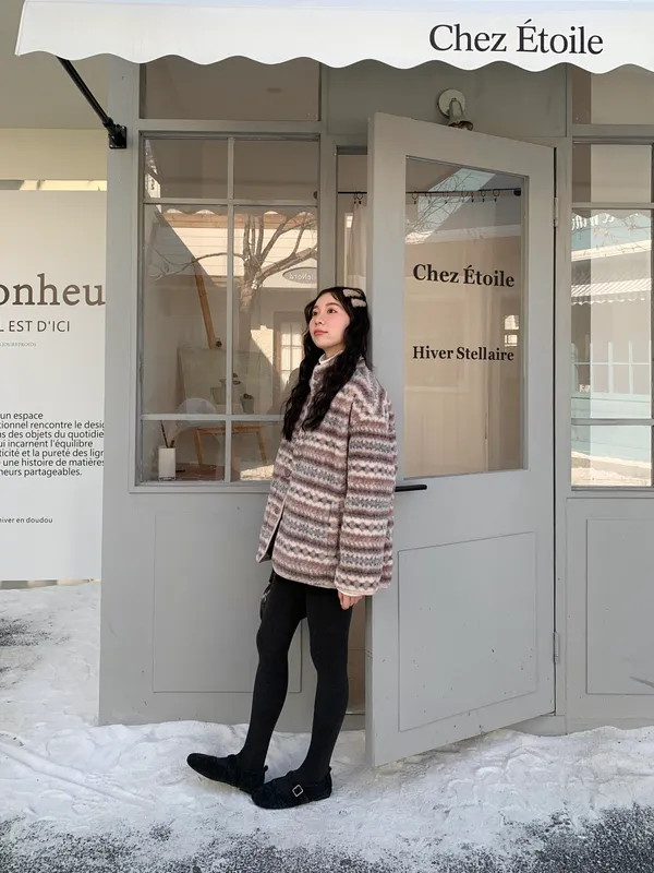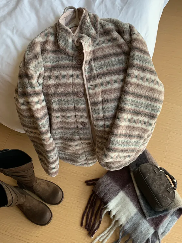 草莓煉乳/費爾島羊羔絨兩面穿外套