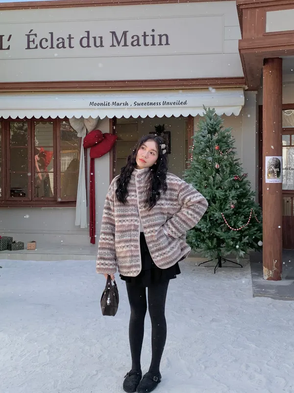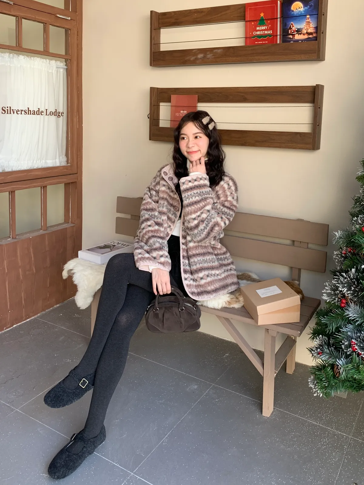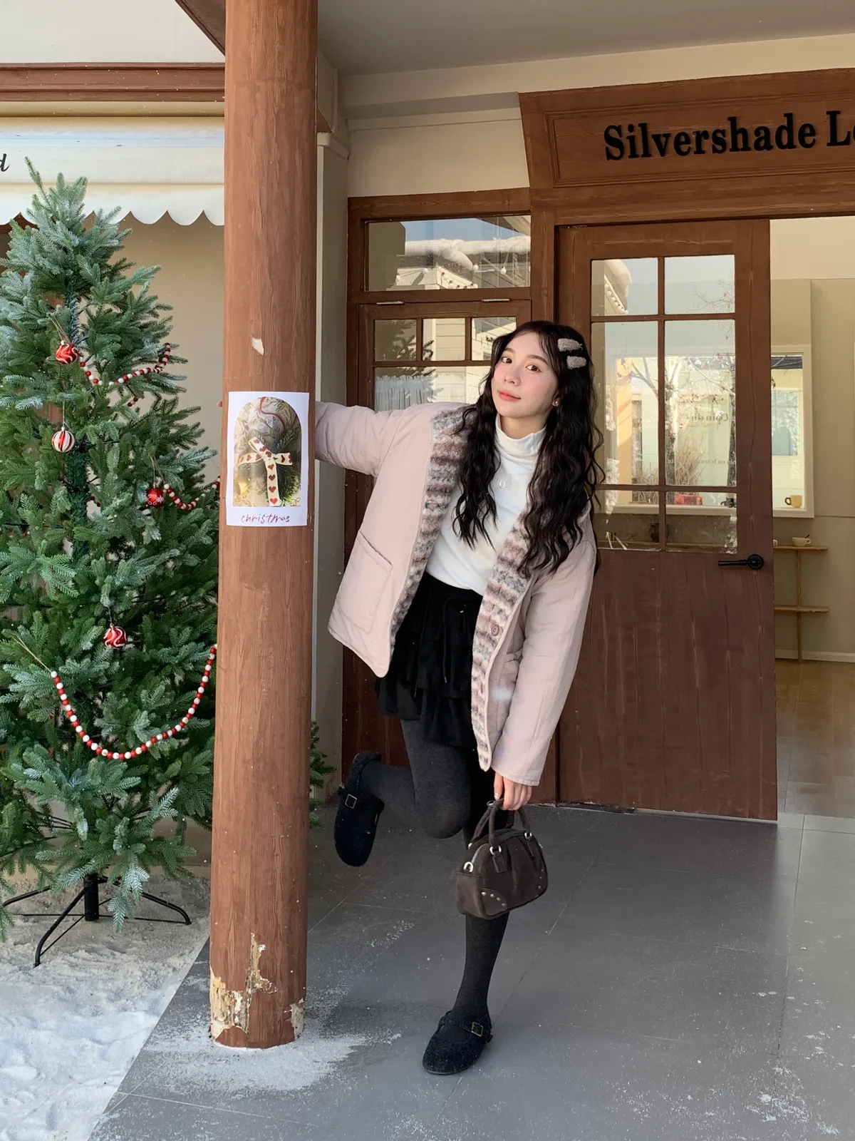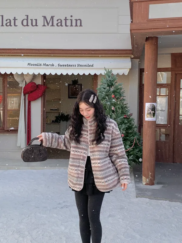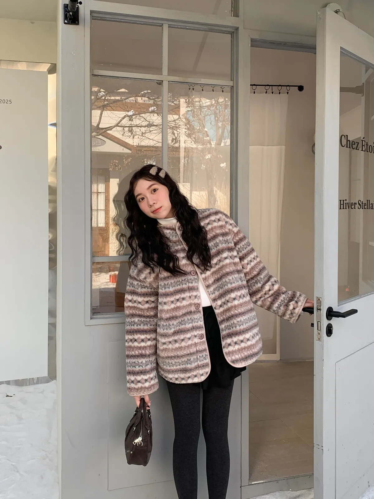 草莓煉乳/費爾島羊羔絨兩面穿外套