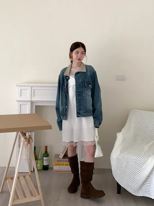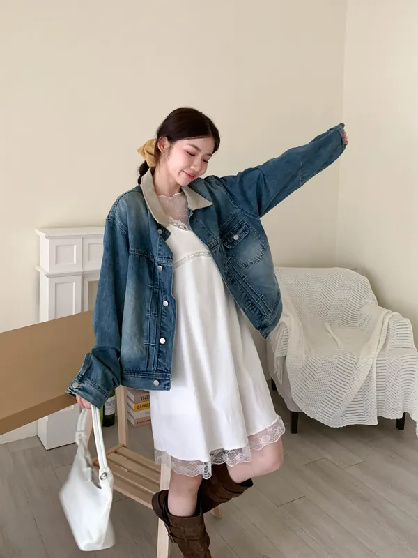 舊時光拼接牛仔外套