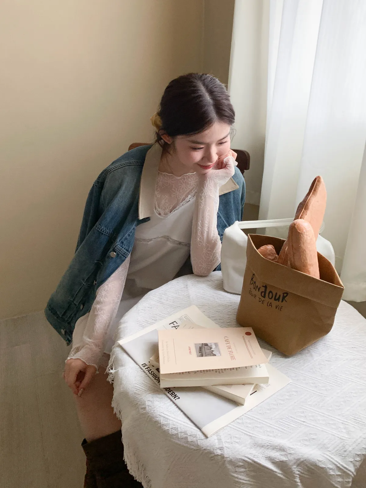 (肩寬與胸寬舒適,袖長剛好落在手腕~牛仔拼接細節豐富整體造型,日常出門或搭配裙裝都很適合)