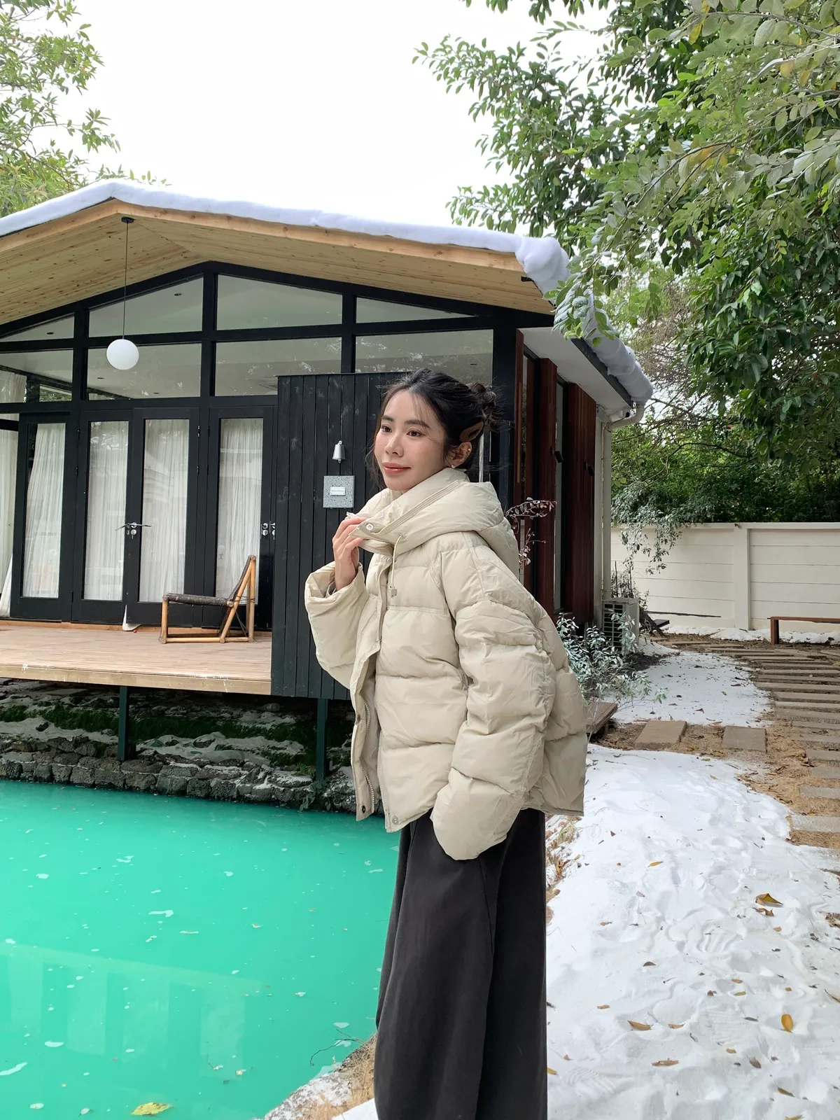極輕暖呼呼!鋪棉連帽鴨絨外套(鴨絨90%)