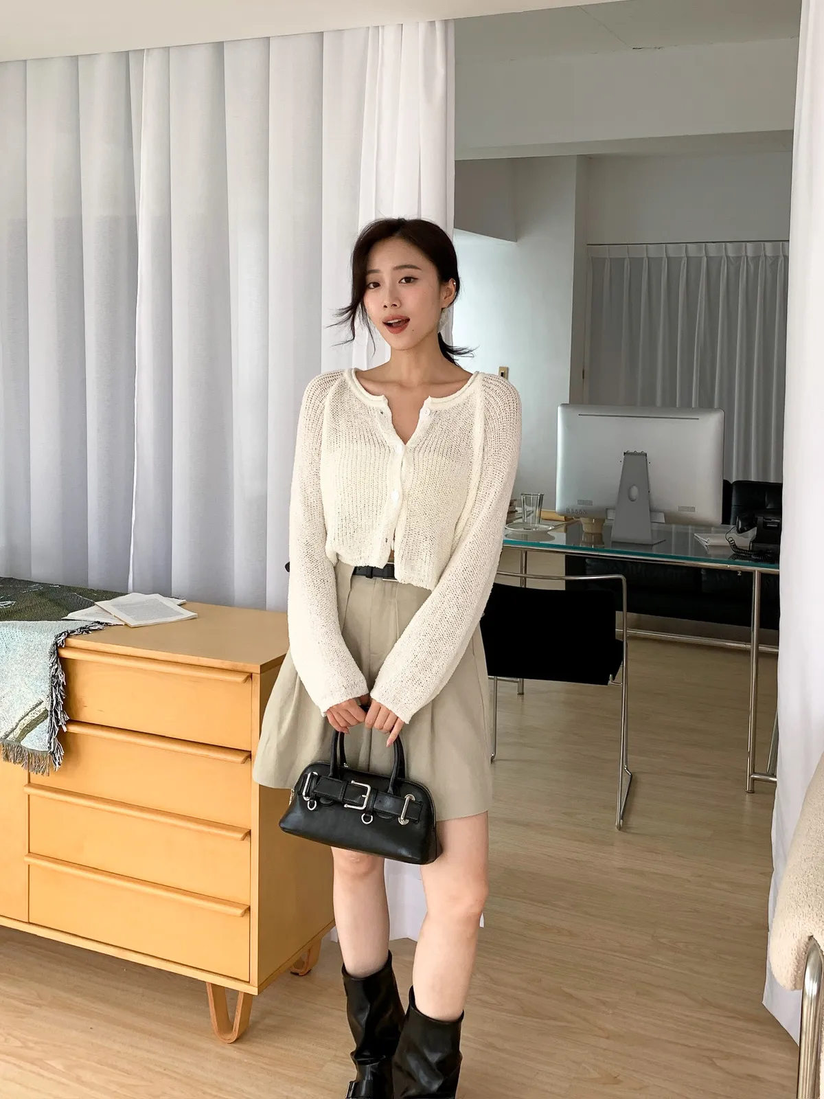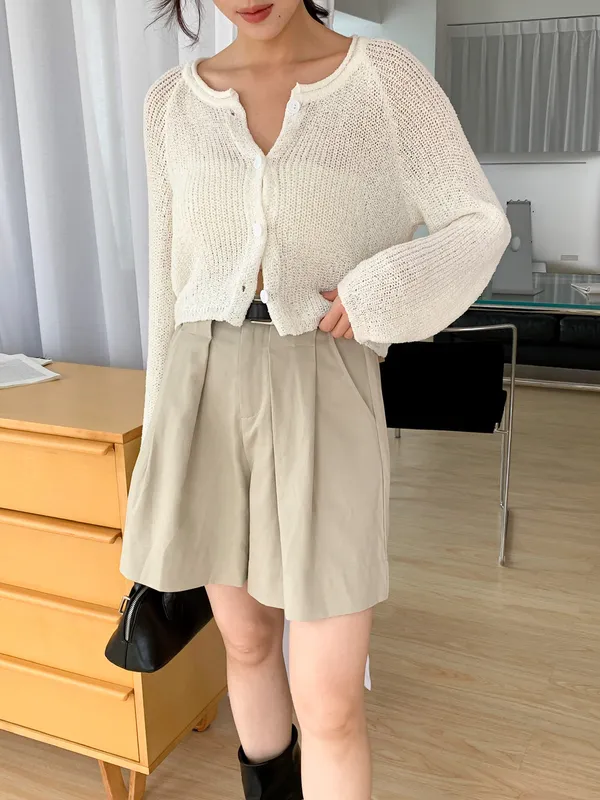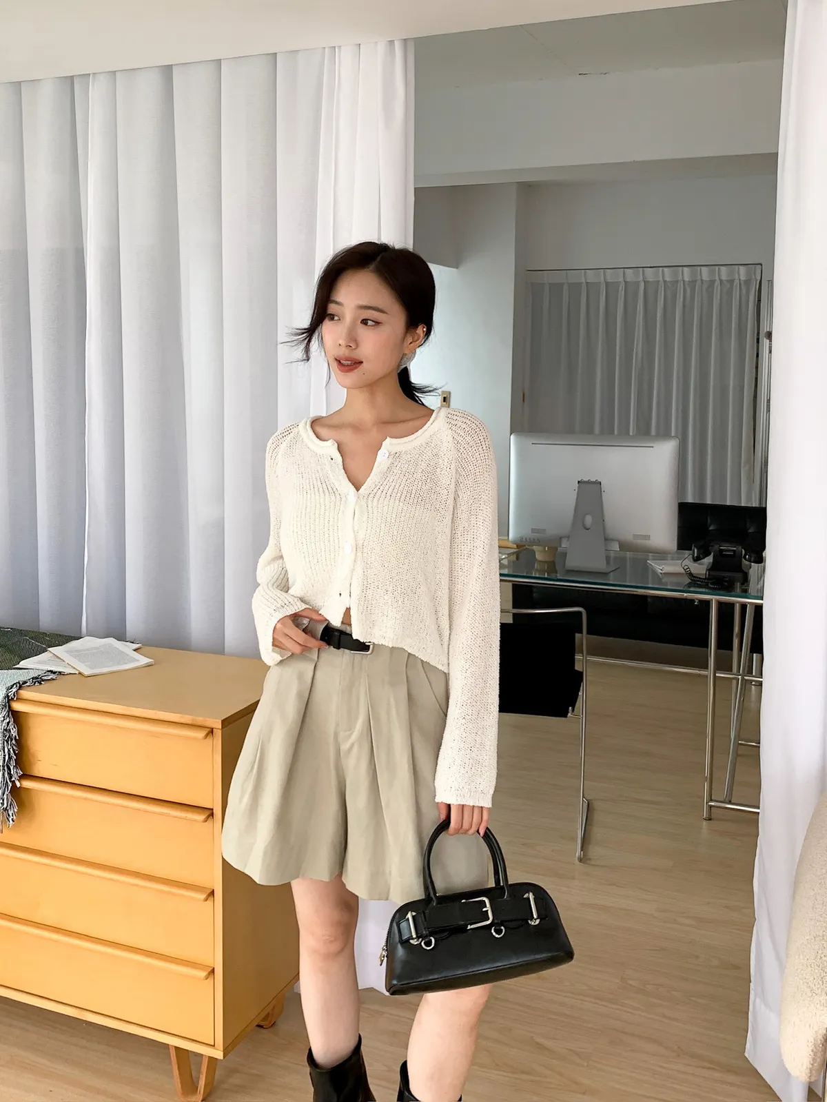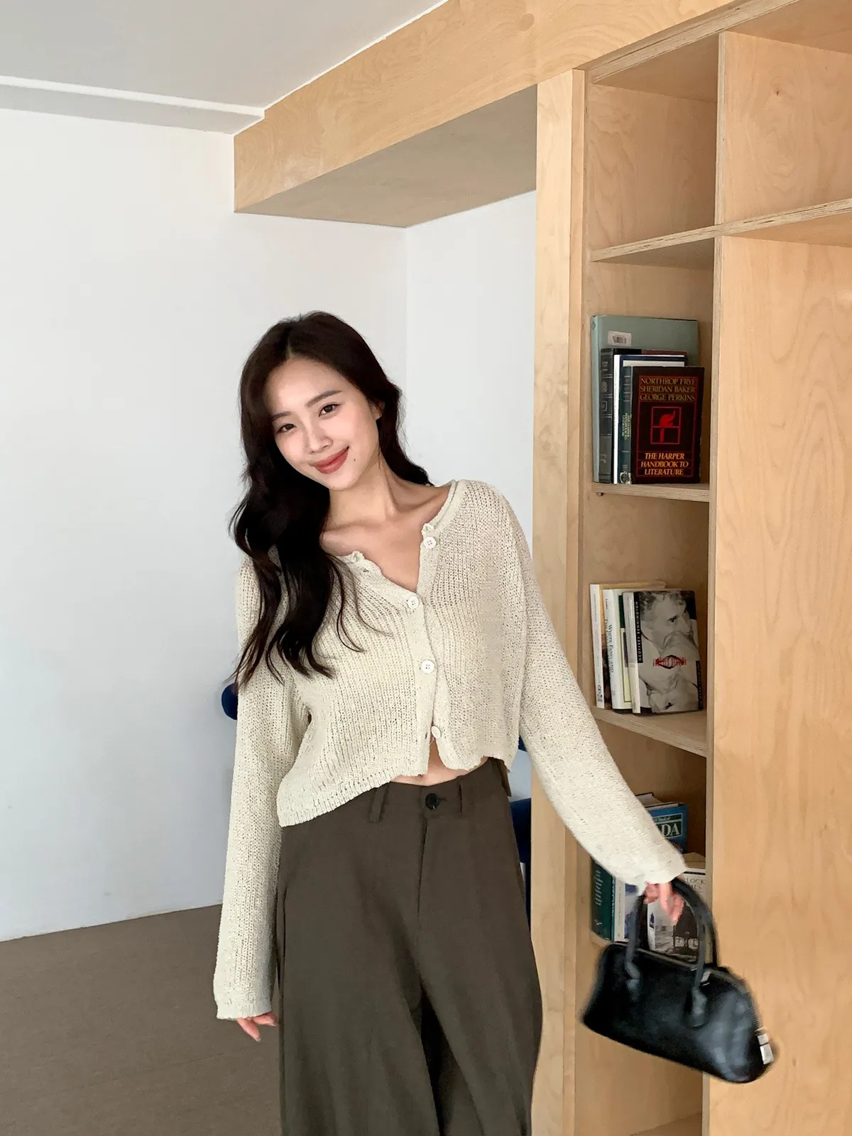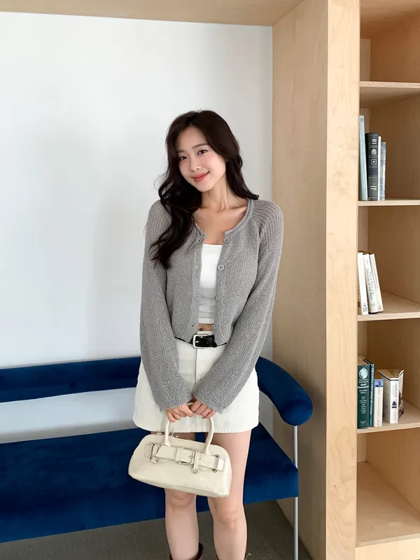 大圓領設計修飾臉型更顯瘦 開襟可扣可敞開 無論搭配背心或洋裝都好看