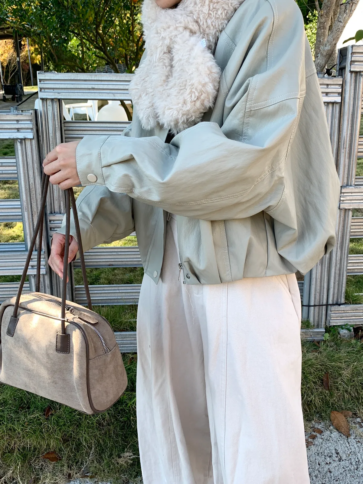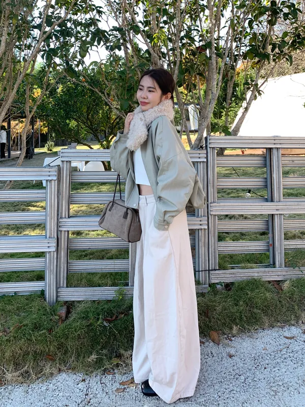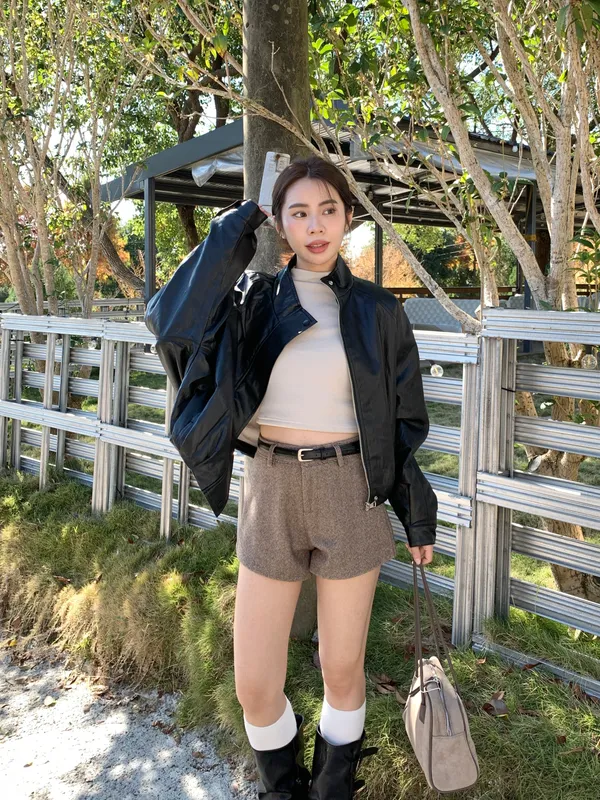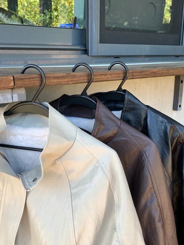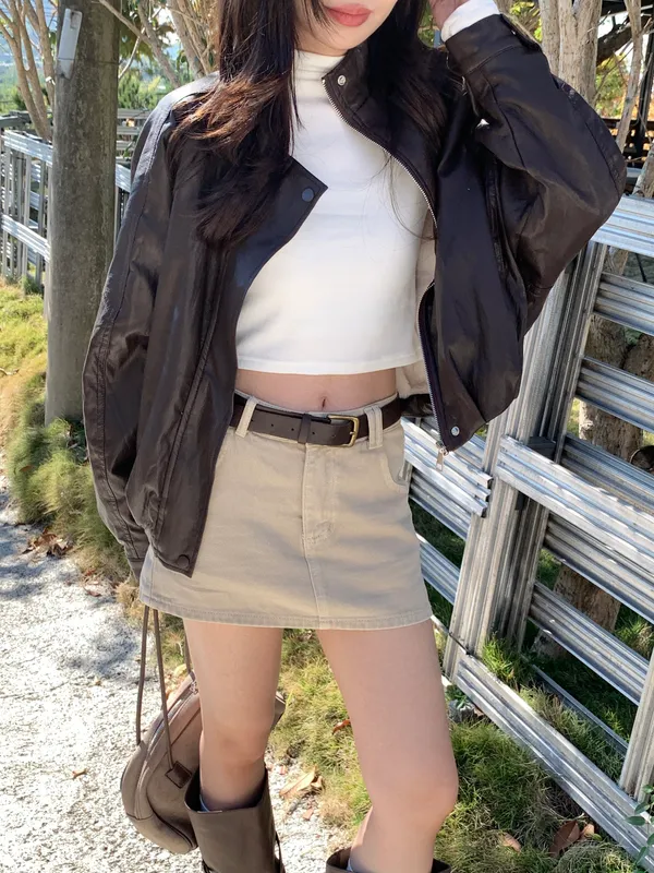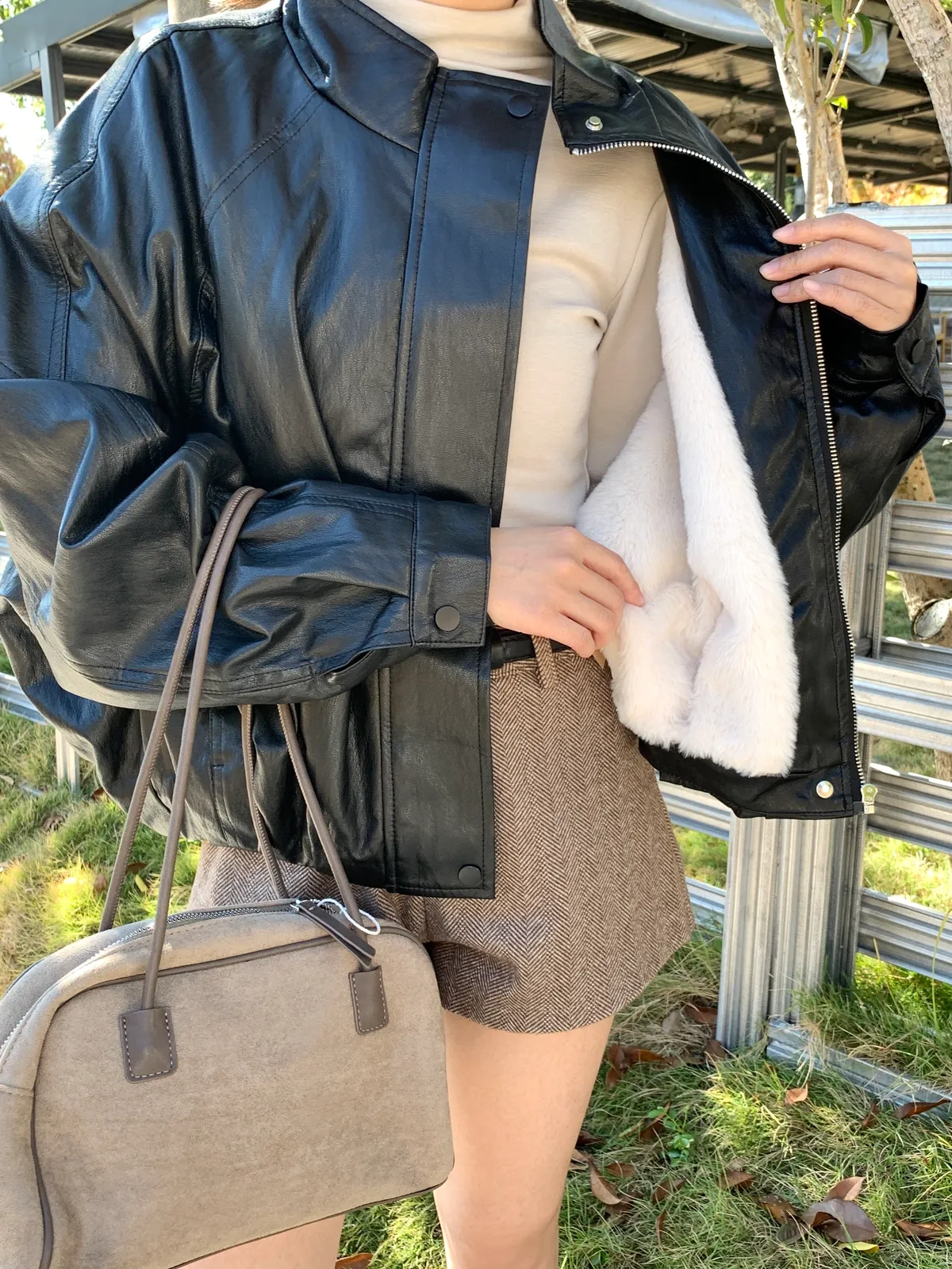 內鋪毛毛經典立領皮革素面外套