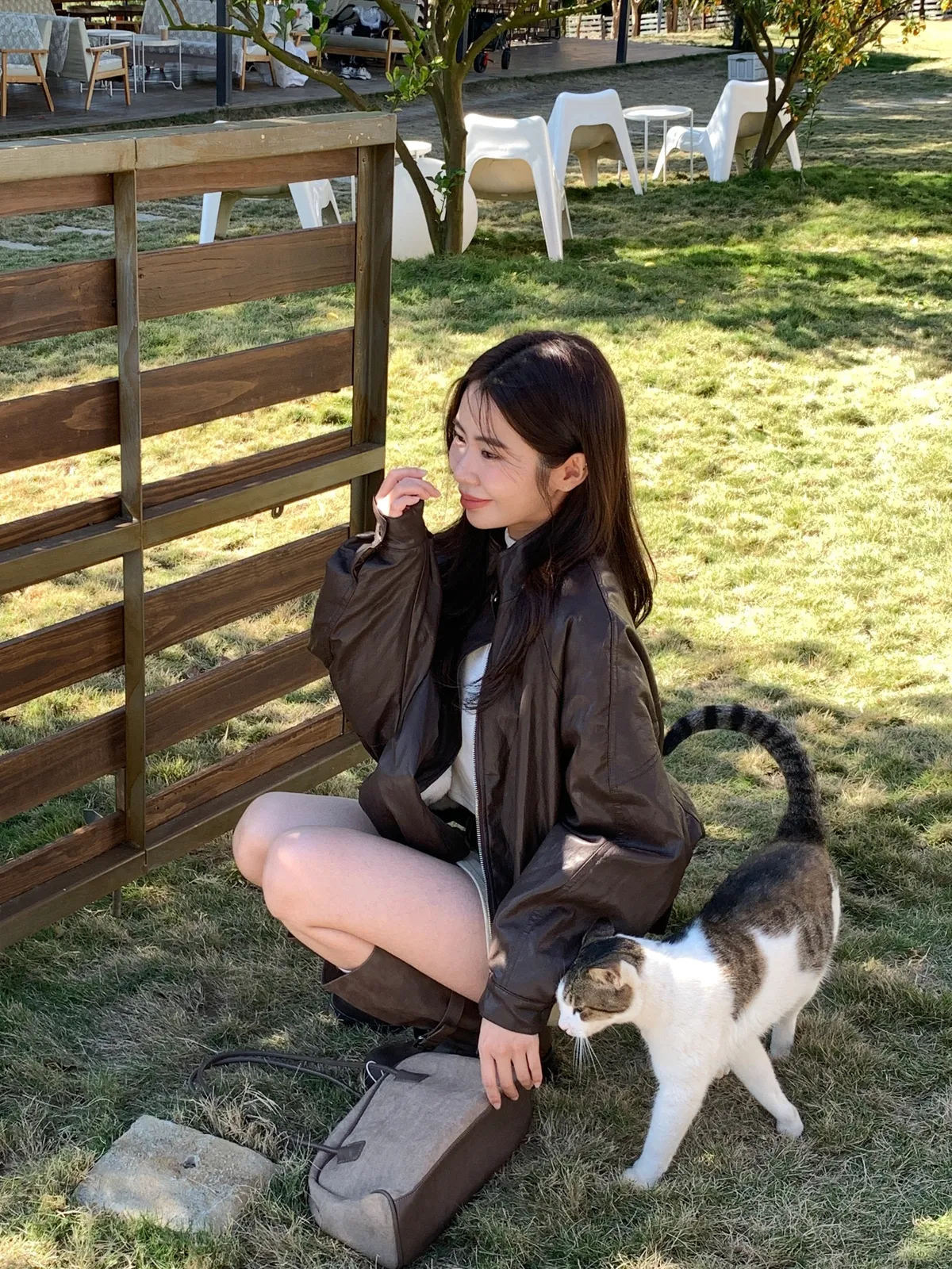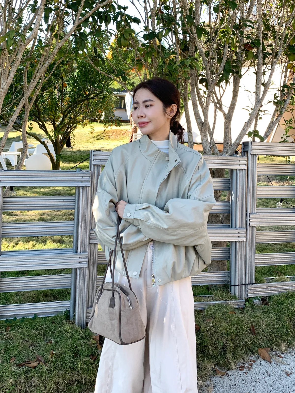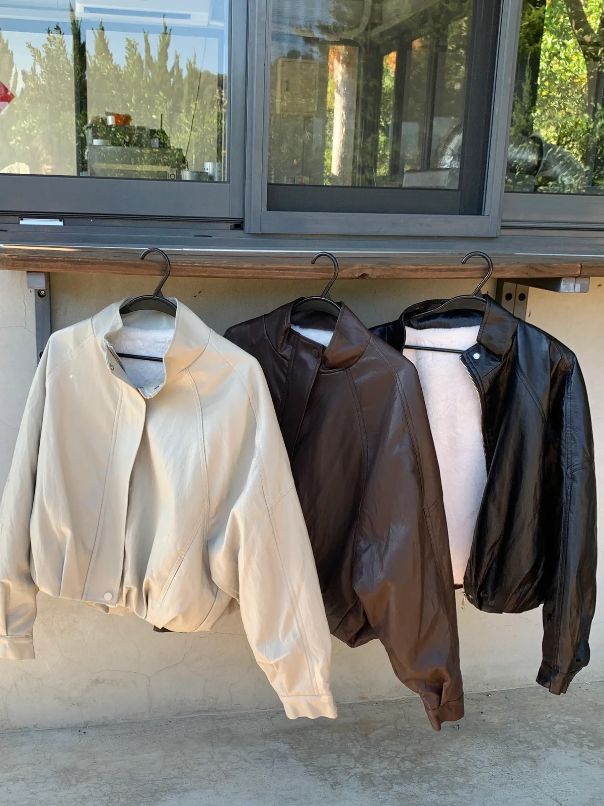 內鋪毛毛經典立領皮革素面外套