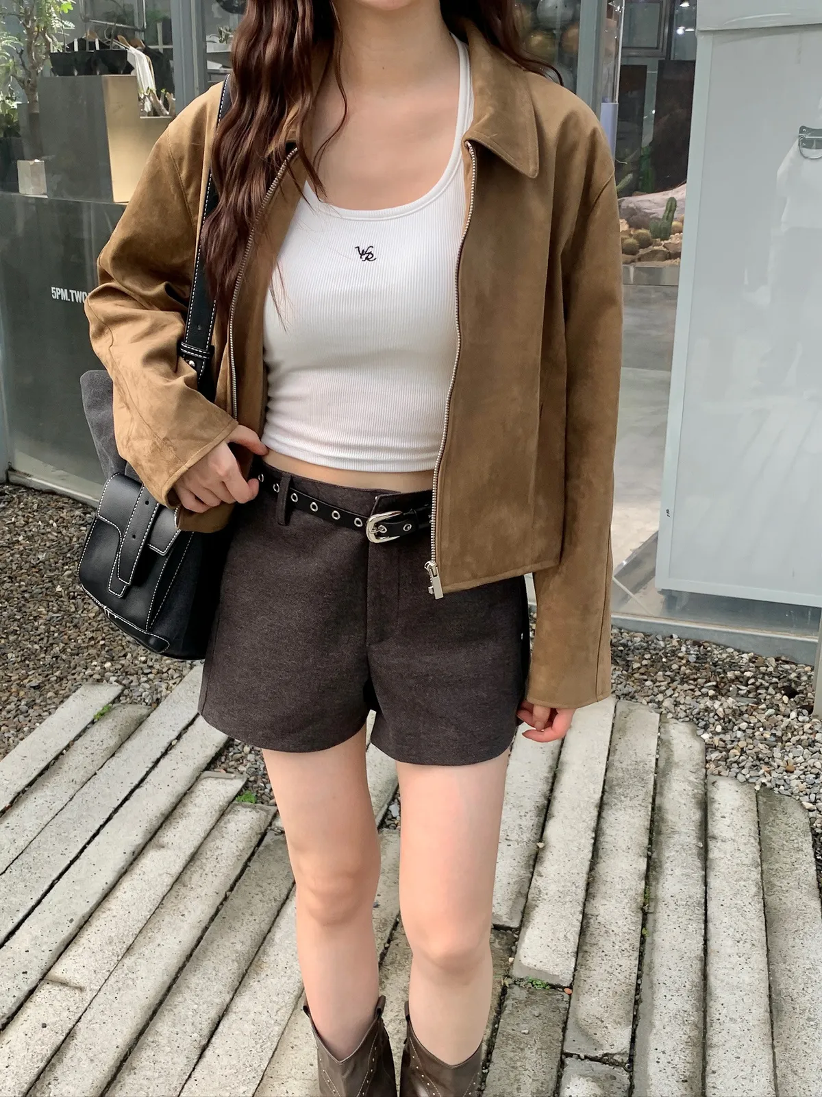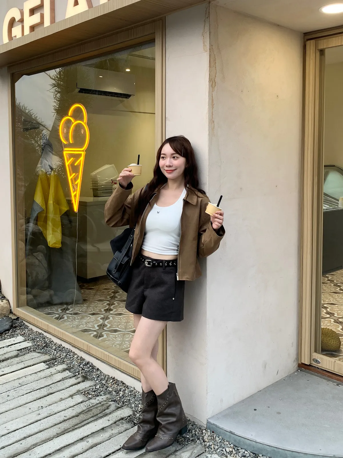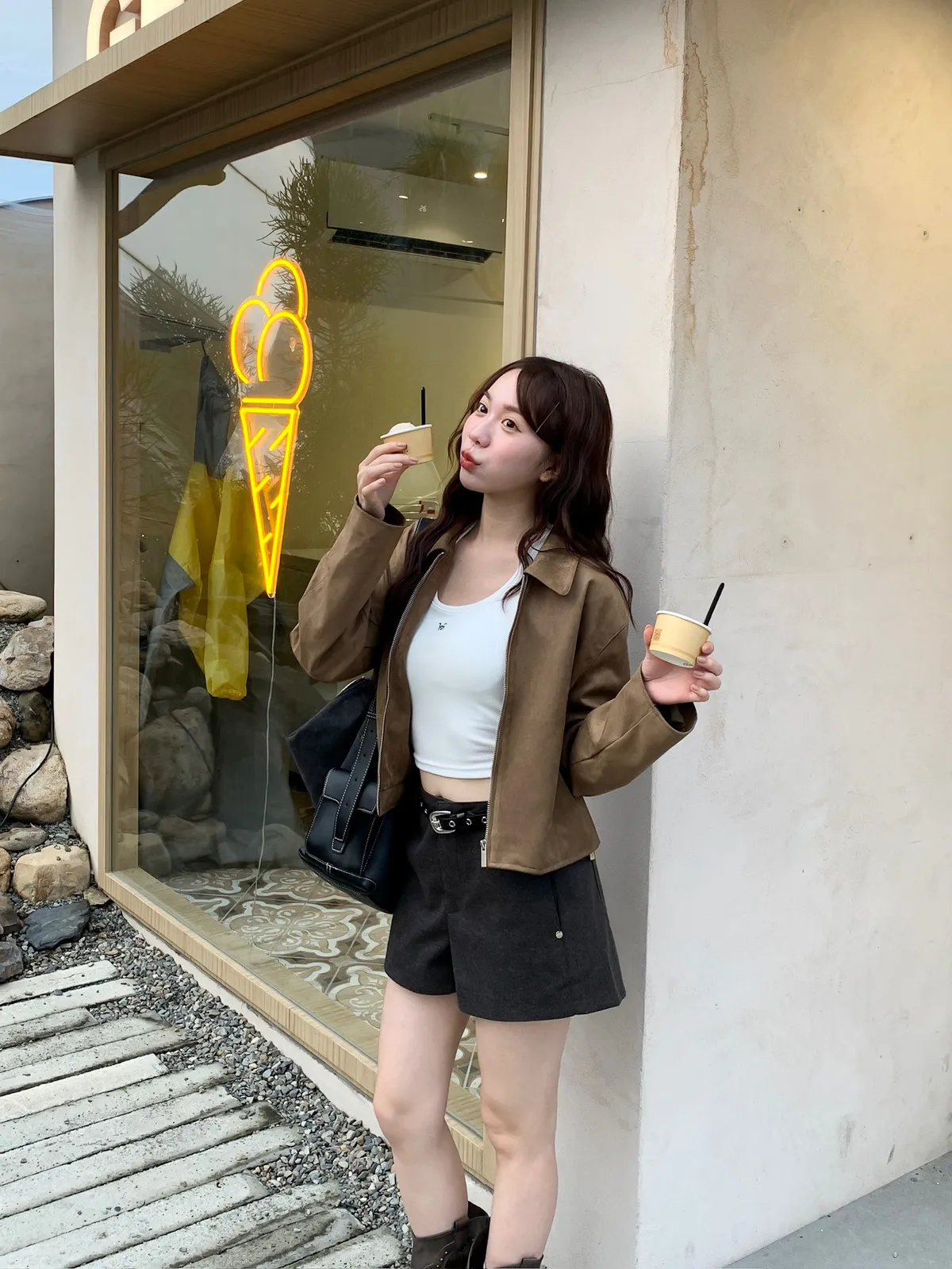 麂皮質感自帶高級氛圍 短版剪裁拉長整體比例