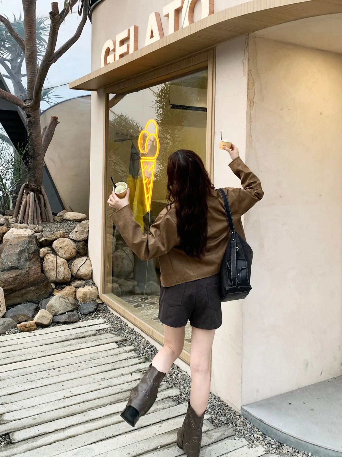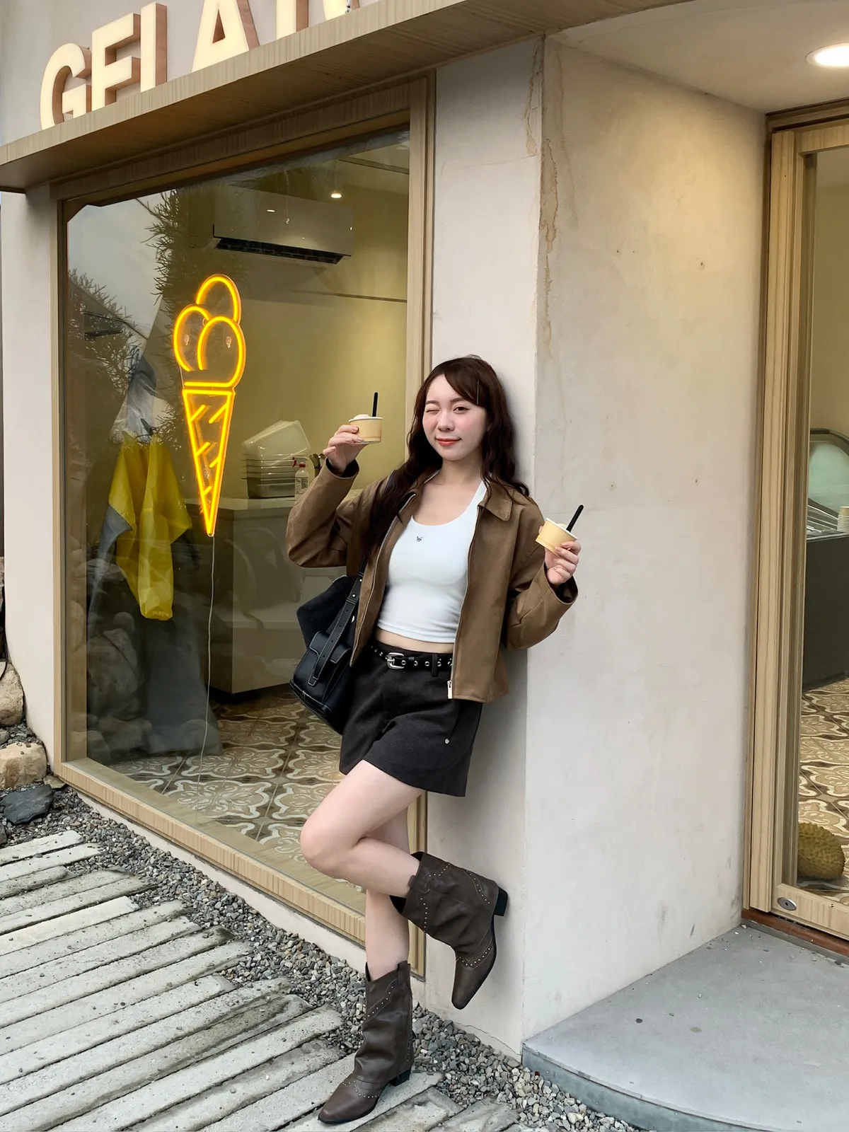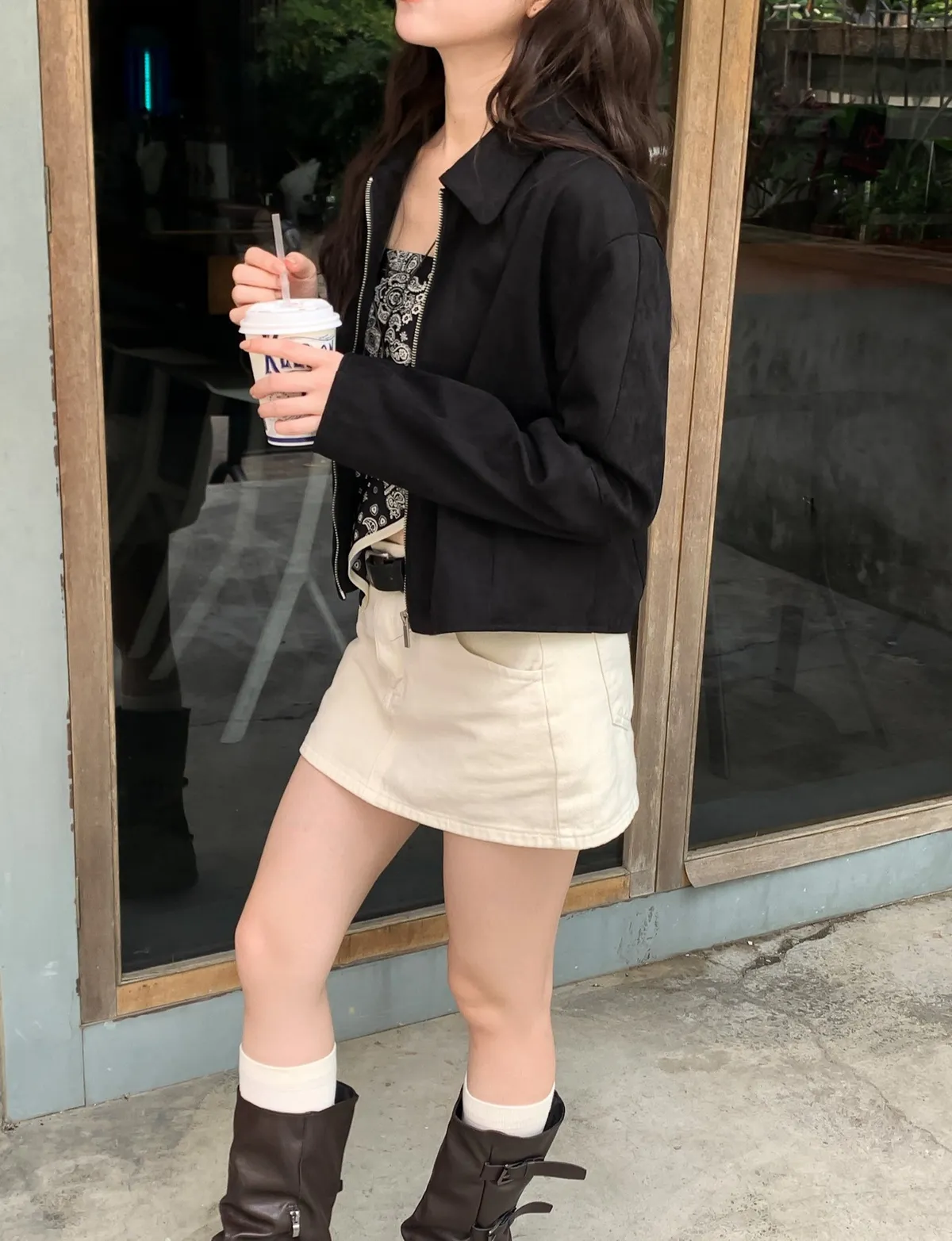 麂皮質感自帶高級氛圍 短版剪裁拉長整體比例