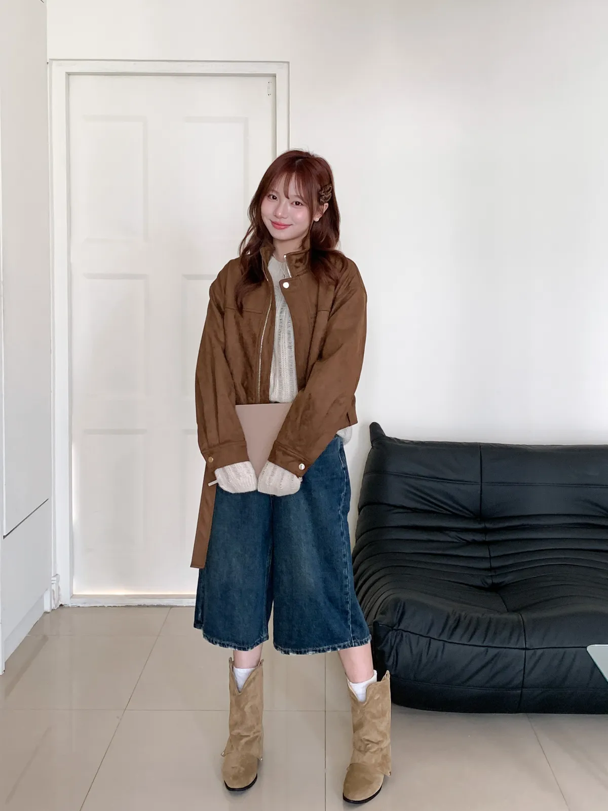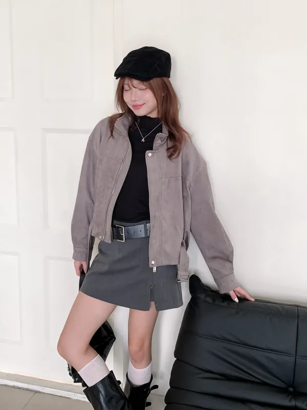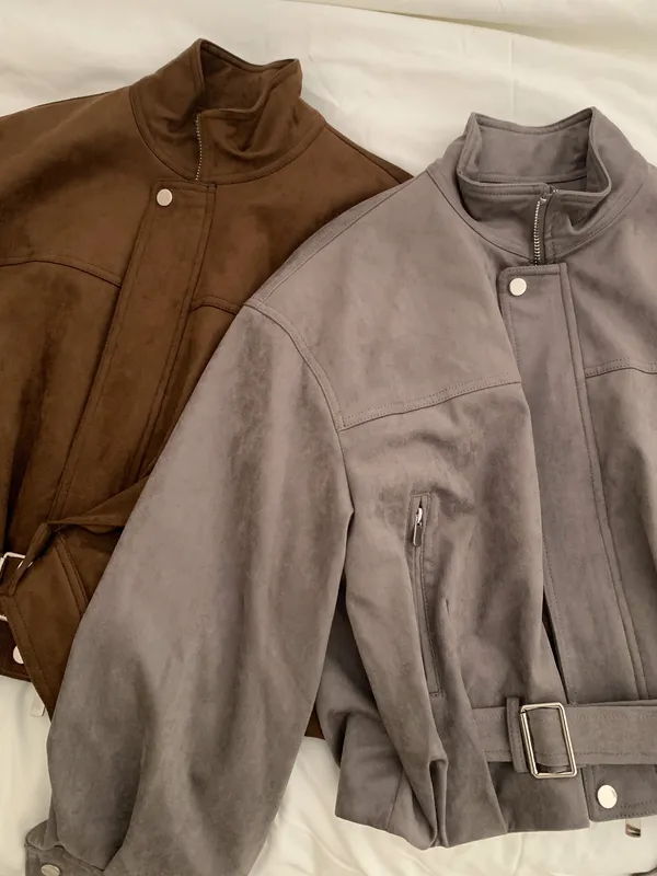 摩登霧棕|皮帶釦麂皮外套