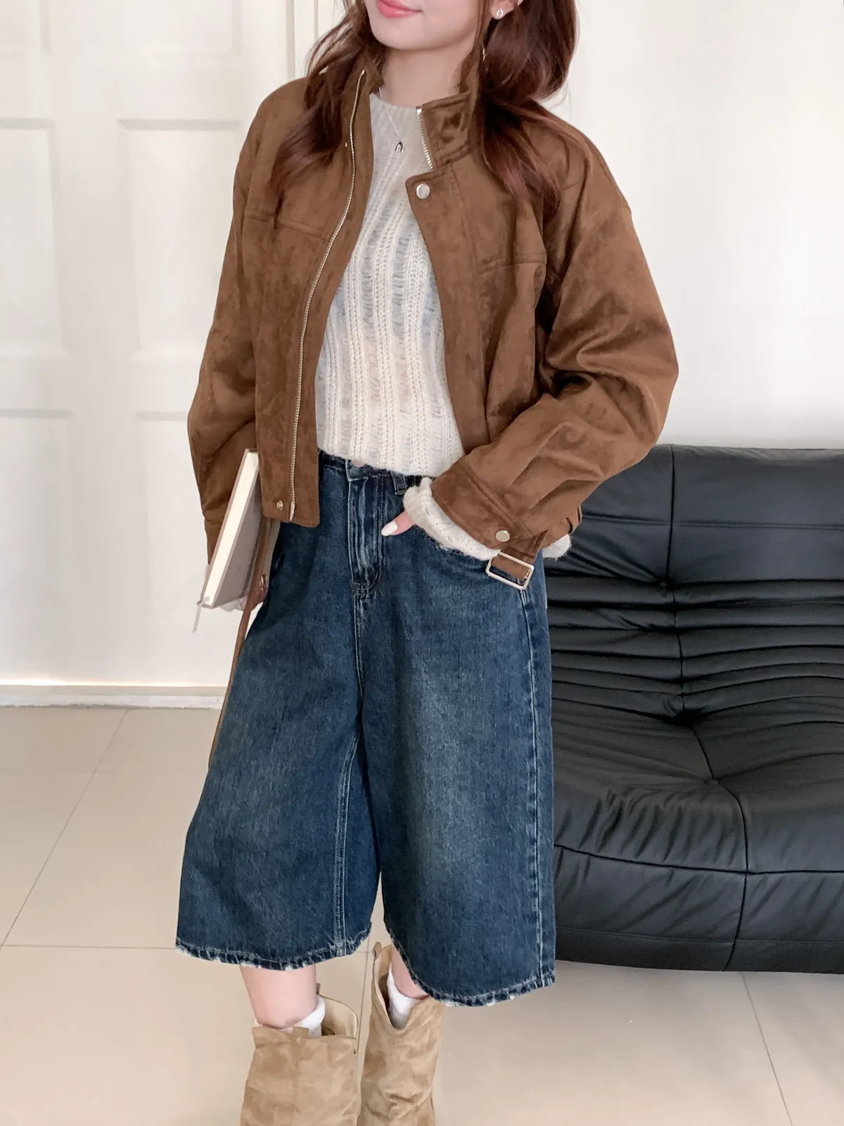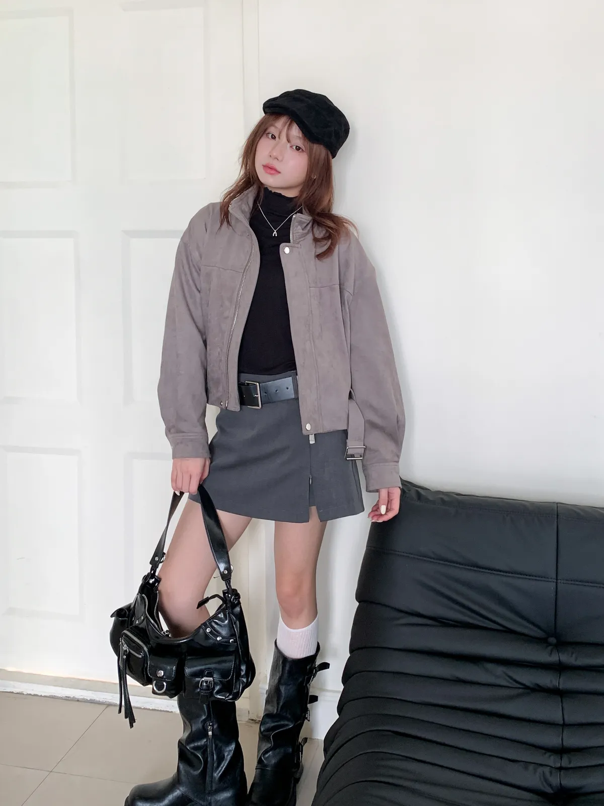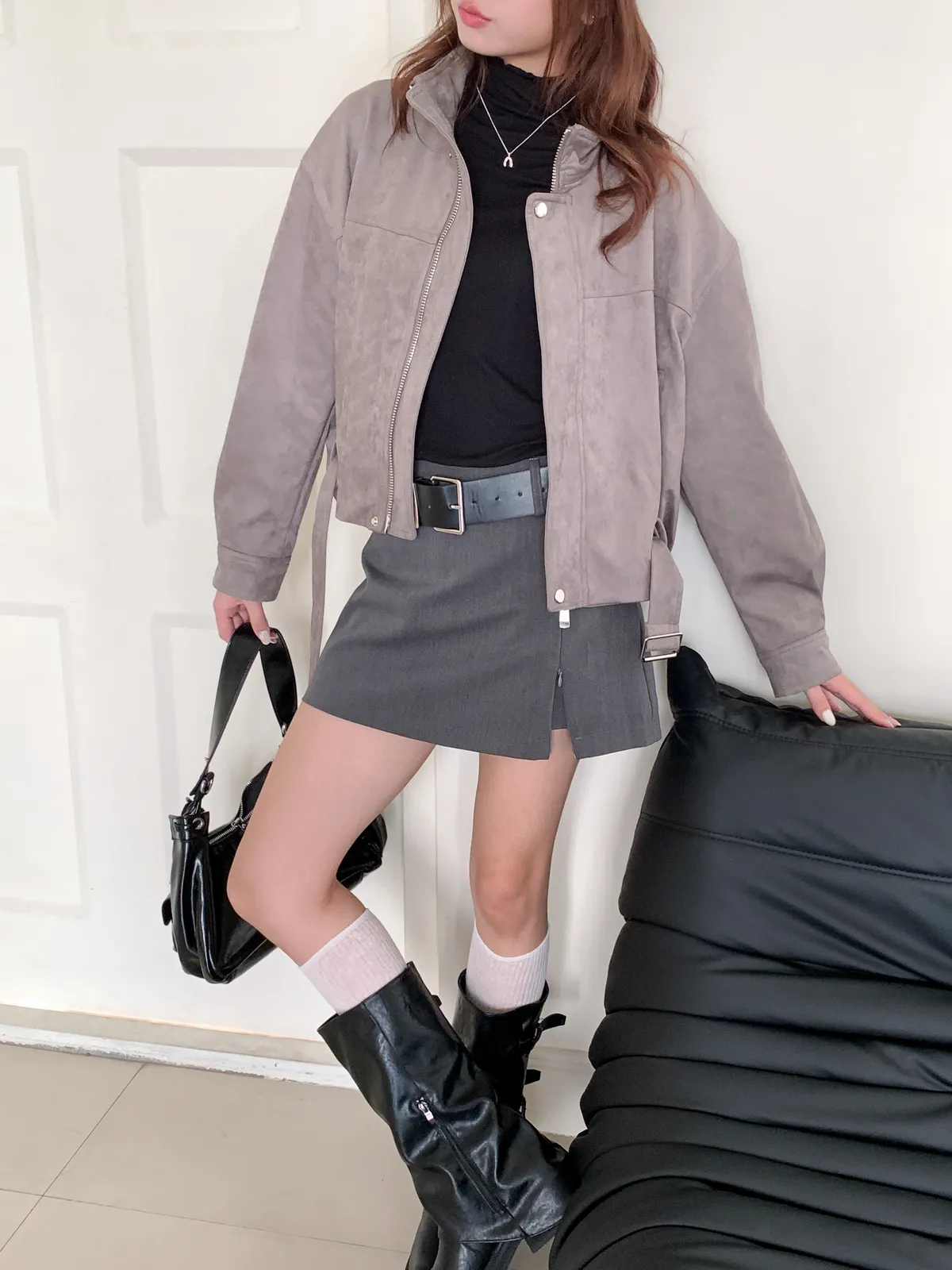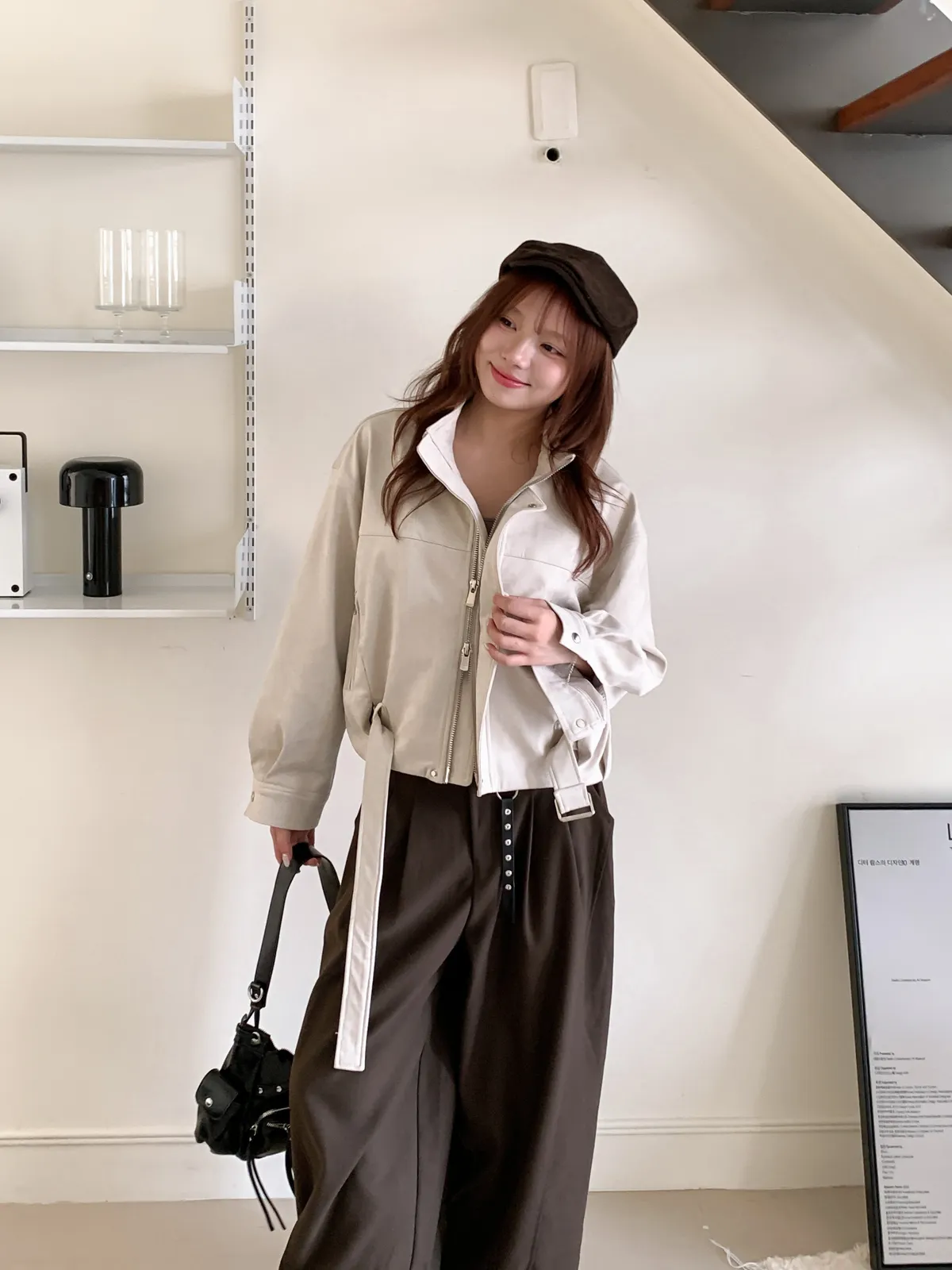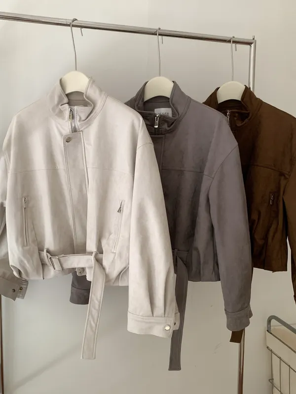皮帶釦麂皮外套