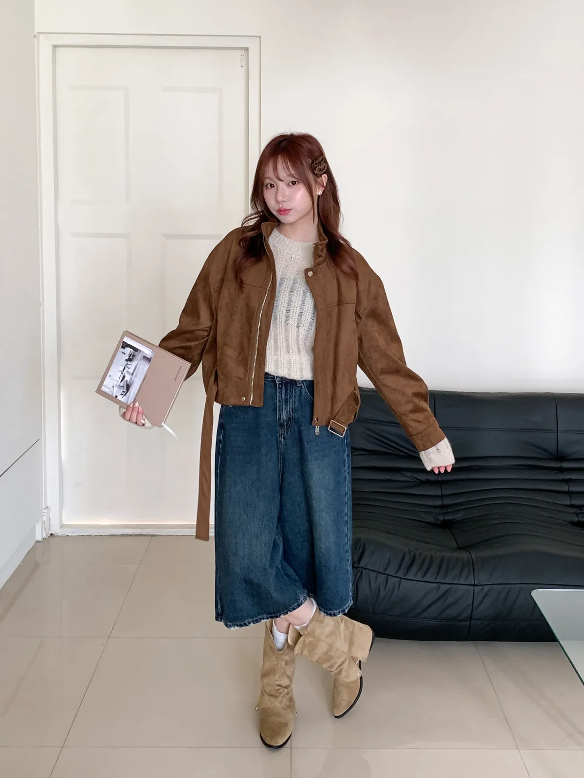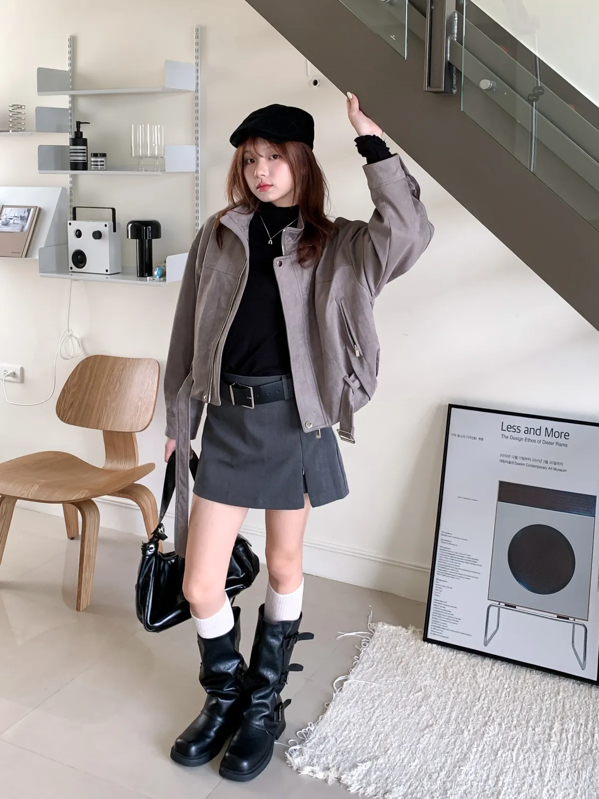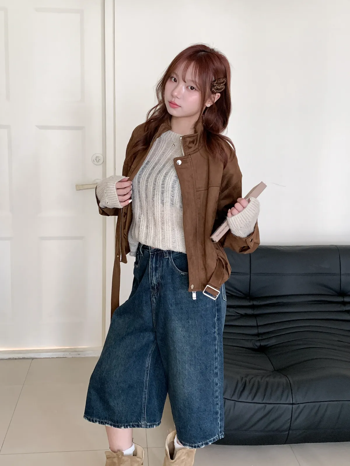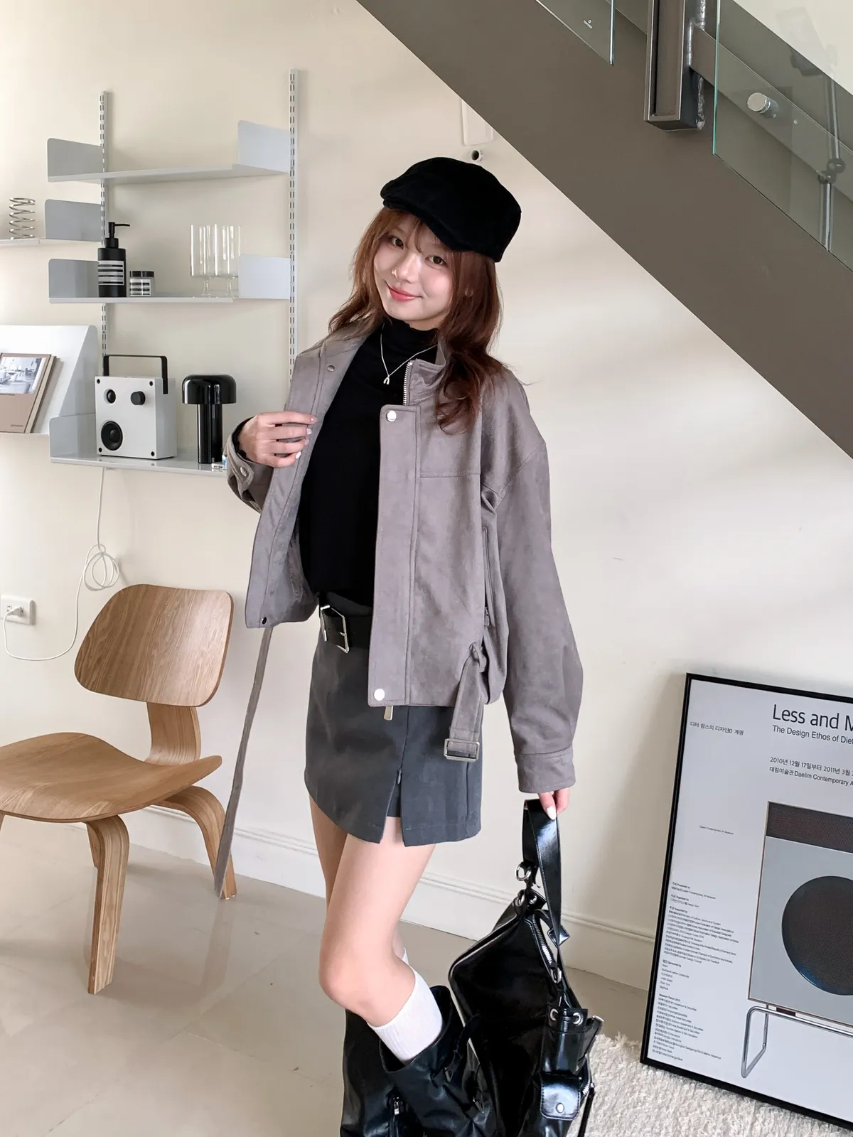 皮帶釦麂皮外套