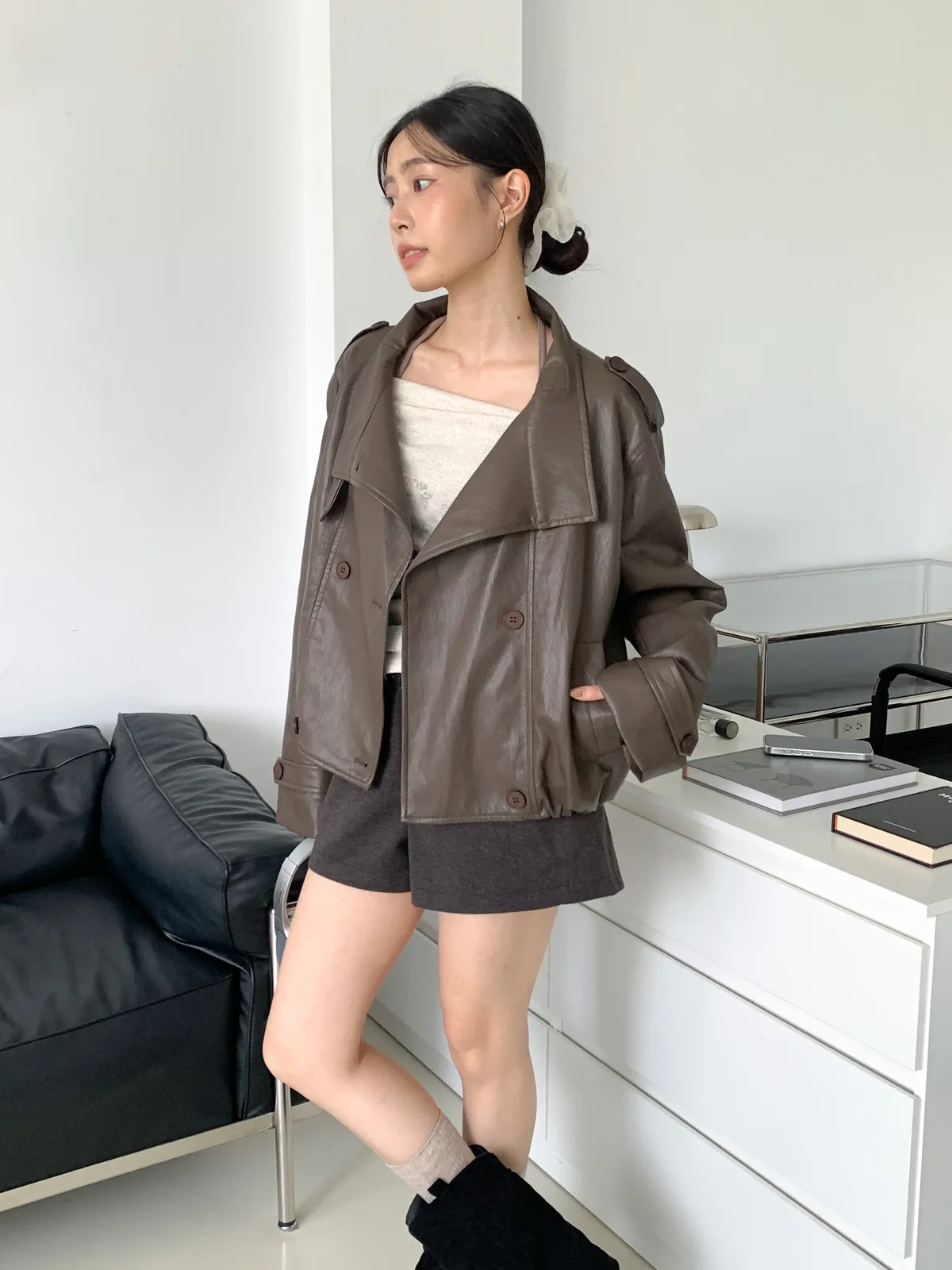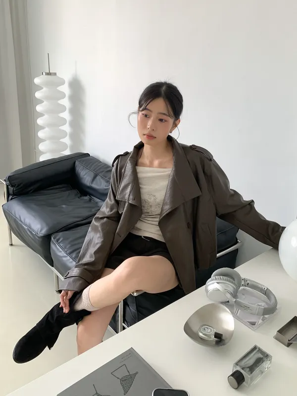 設計感排釦皮外套
