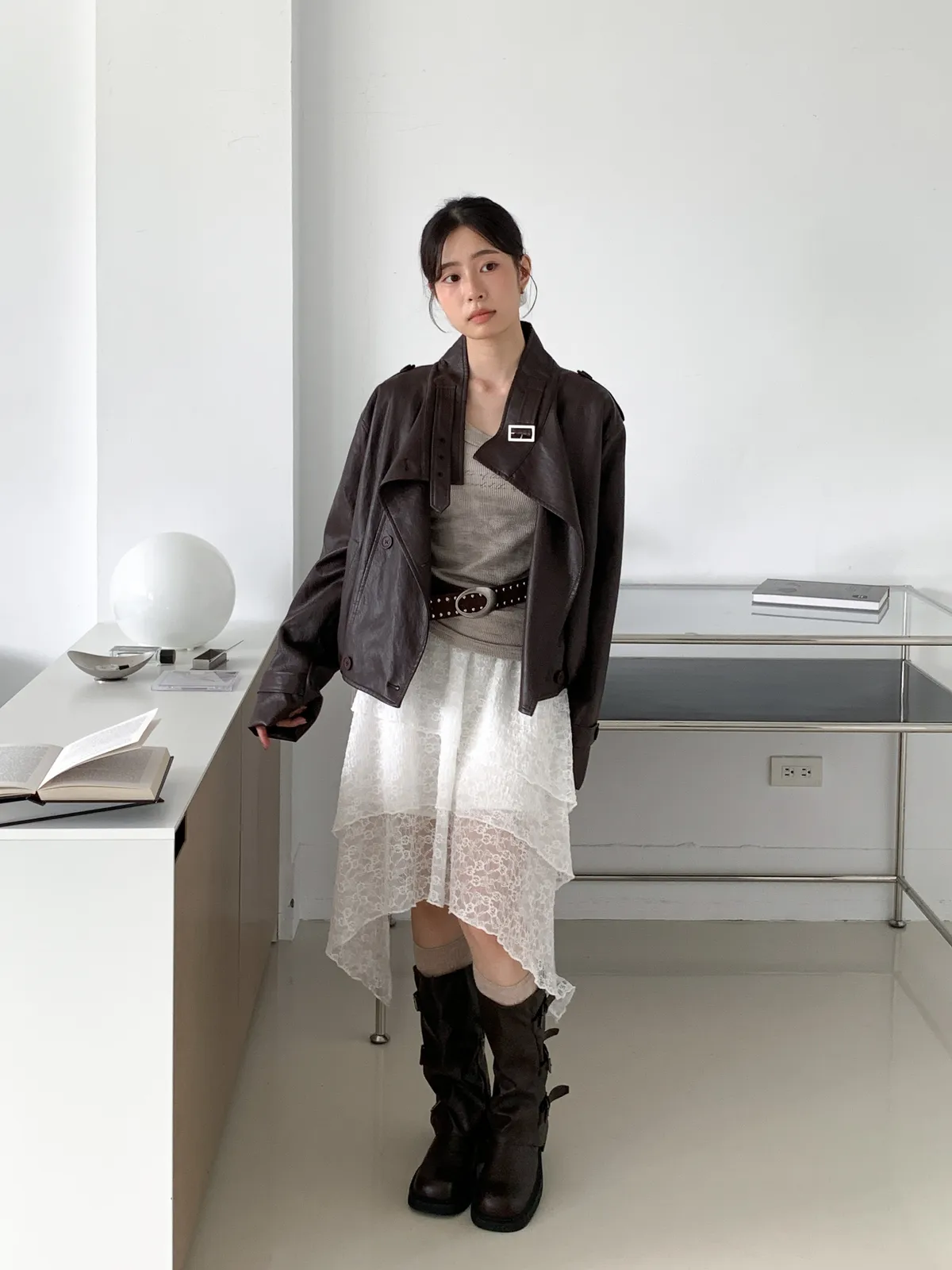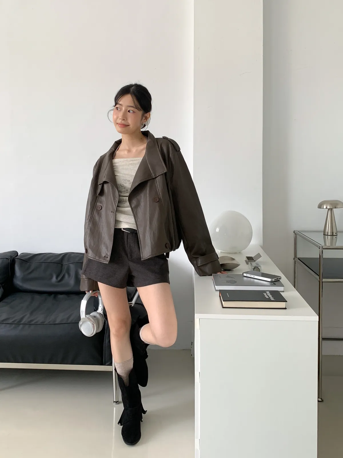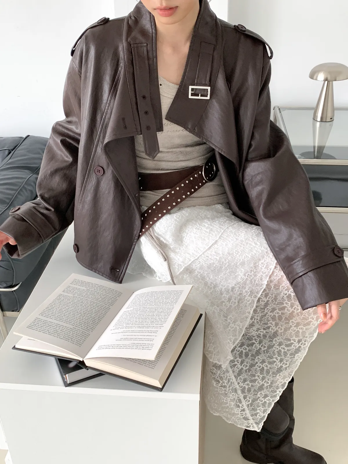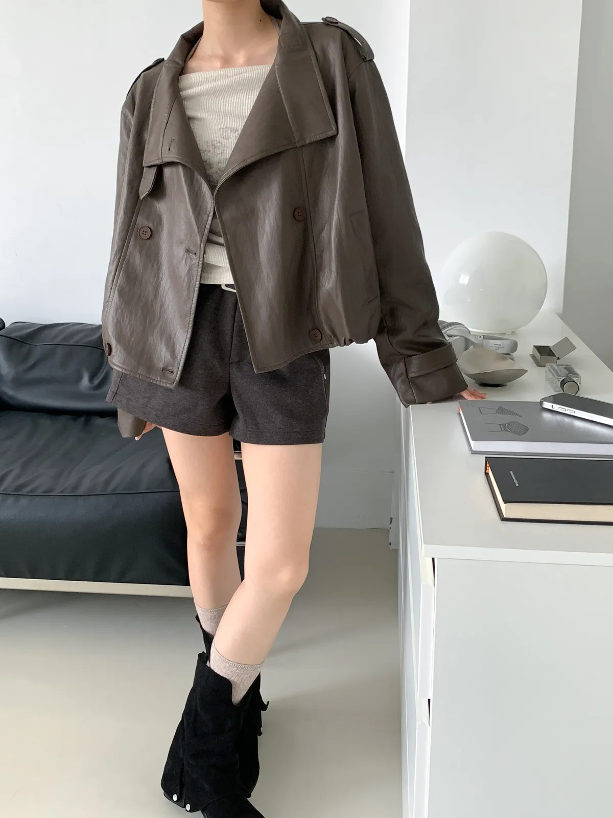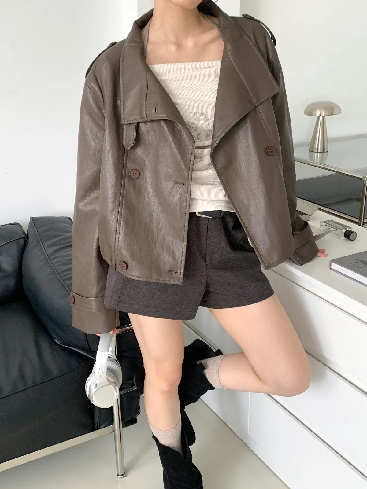鹽酷女孩/設計感排釦皮外套