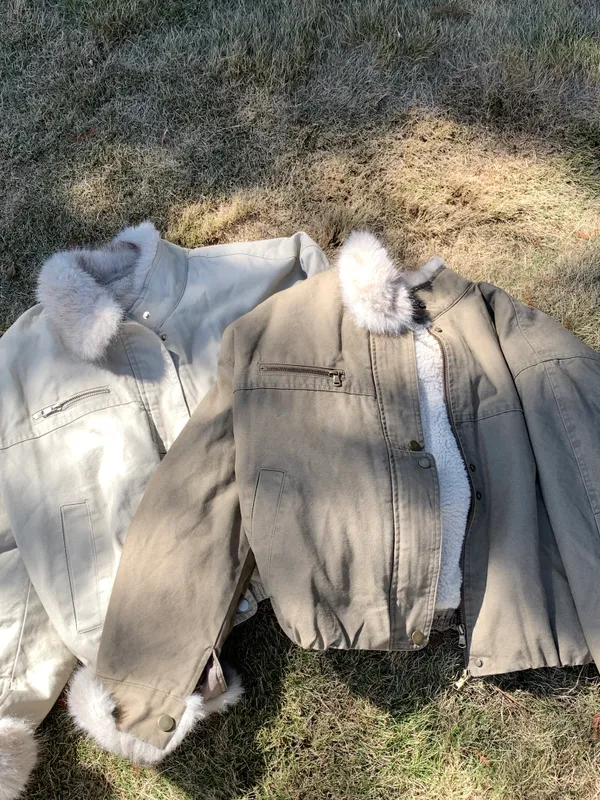 .材質:斜紋布料、內裡:羊羔毛手、領口/袖口:皮草毛、手袖內裡鋪棉