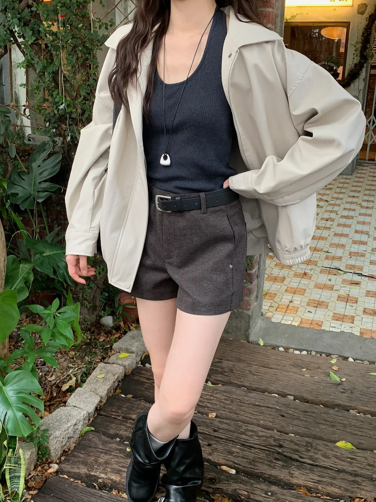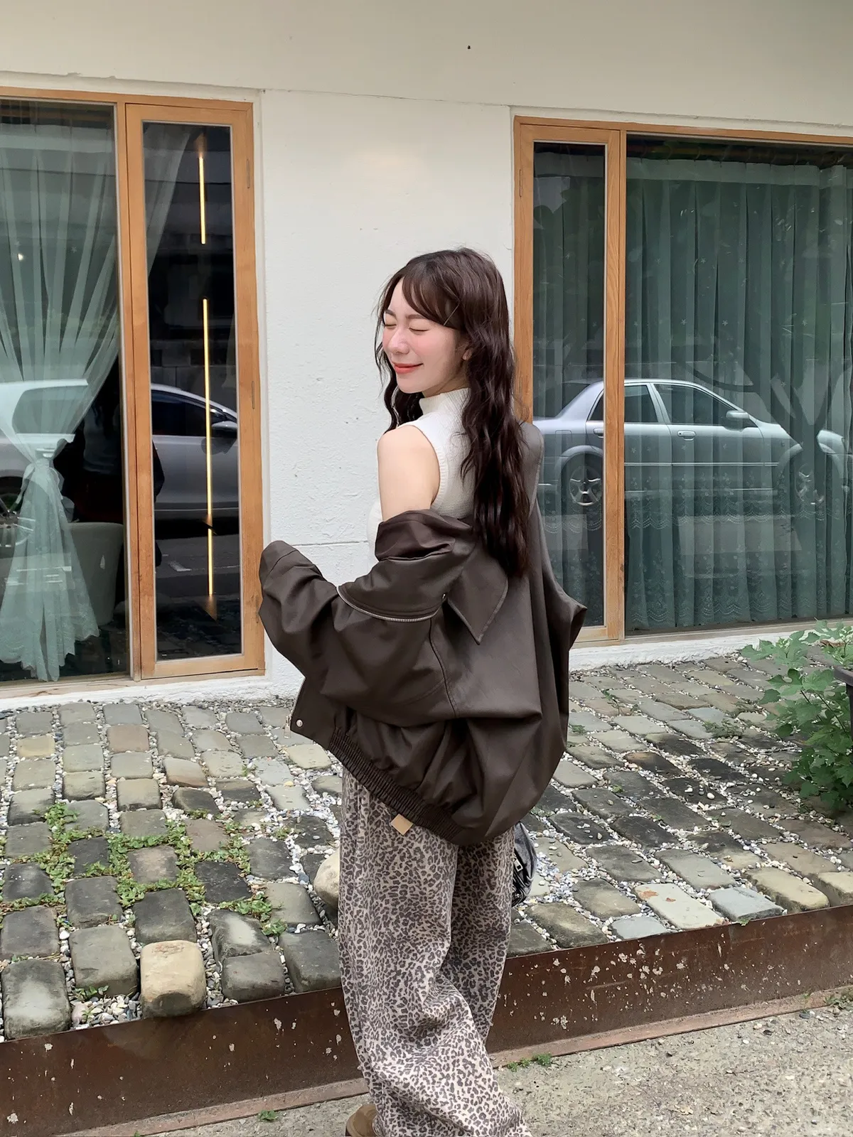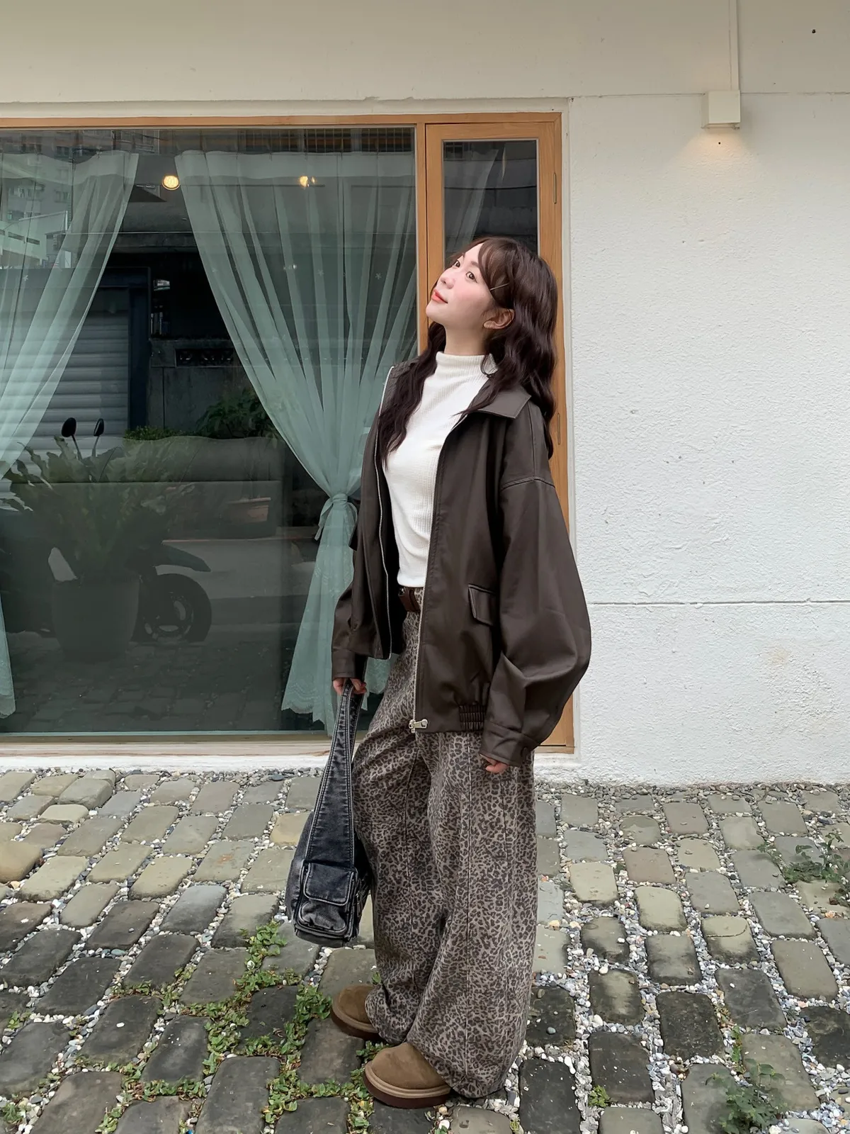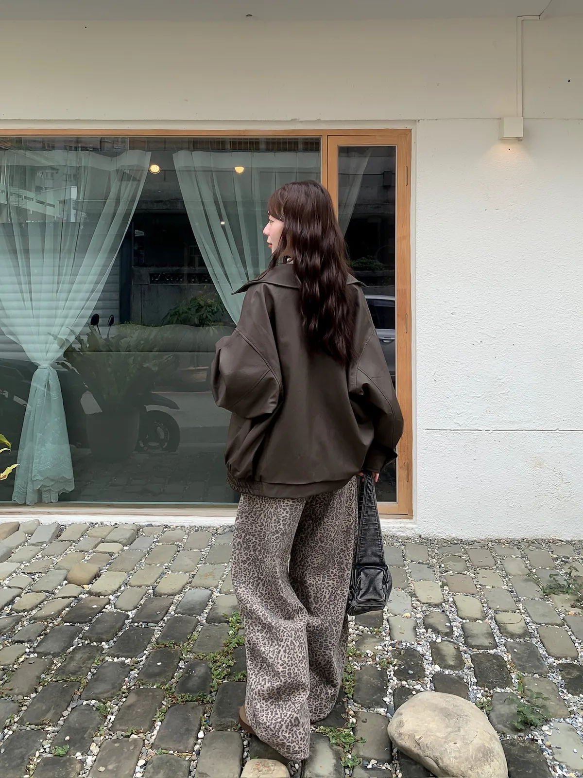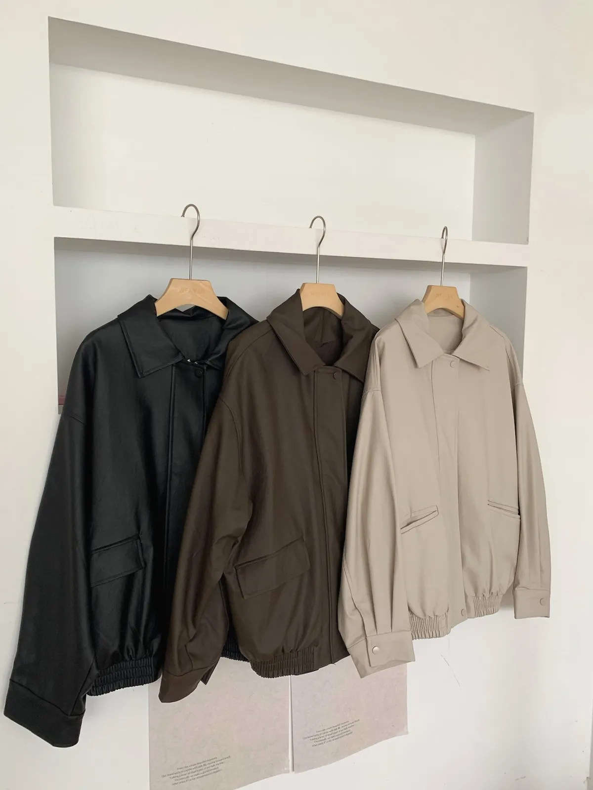 帥氣俐落剪裁|翻領寬鬆皮外套
