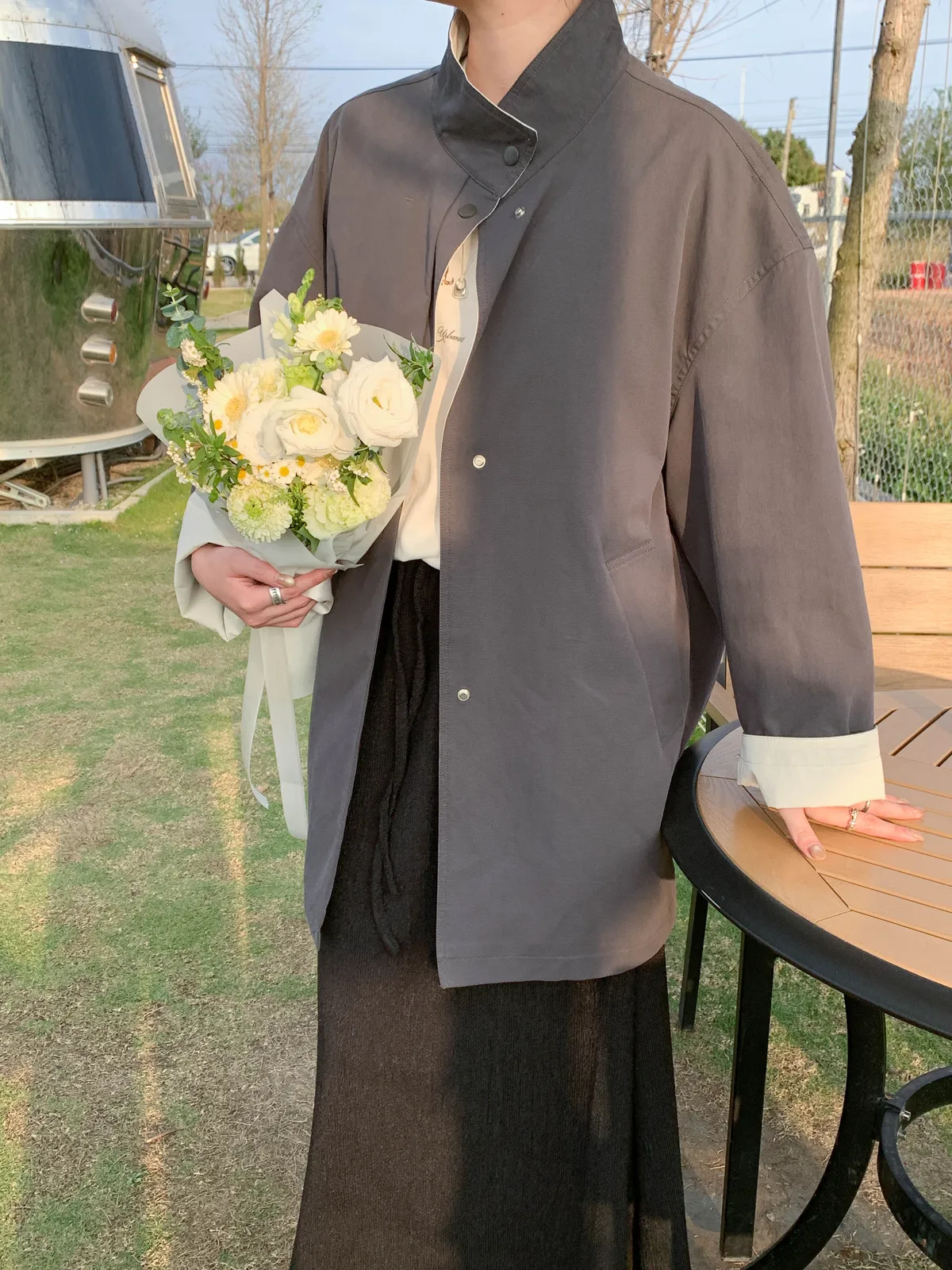 (整體穿起來寬鬆自在 略長版型拉長比例,簡單搭配牛仔褲或裙子都好看)